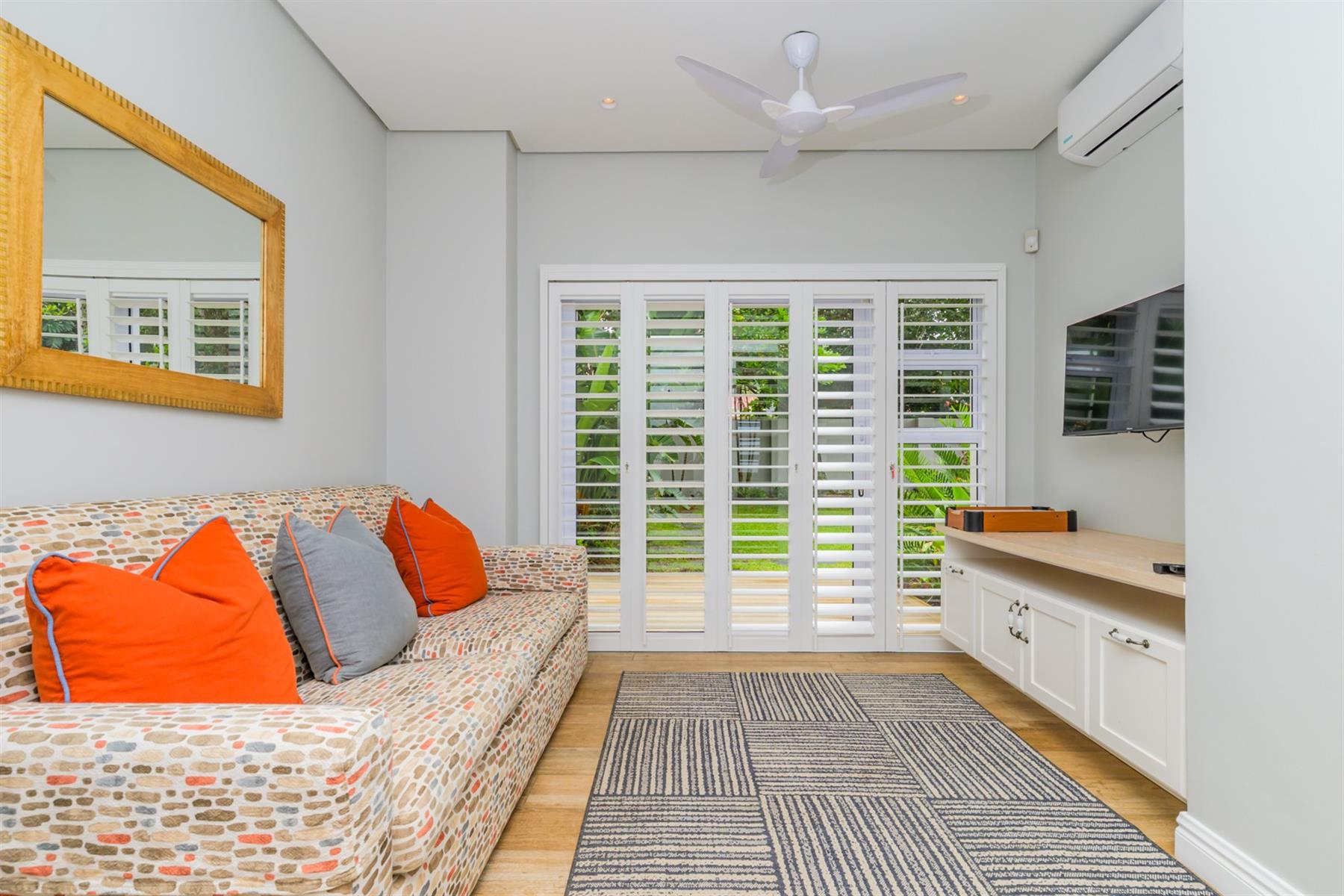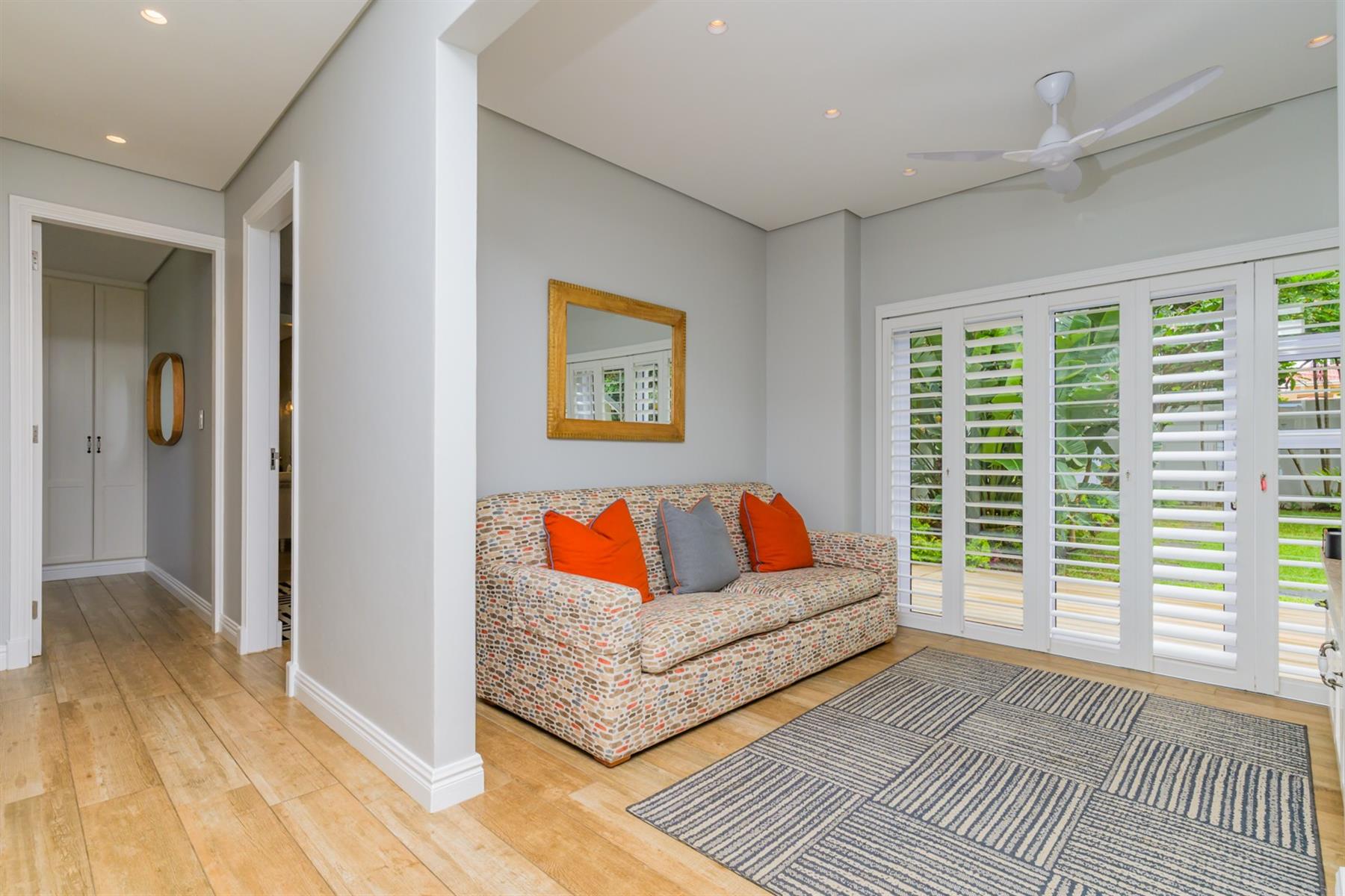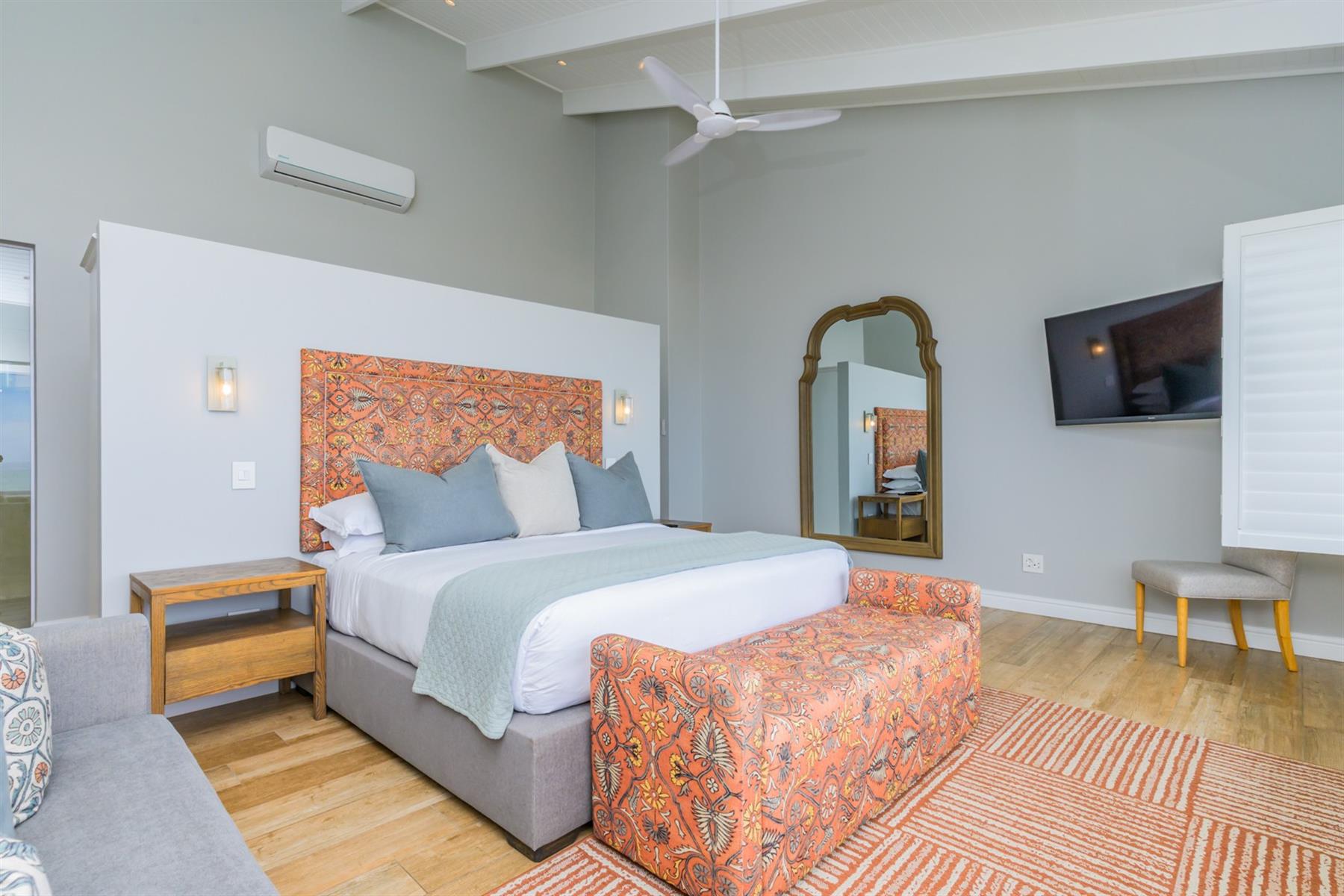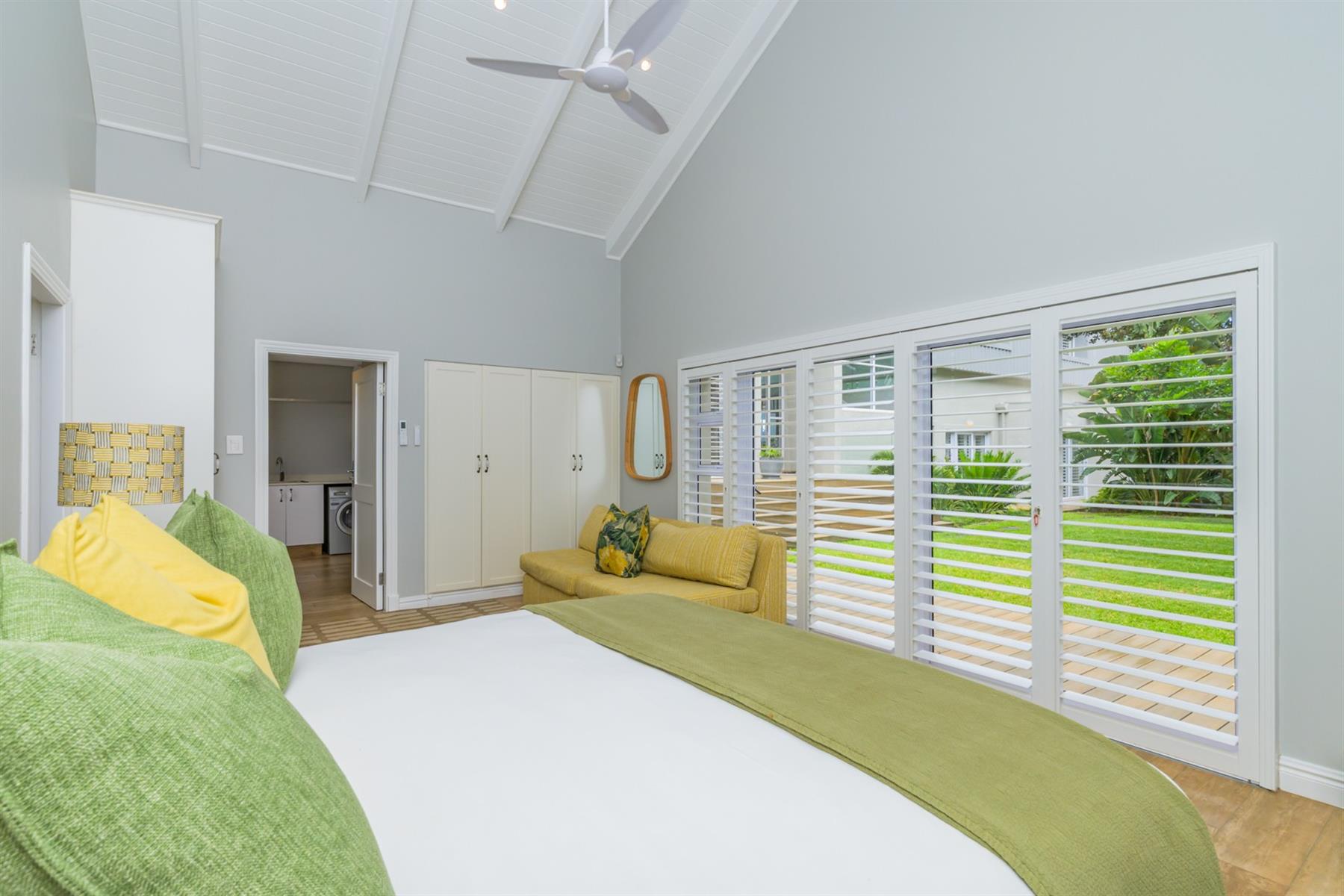 Custom glass stacking doors transform the living area into an extraordinary indoor–outdoor sanctuary. The entertainment pavilion—complete with a built-in braai, integrated fridges, and an elegant 14-seater dining table—creates the perfect setting for unforgettable gatherings. A shimmering pool with a retractable cover is framed by luxurious loungers, offering uninterrupted views of the ocean beyond. A manicured green lawn meets the shoreline, secured by a discreet see-through fence, while an outdoor shower provides a tranquil transition from beach to home.