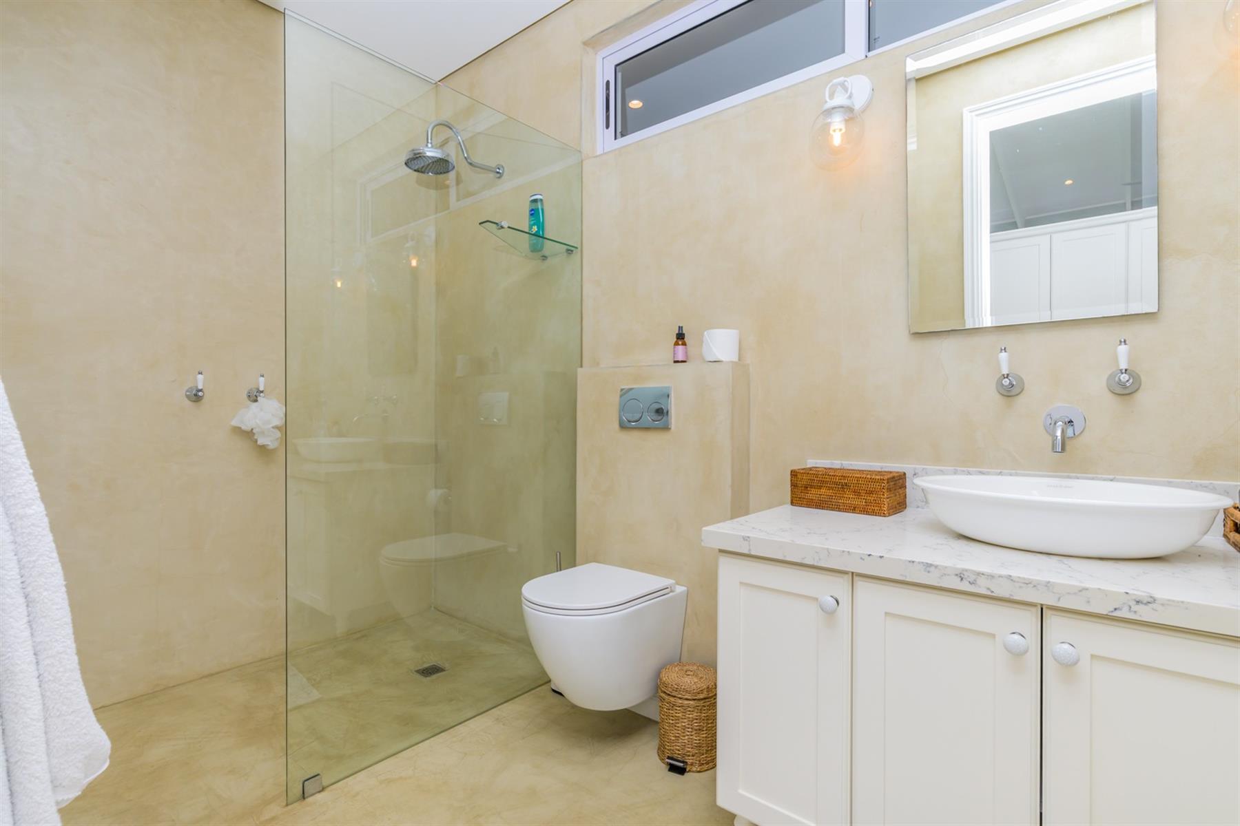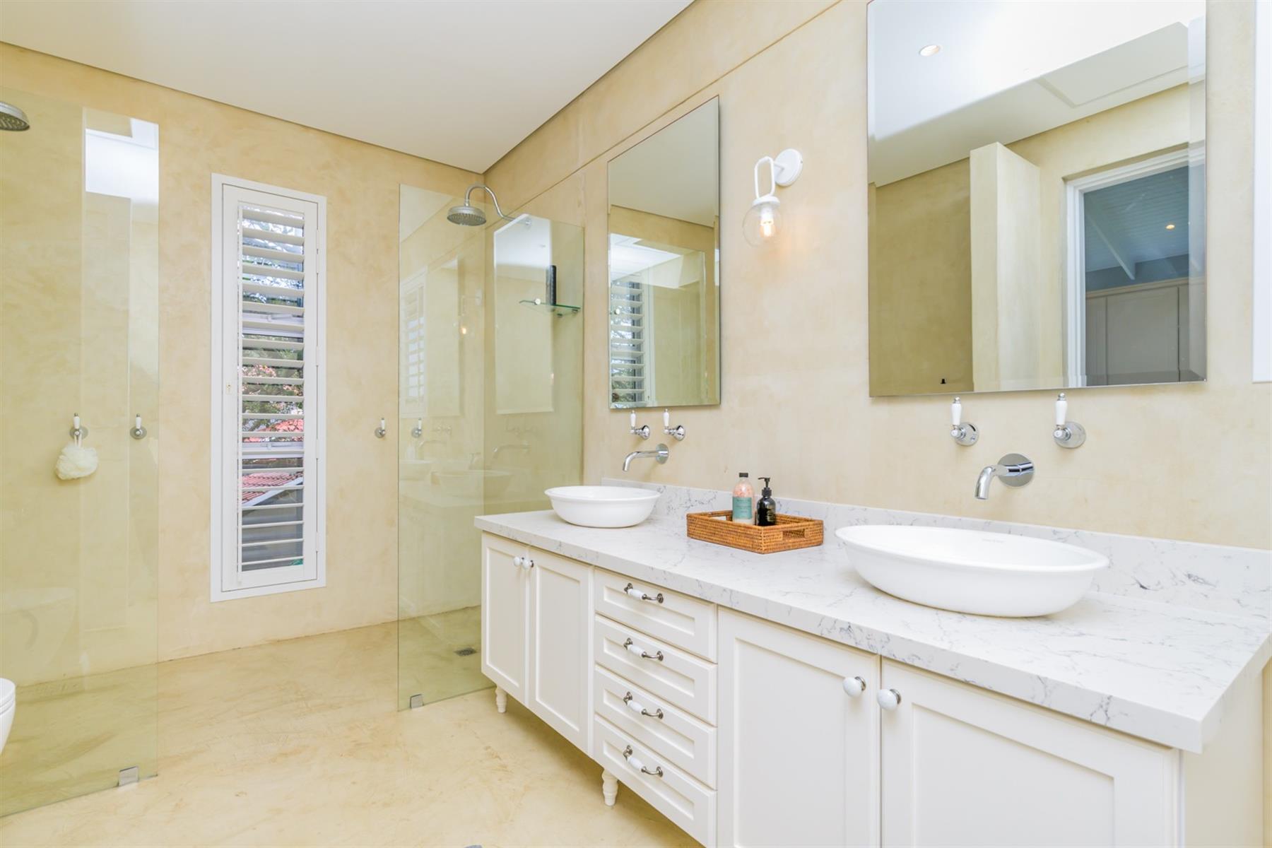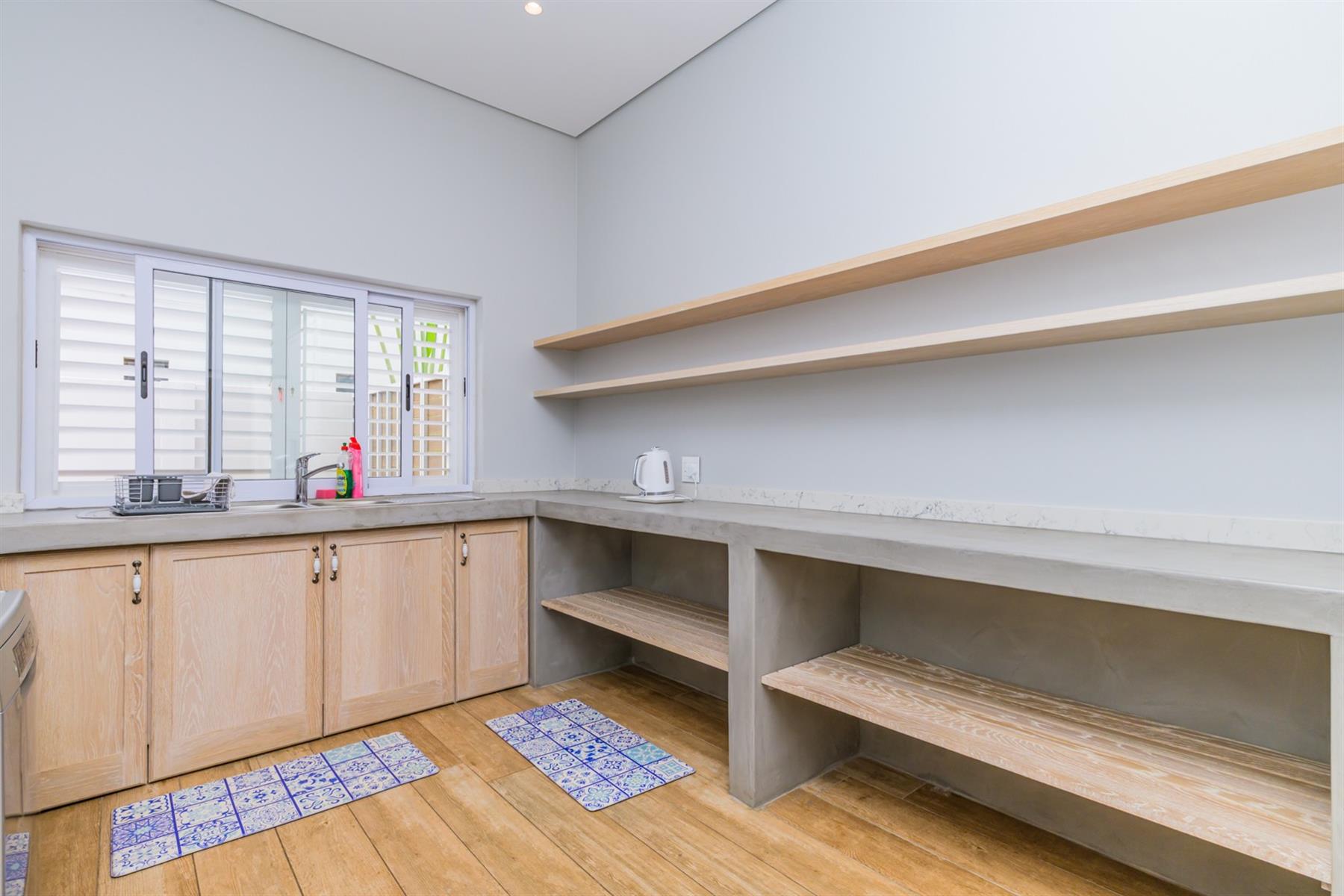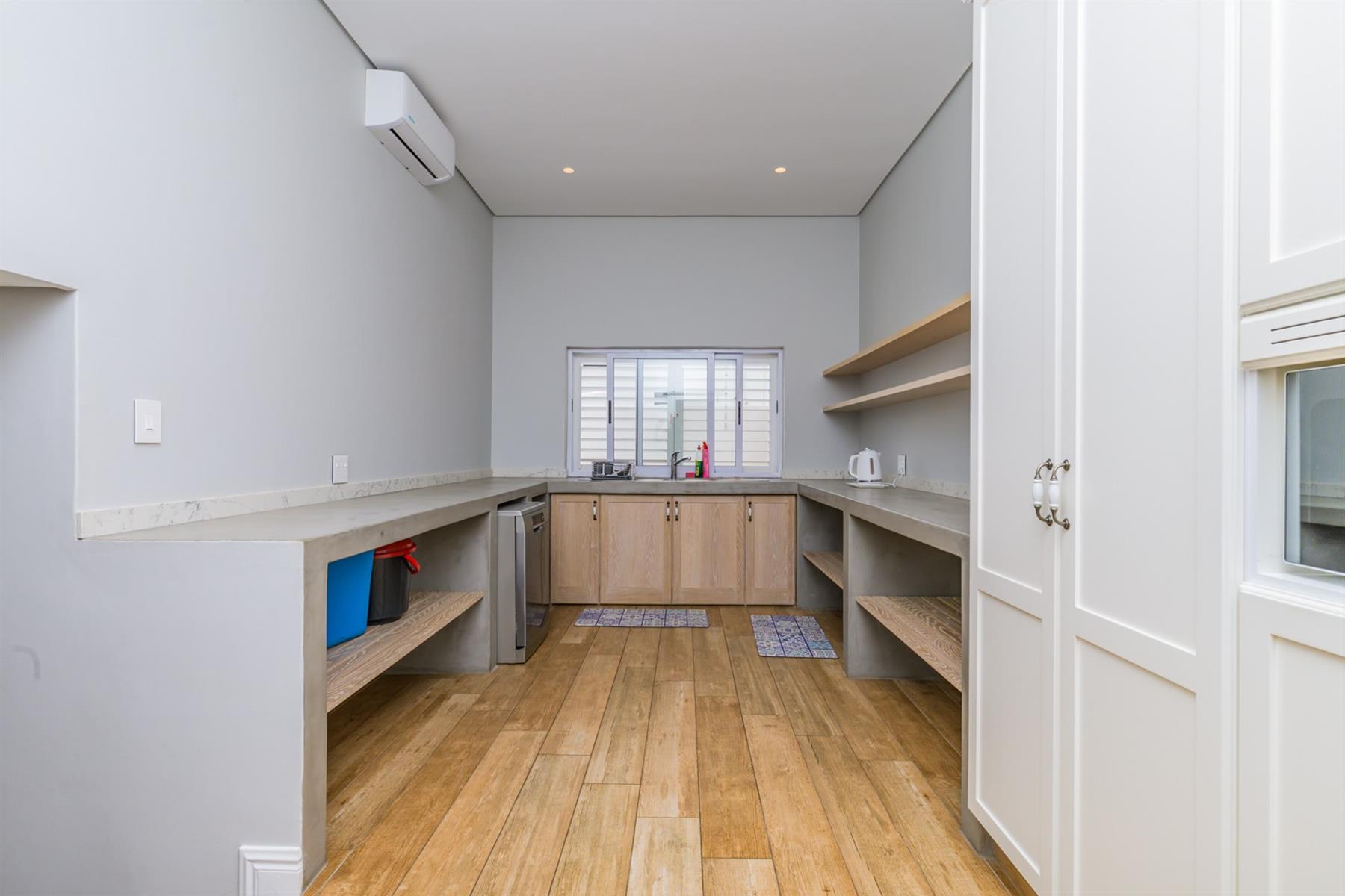 From the moment you step through the grand double-volume glass entrance, the home reveals sweeping sea views and exquisite finishes. The open-plan living spaces are bathed in natural light, flowing seamlessly into a beautifully appointed kitchen featuring granite countertops, a gas stove, and an expansive private scullery and laundry.