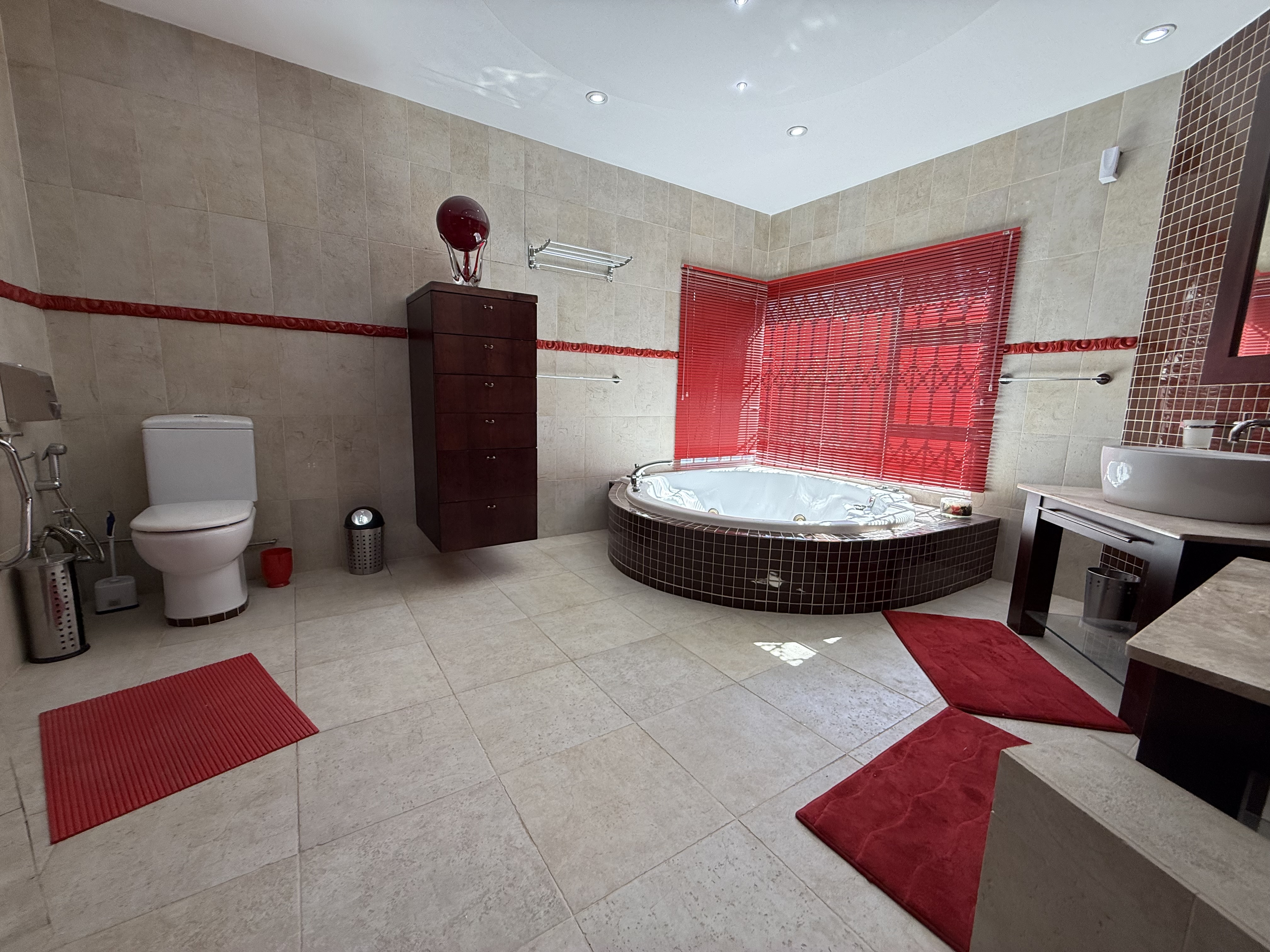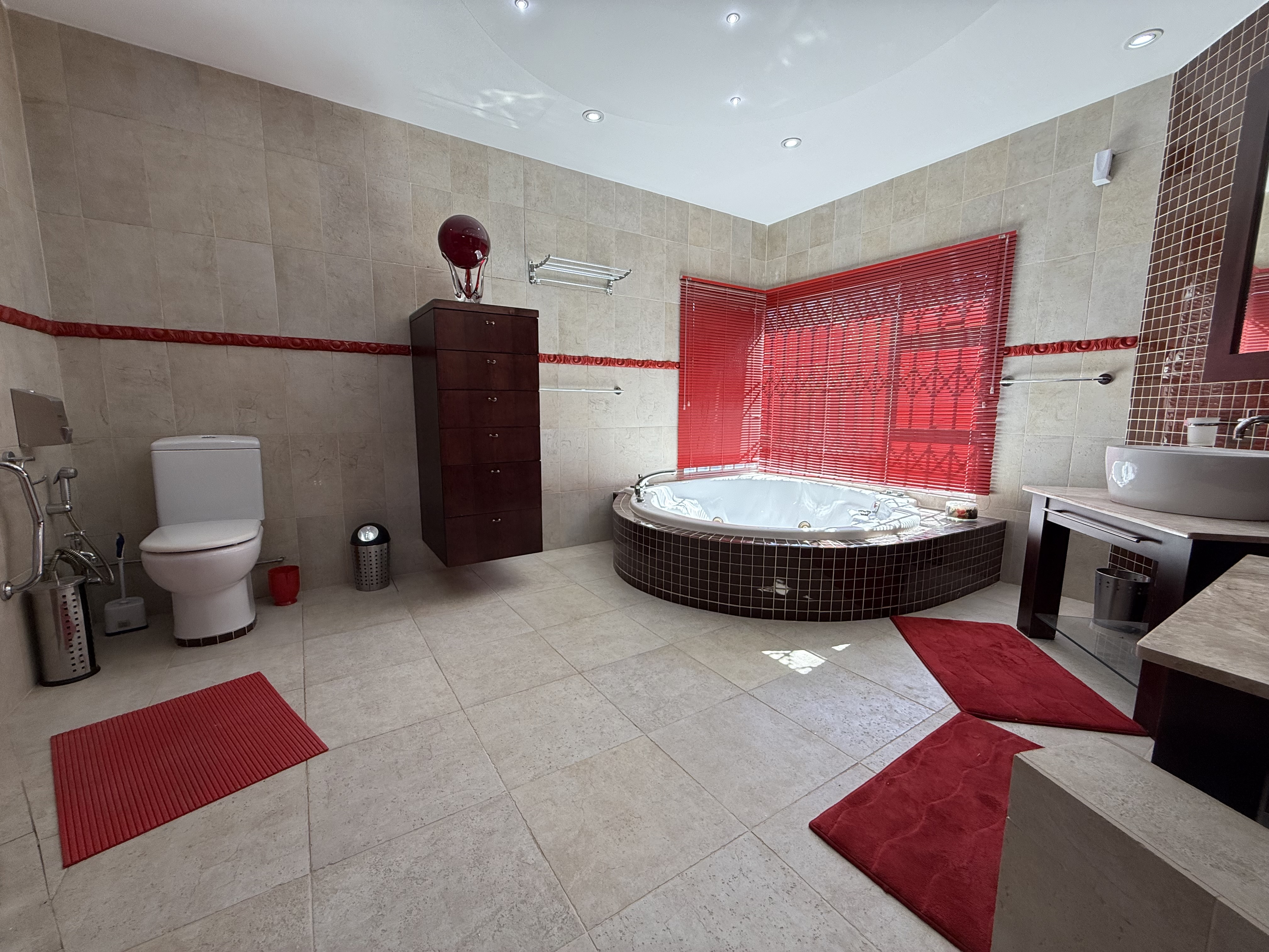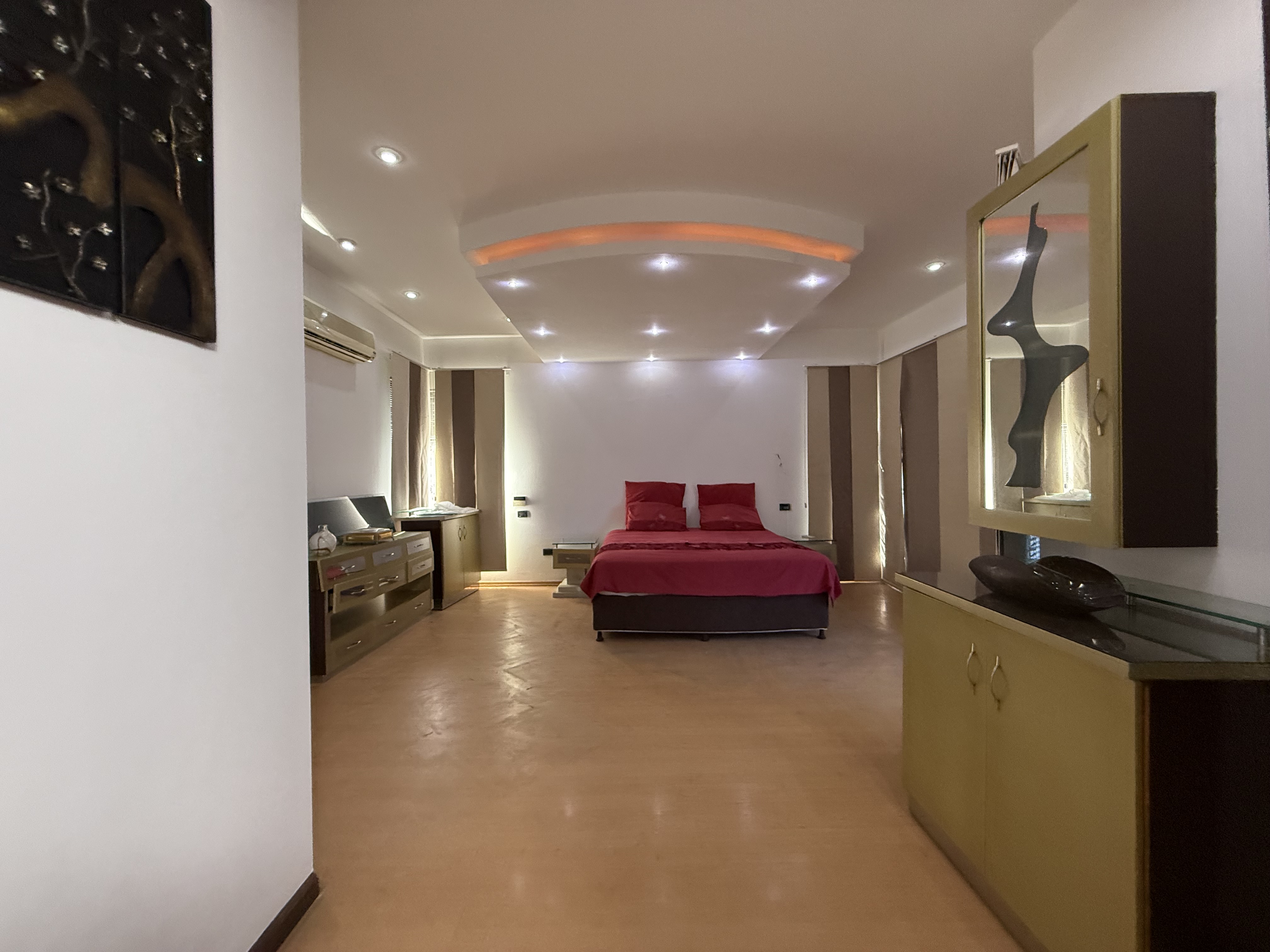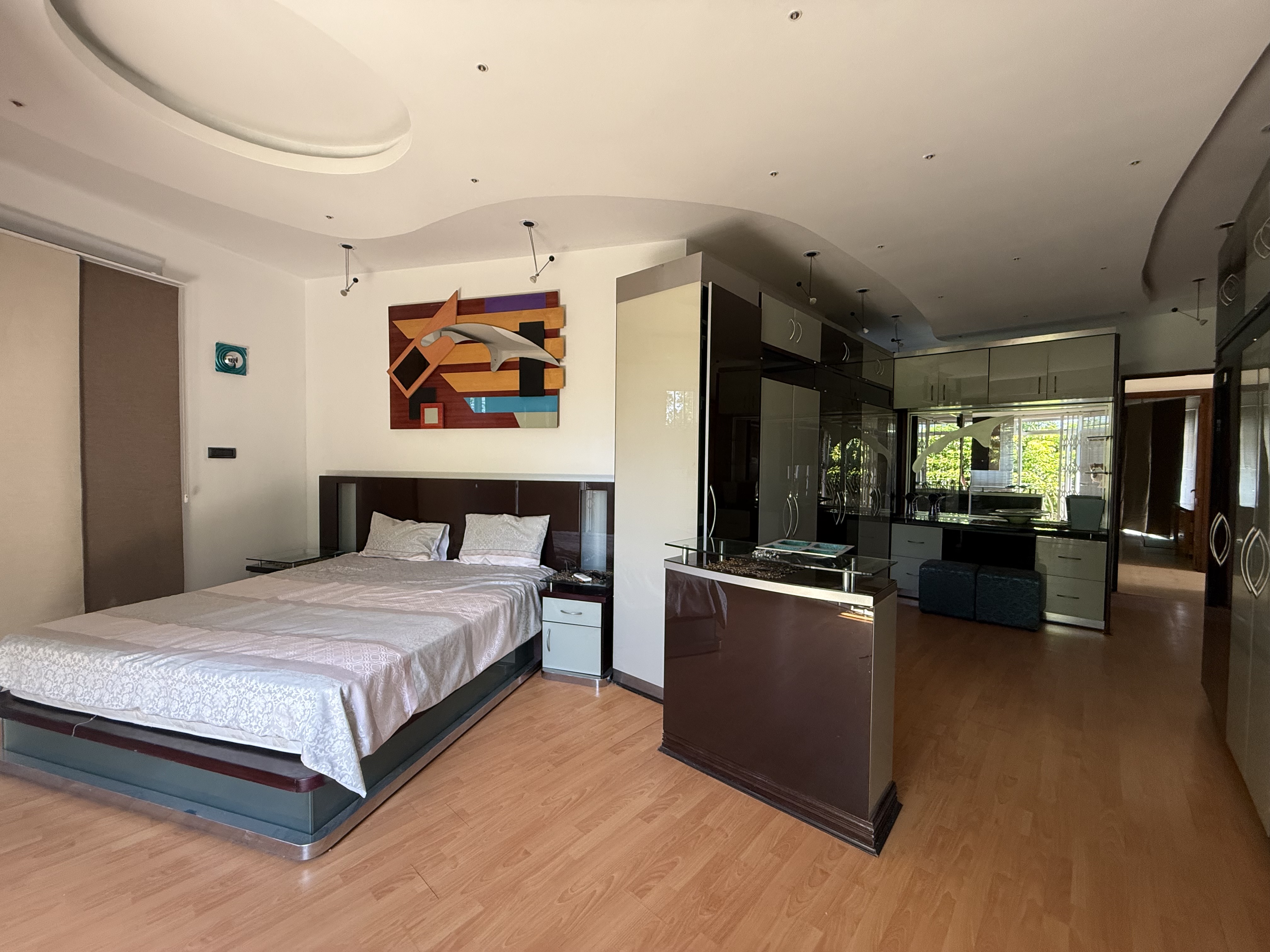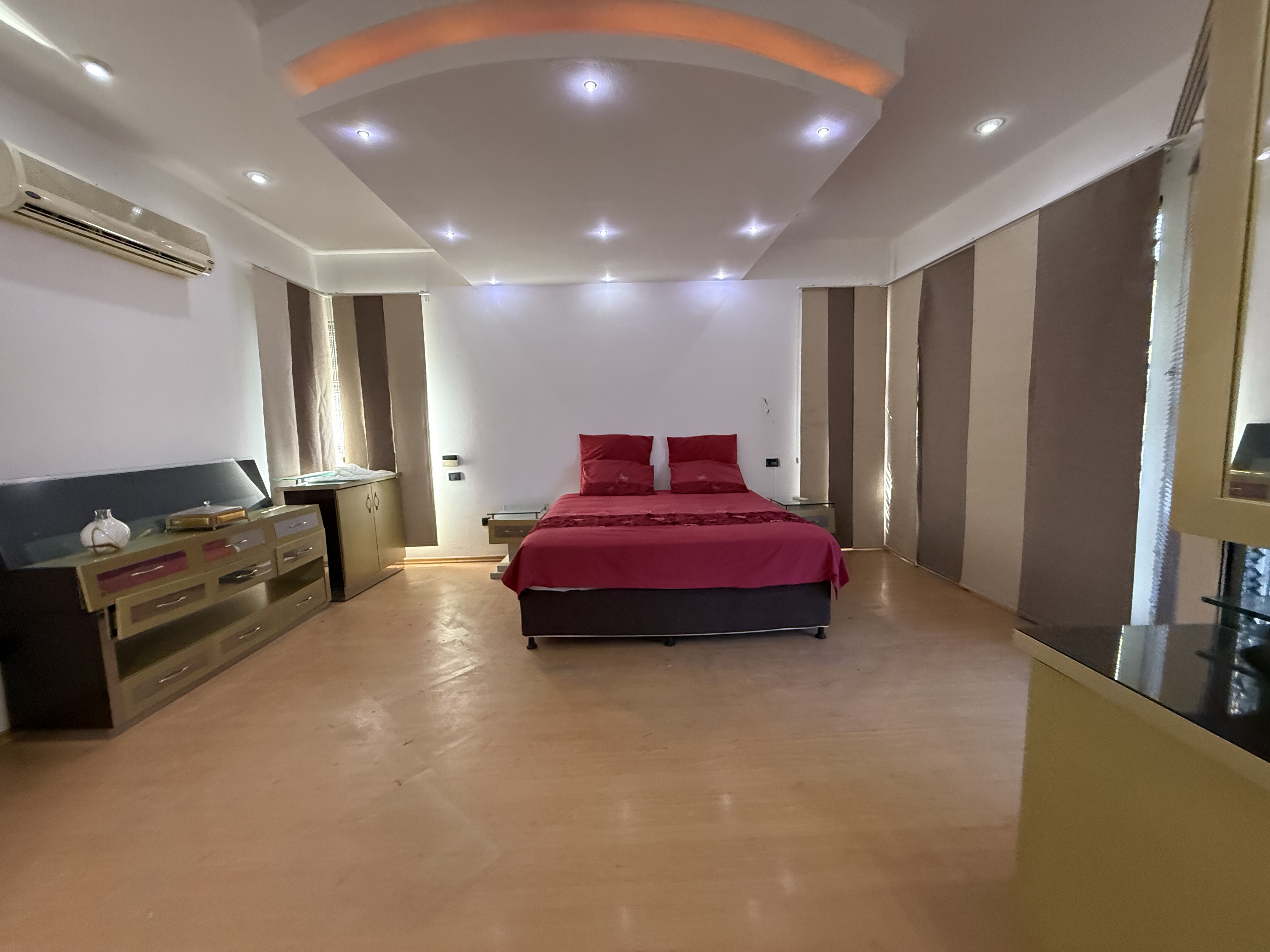 The upper level of the residence is dedicated to rest and relaxation, featuring five generously sized bedrooms, each with its own en-suite bathroom. The lavish master suite is a private sanctuary, boasting a spa-like bathroom, a cozy sitting area, and a private balcony offering breathtaking views of the surrounding landscape.