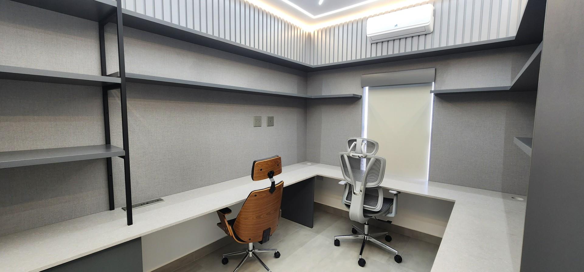 Dedicated work-from-home study with stone counters and multiple power points