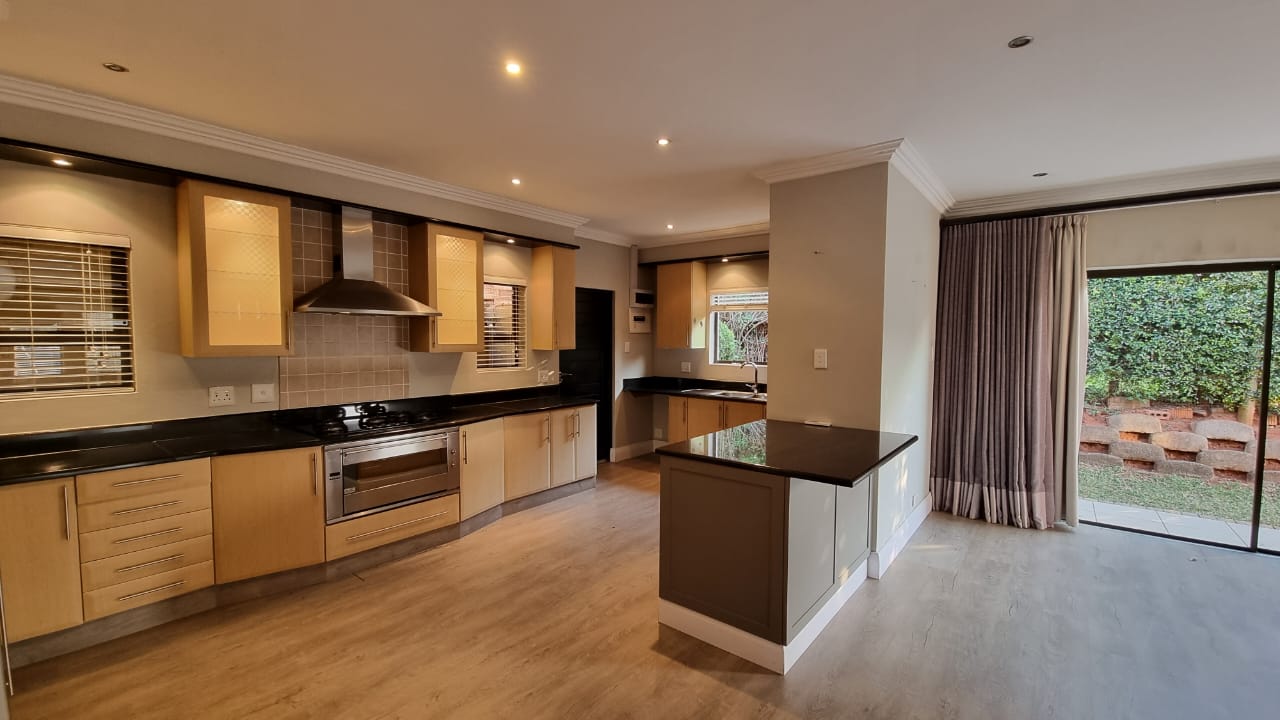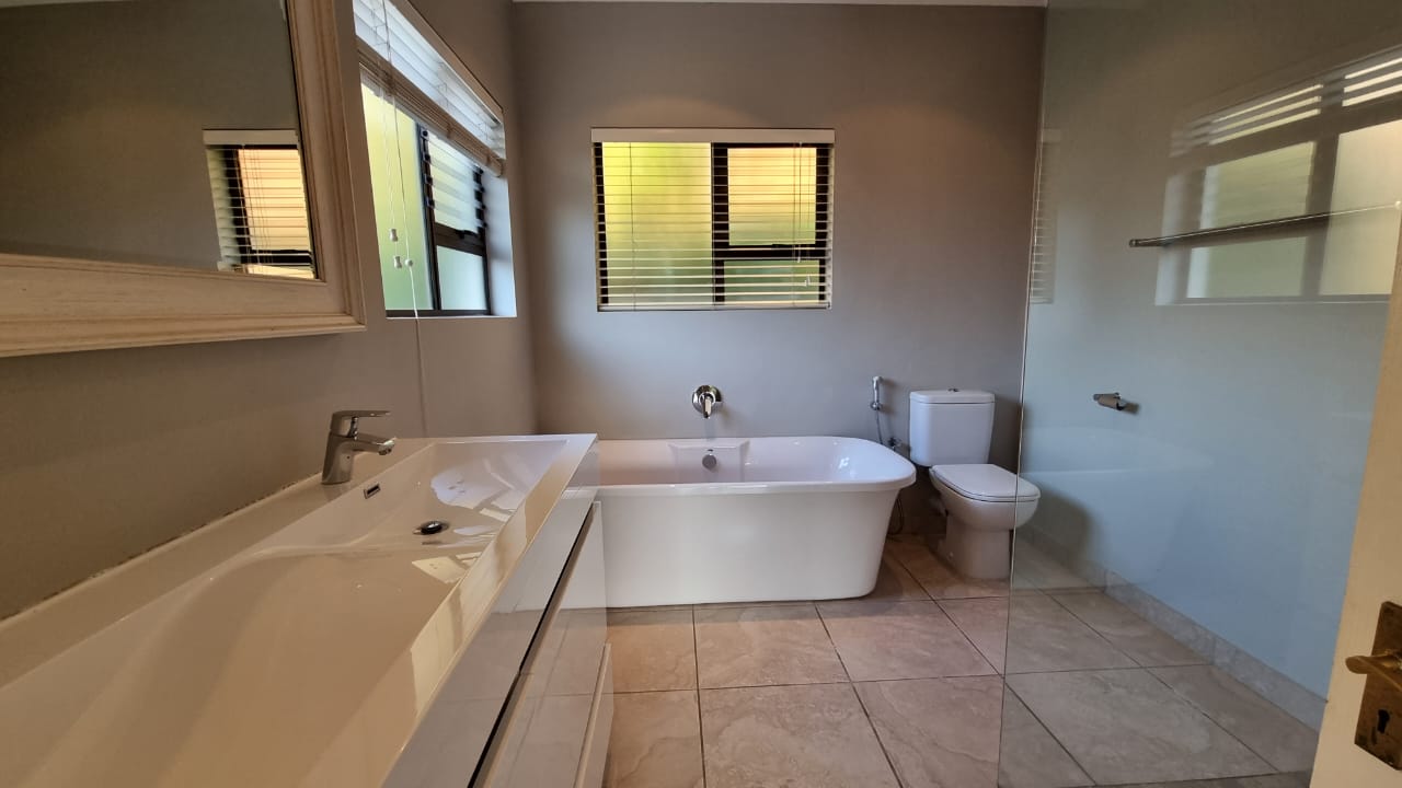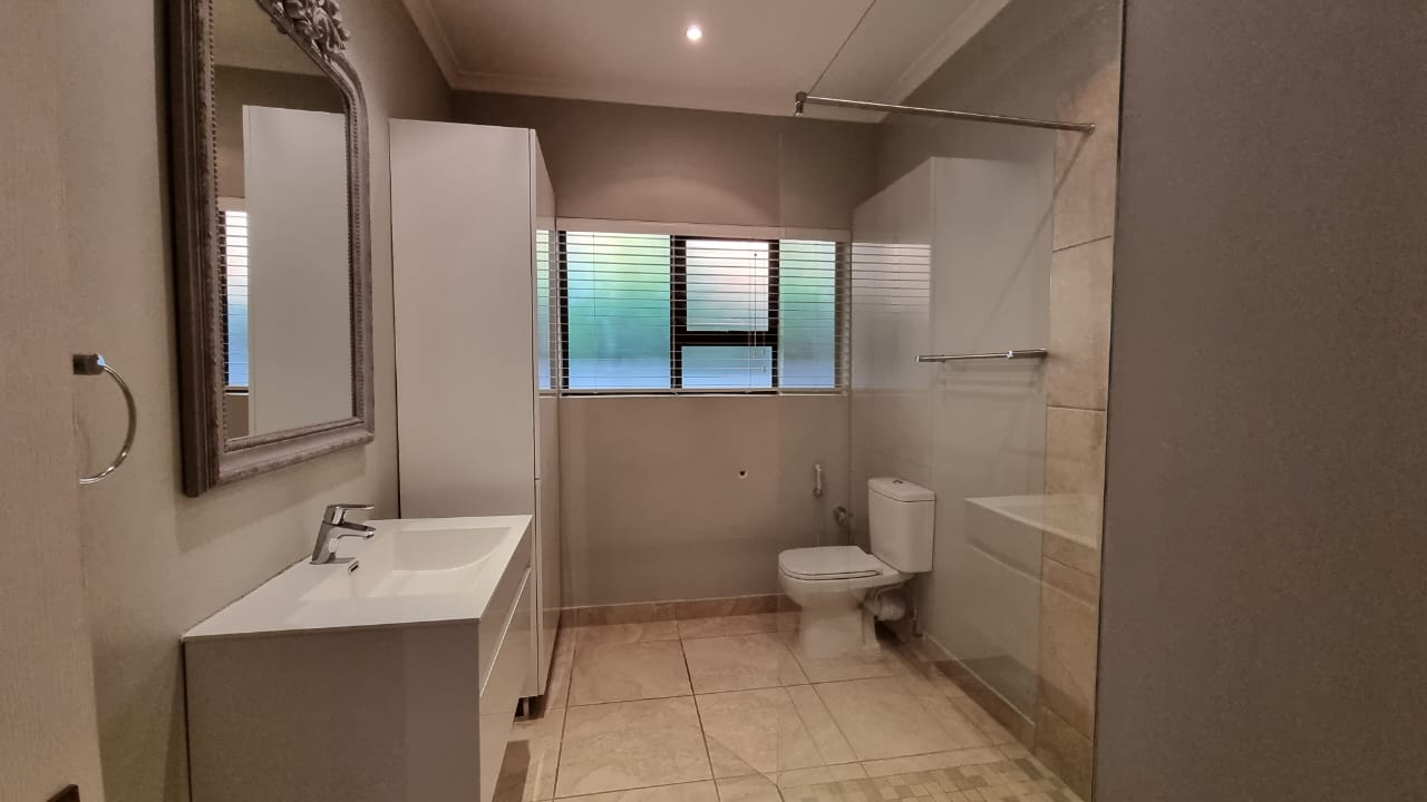 Airconditioned and beautifully finished throughout. Plus size double auto garage with direct access, 1 exclusive parking bay, pets are welcome and 24/7 access controlled gated estate. Private domestic bathroom.