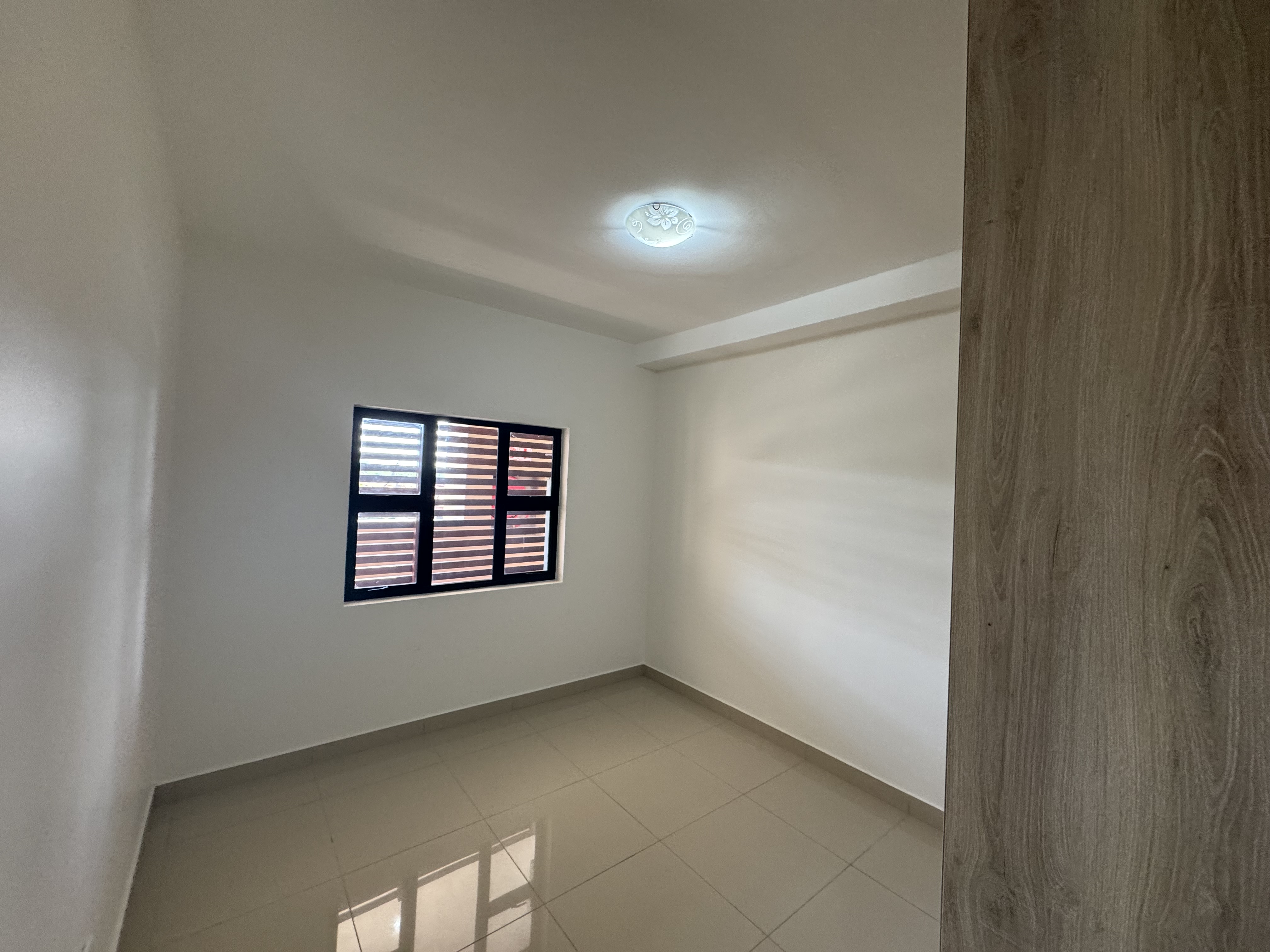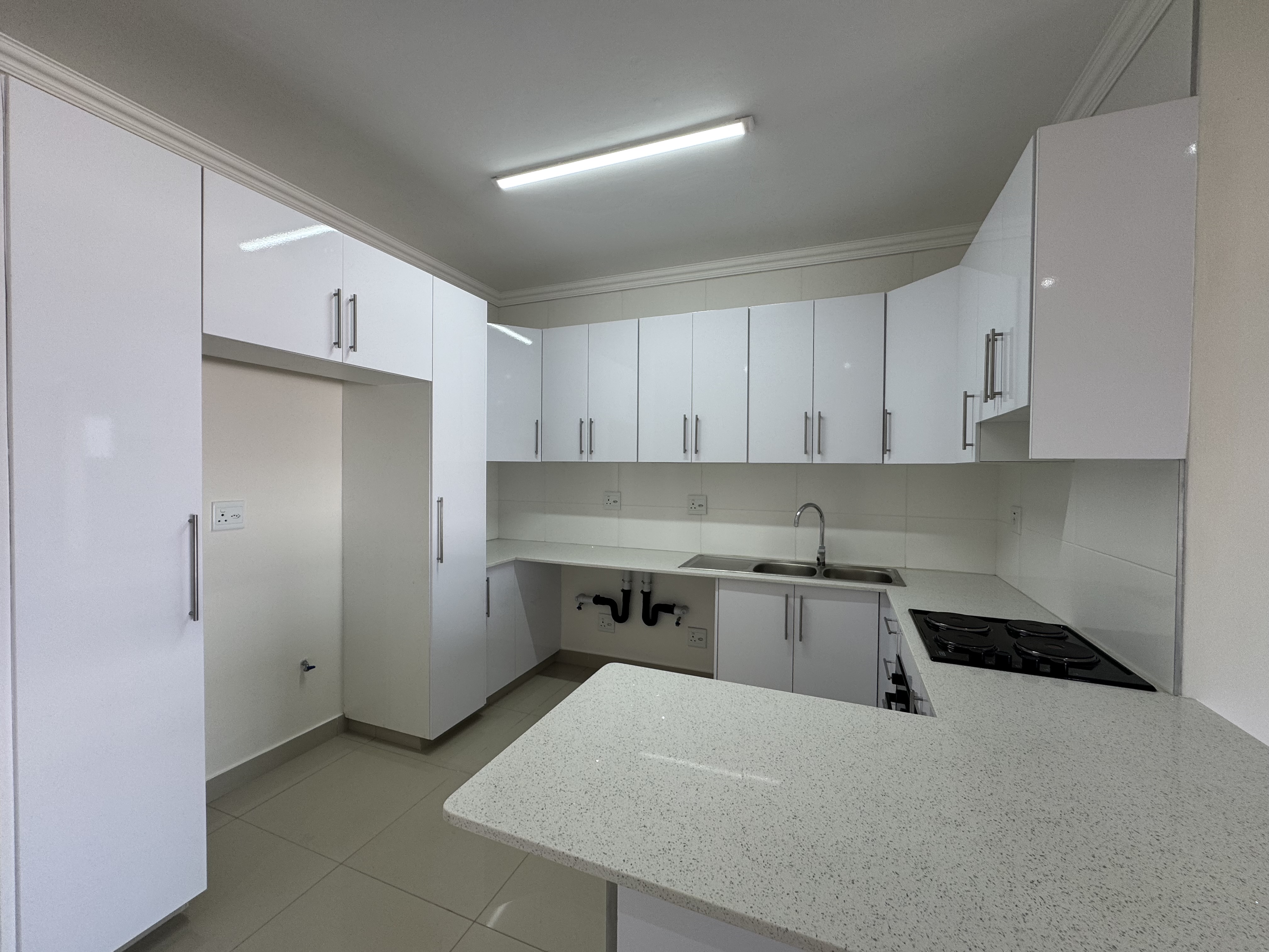 The sleek, contemporary kitchen is fitted with granite countertops, and ample cupboard space, making it a chef’s delight. Each of the three bedrooms is generously sized, with built-in wardrobes and large windows that invite natural light and coastal breezes. The main bedroom includes an en-suite bathroom with elegant fittings and a walk-in shower.