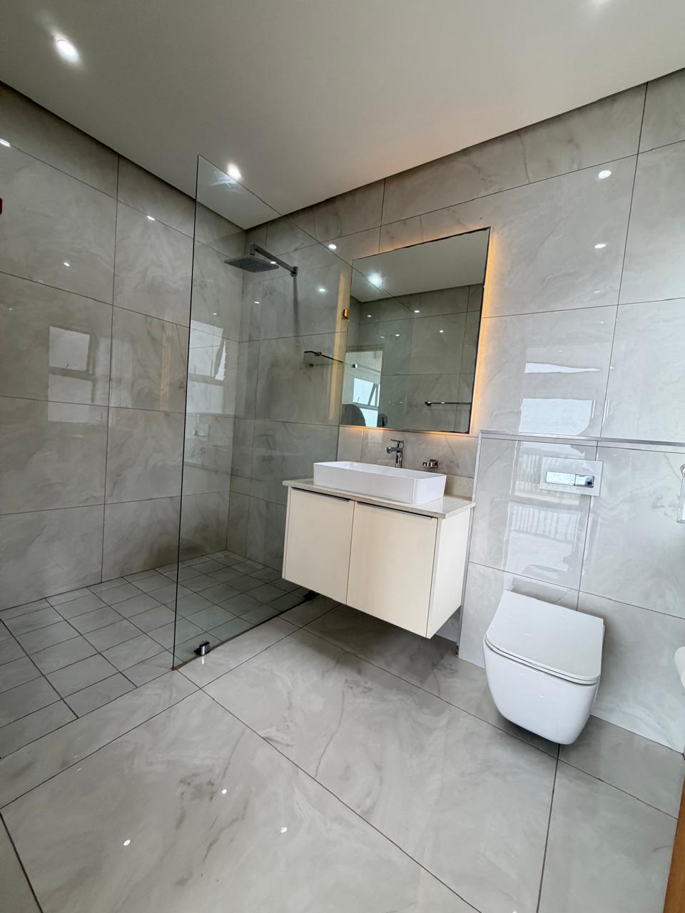 Upstairs, a tranquil pyjama lounge with a dedicated coffee station provides the perfect retreat, complemented by a private study ideal for working from home. Three generously proportioned en-suite bedrooms complete the upper level, each boasting built-in cupboards and contemporary bathrooms finished in soft, neutral tones. A magnificent full-length balcony extends across this level, inviting you to savour endless ocean views and spectacular sunrises.
