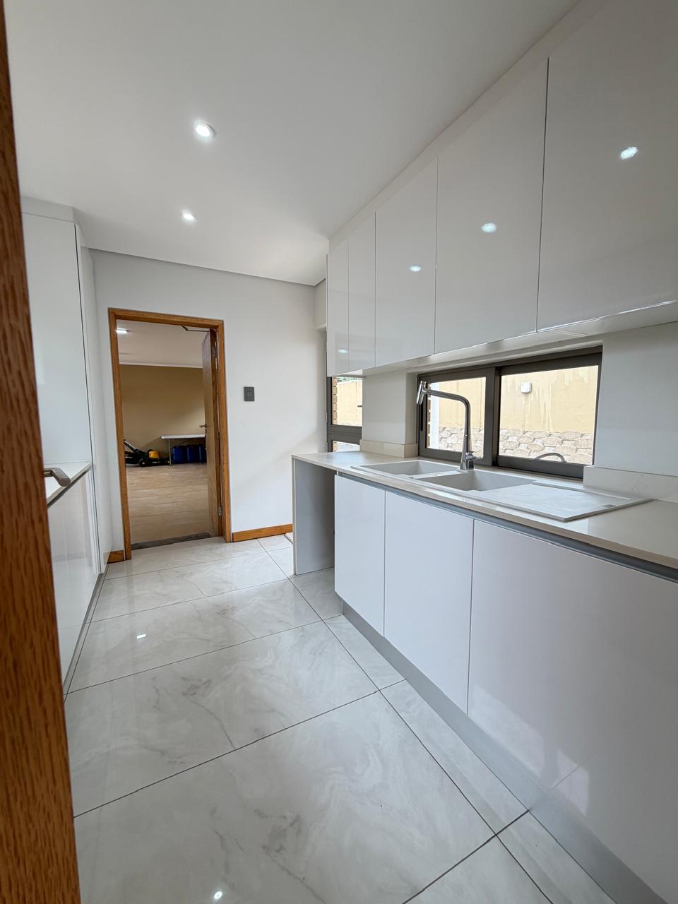 The landscaped garden is immaculately maintained and features a built-in braai area, ideal for relaxed outdoor entertaining. Additional features include en-suite staff accommodation with a kitchenette, a double garage, laundry facilities and ample open parking for approximately 20 vehicles.