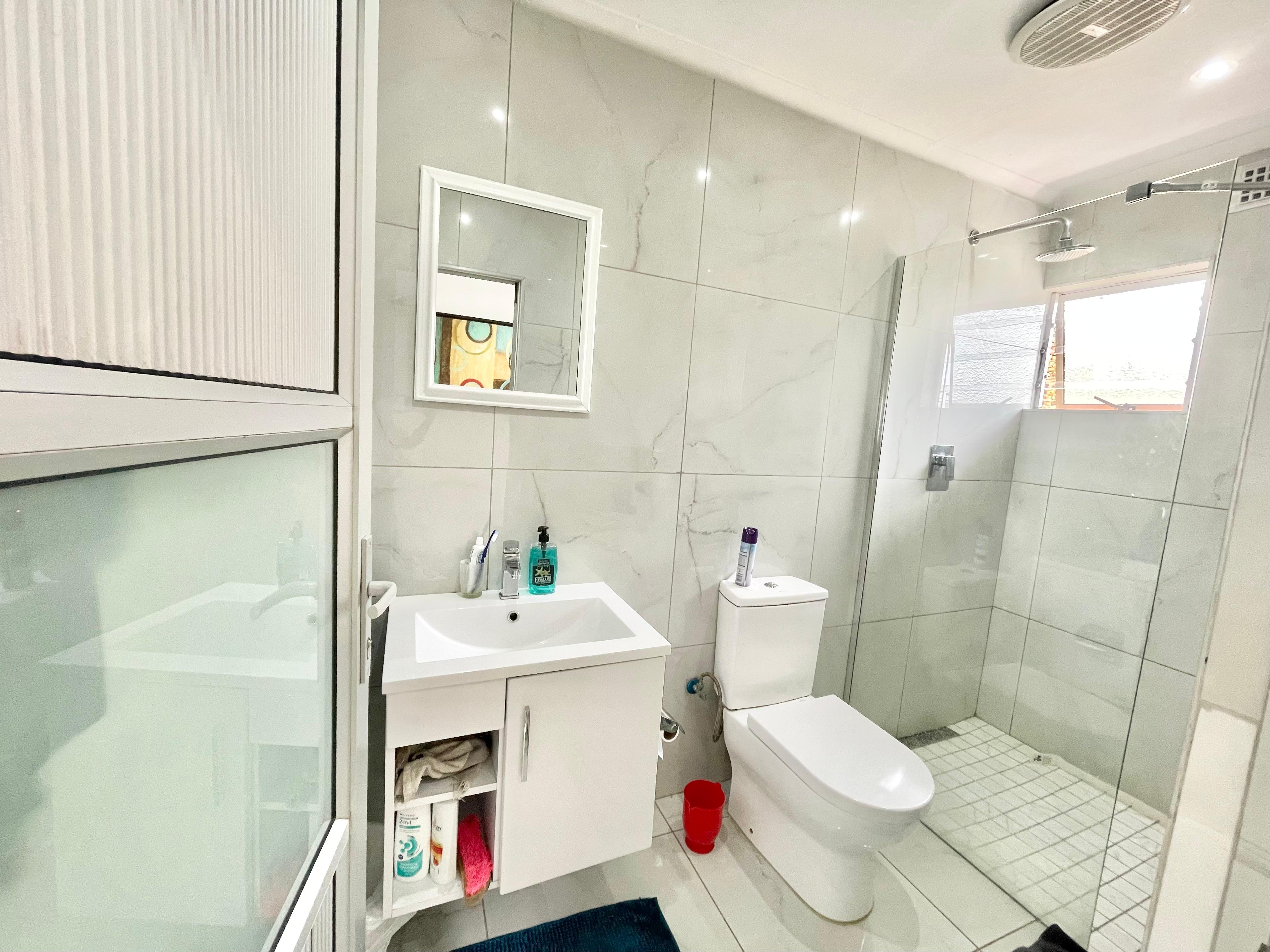 The open plan living area features a sleek kitchen with a gas hob, flowing effortlessly into the dining and lounge spaces, ideal for entertaining or family living. A guest toilet is conveniently located downstairs, and the garage enterance leads directly into the home for added ease and security. With a courtyard with a JoJo tank and washing line.
