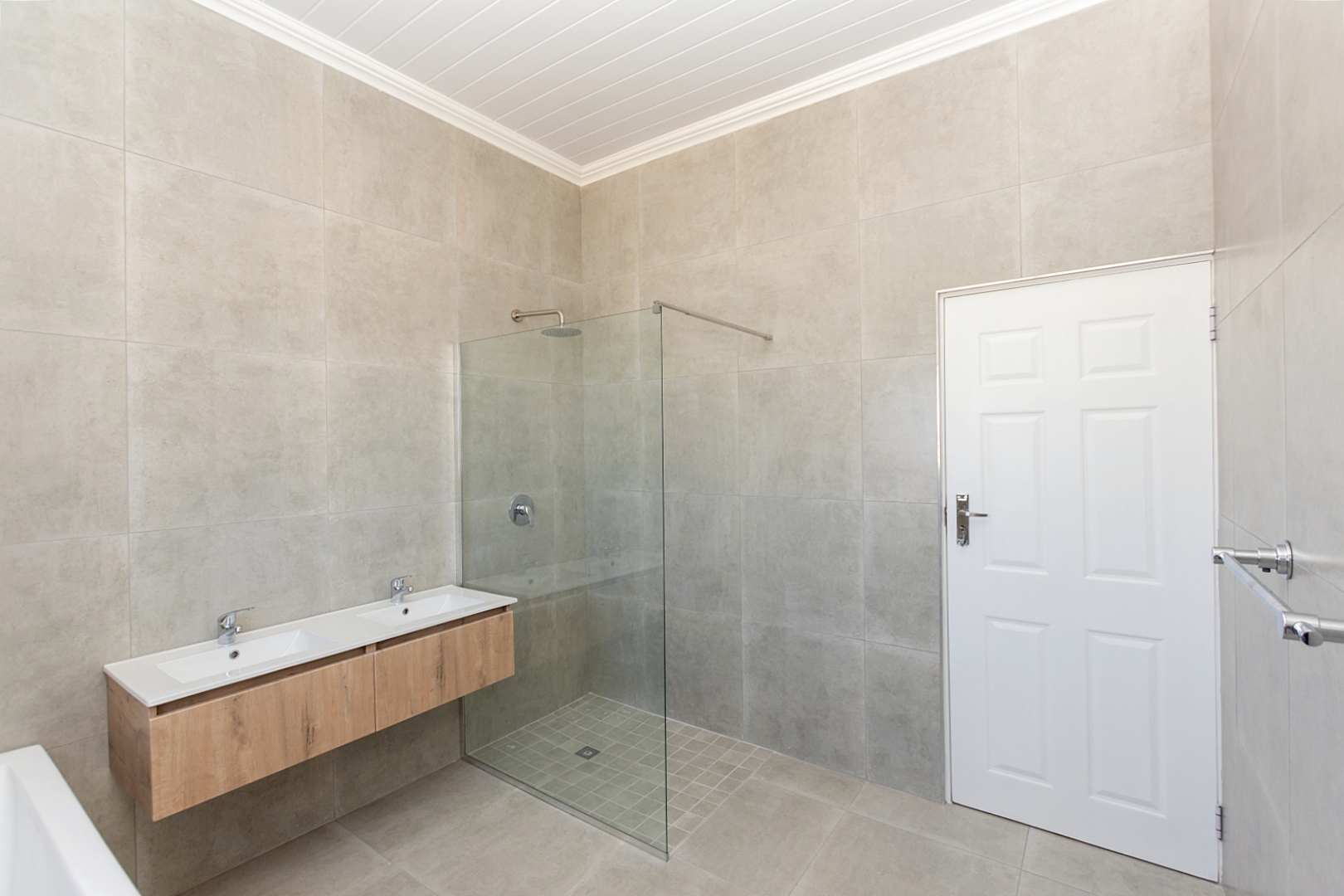 The home features three well-sized bedrooms, including a main bedroom with a private 0n-suite bathroom, he and she basins. A stylish family and guest bathroom with his-and-hers basins serves the remaining bedrooms.