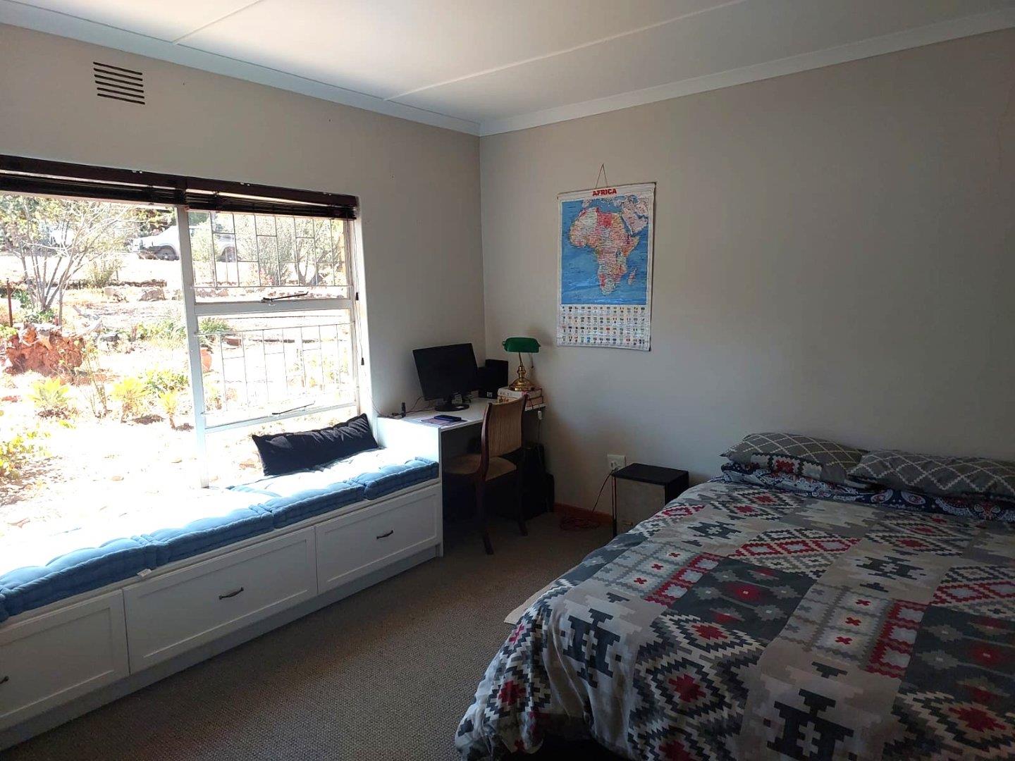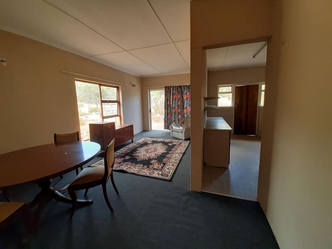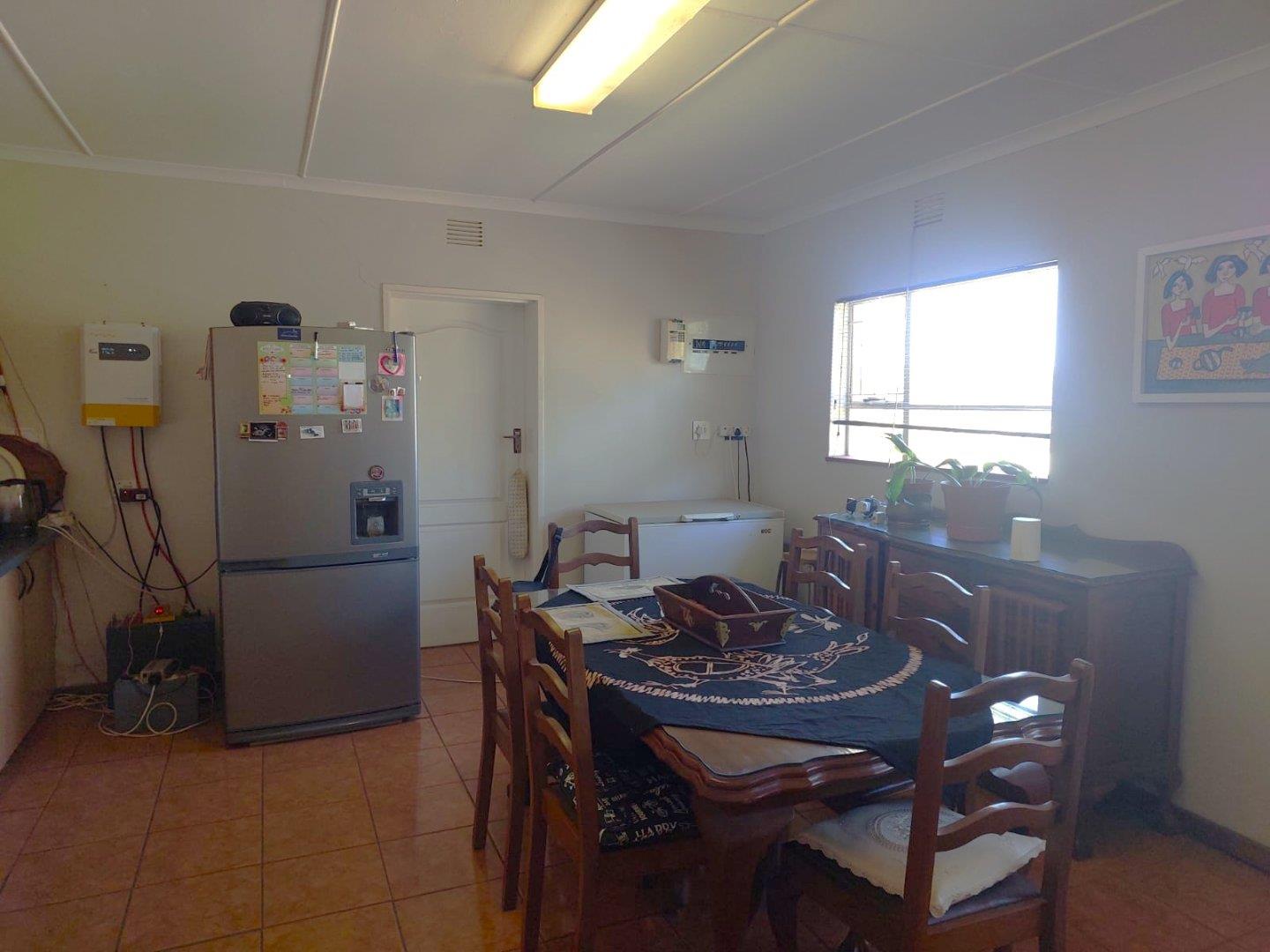 The main dwelling consists of a cozy living room with a fireplace, perfect for those chilly winter evenings. The adjoining dining room has access to the kitchen, making it ideal for entertaining. The kitchen is spacious and features ample cupboards and a separate scullery area. From the back door, there is a convenient store room that can also be used as a laundry.