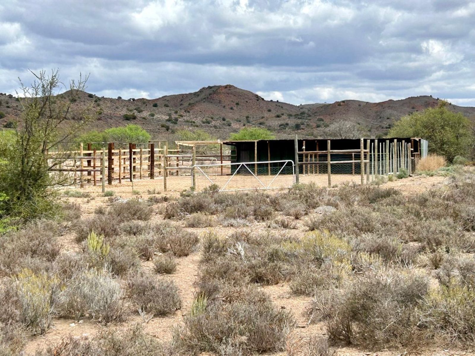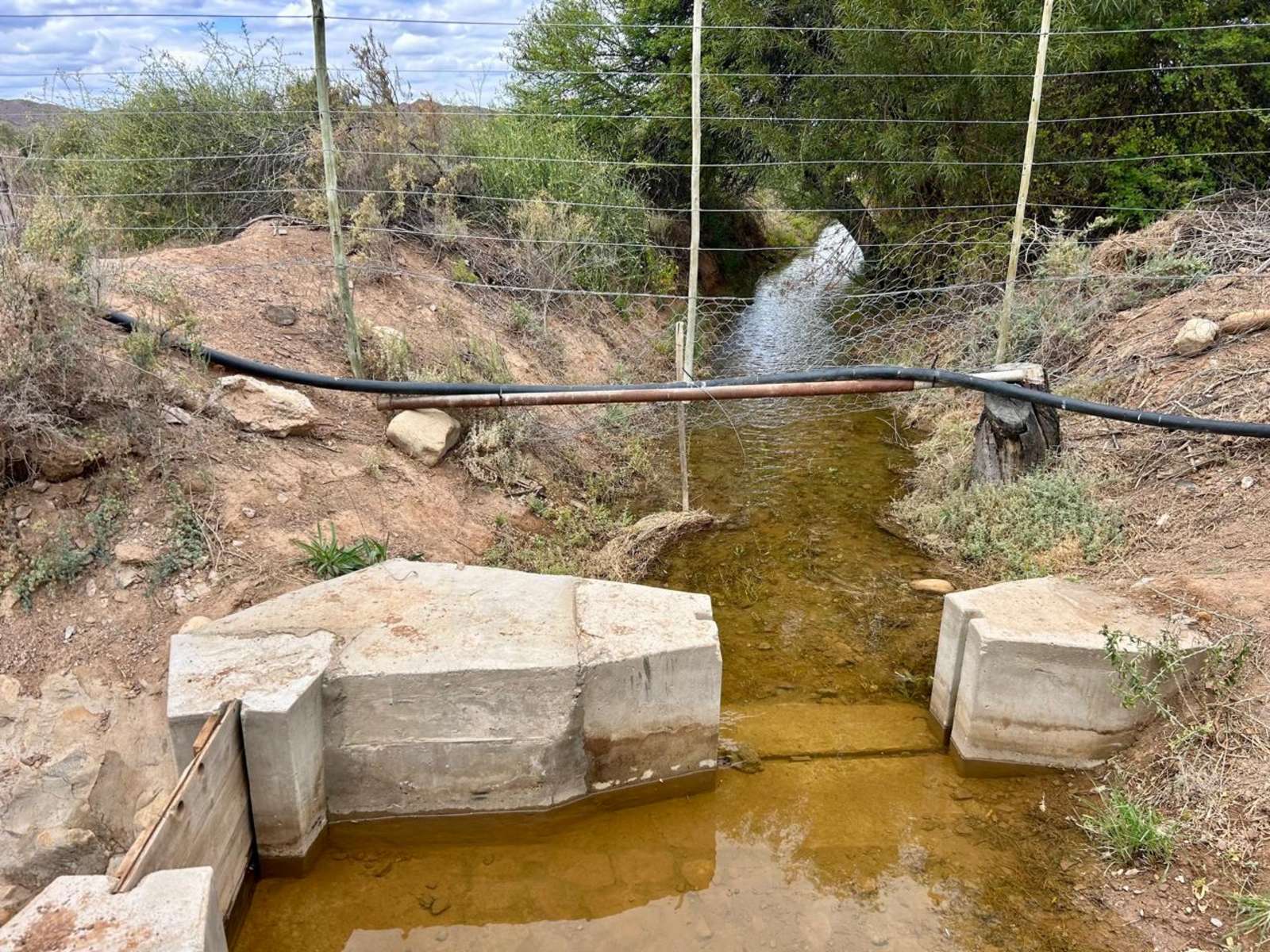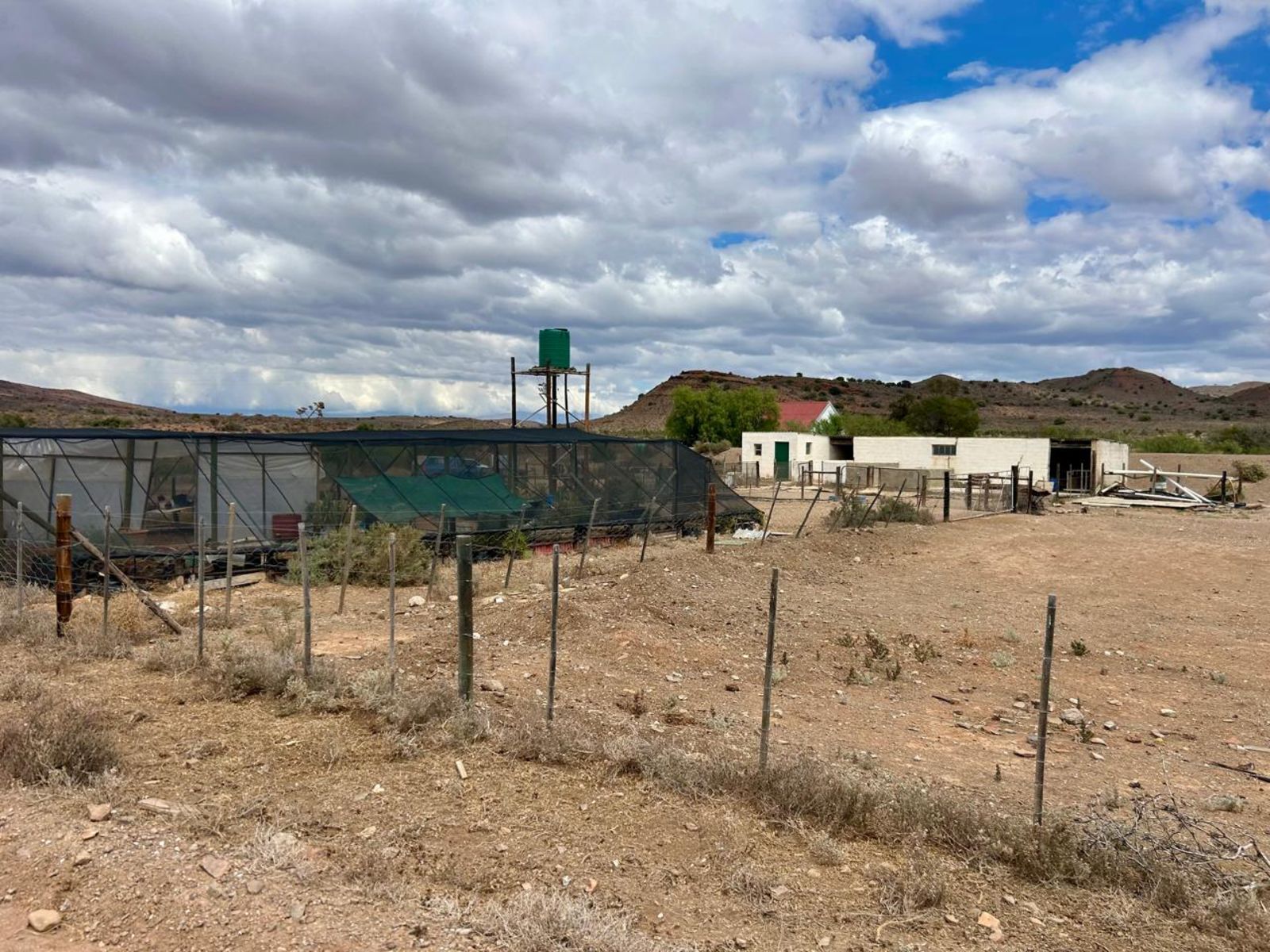 The property features two ground dams with irrigation systems, supported by water rights from the Floriskraaldam scheme. It has been organically managed for over eight years and includes established Mission, Frantoio, and Coratina olive trees, with additional arable land ready for cultivation.