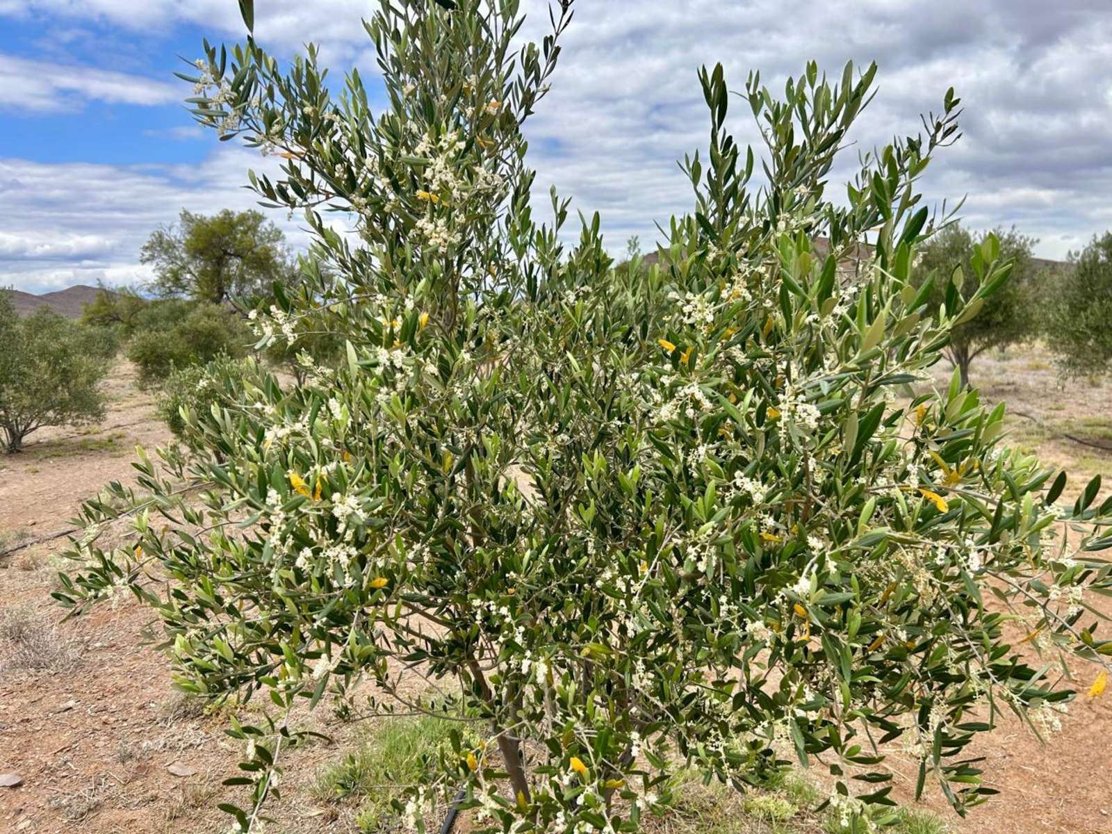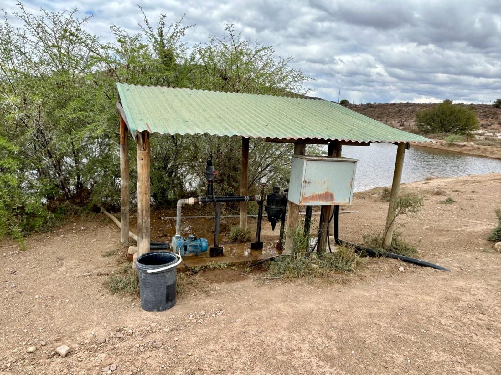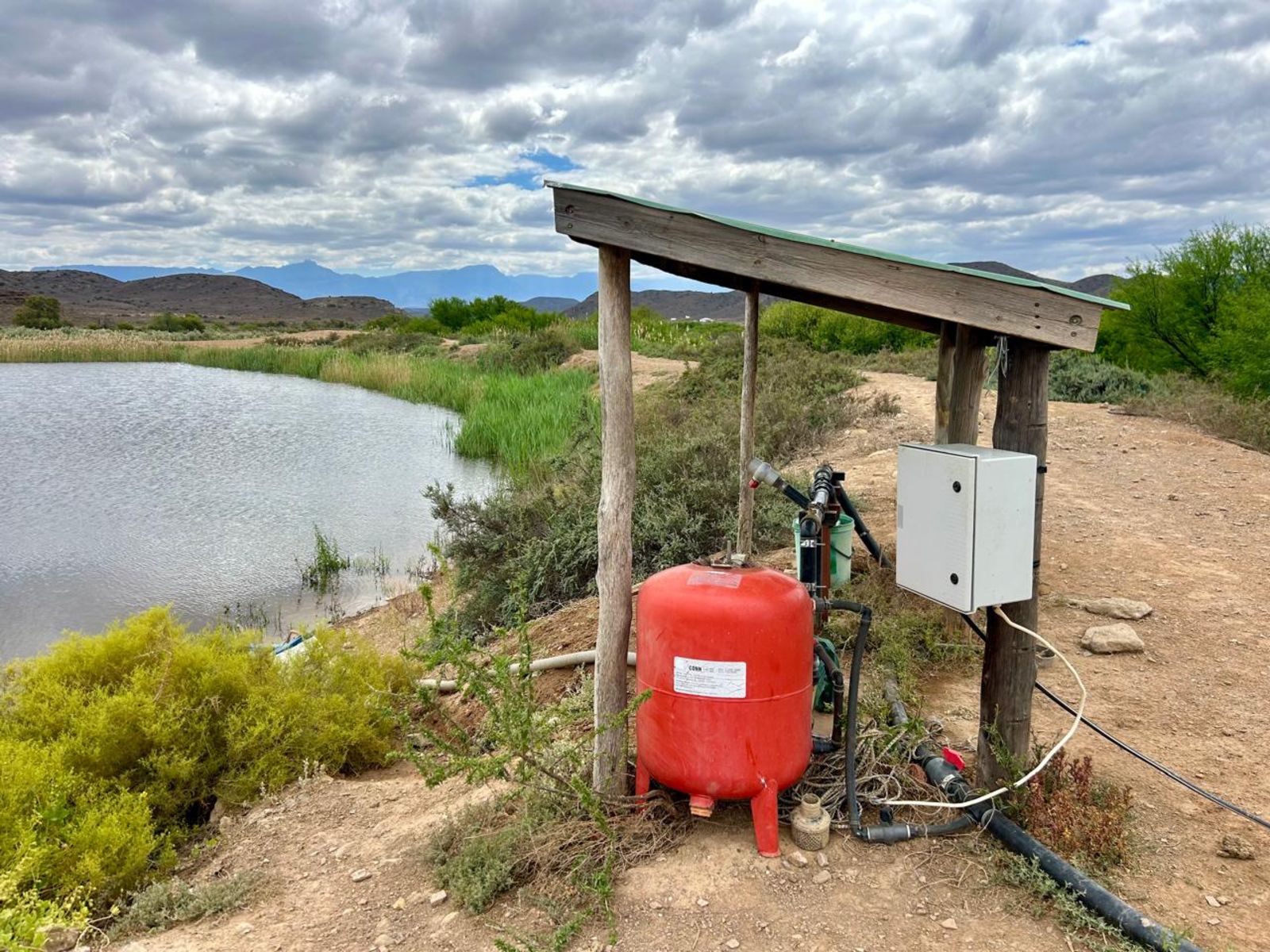 The property features two ground dams with irrigation systems, supported by water rights from the Floriskraaldam scheme. It has been organically managed for over eight years and includes established Mission, Frantoio, and Coratina olive trees, with additional arable land ready for cultivation.