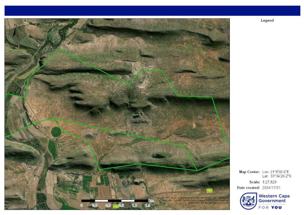 Situated 22 km from Ladismith in the Klein Karoo, this expansive 820-hectare farm, divided into two title deeds, offers a diverse agricultural landscape. A highlight is the 26 hectares under flood irrigation, ensuring efficient cultivation of crops. The hillside boasts a thriving forest of spekboom, adding ecological richness to the property.