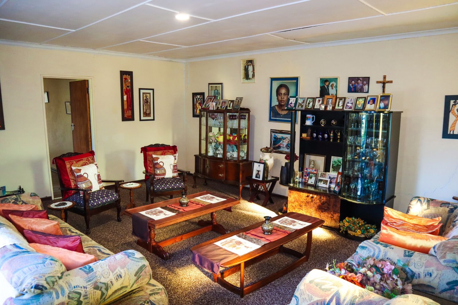 1 Lounge with Curtain Rails and carpet flooring.