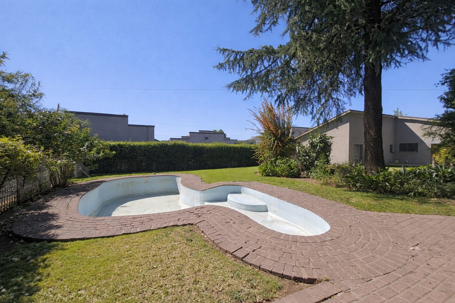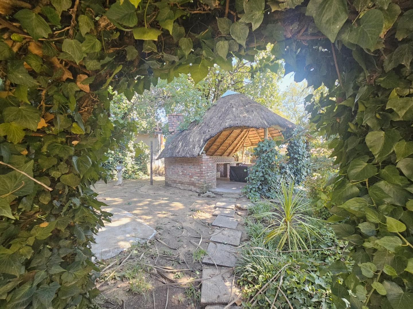 Outside, the expansive garden beckons with a swimming pool that, with some TLC, could become a stunning focal point. A tiled patio leads to a lapa equipped with a built-in braai, making it the perfect setting for relaxed outdoor entertaining with family and friends.