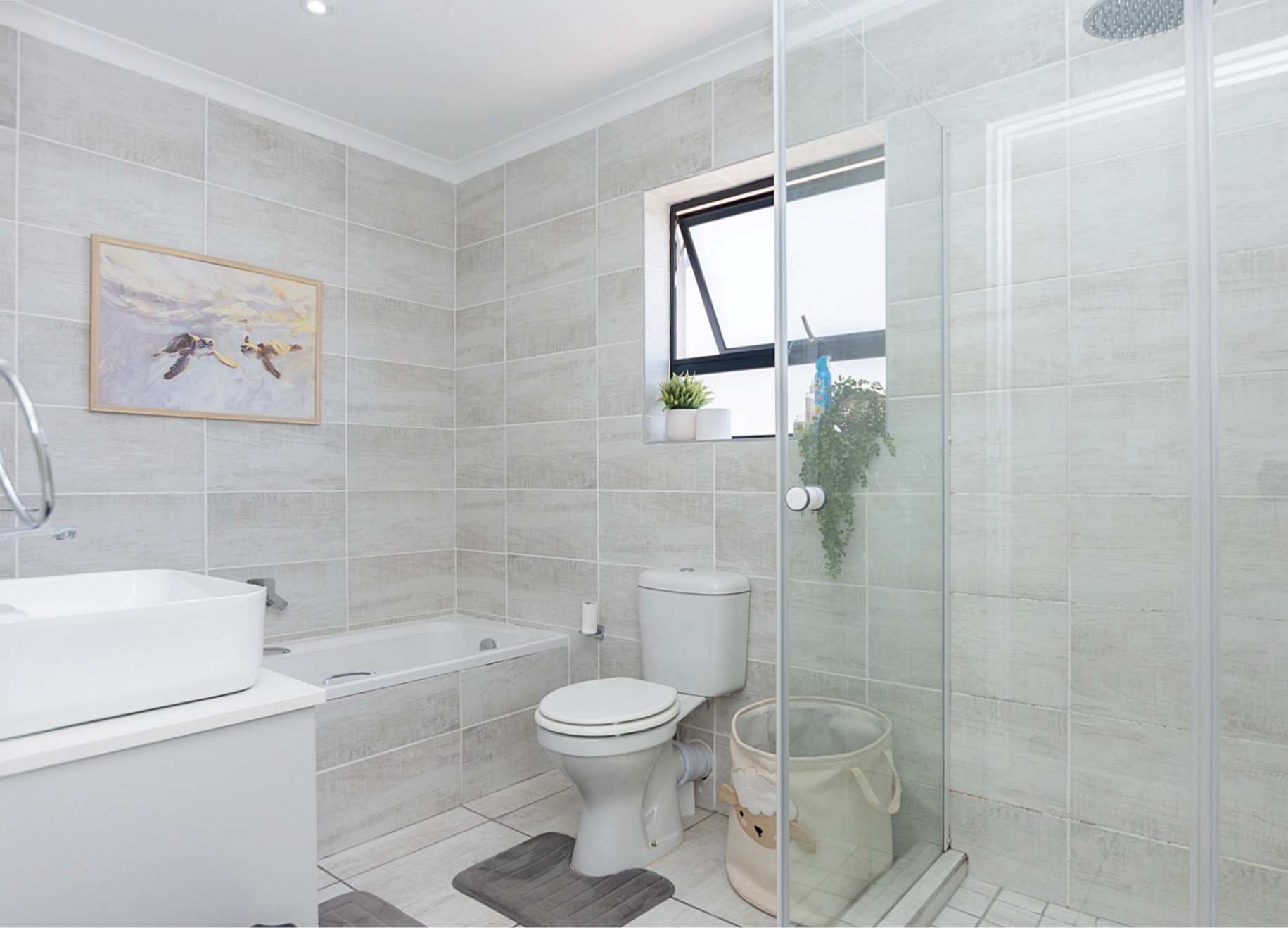 The front door opens into a warm, welcoming space designed for relaxed living, where the open-plan kitchen, dining area and lounge flow seamlessly to create the heart of the home. With three generously sized bedrooms and two bathrooms (including a private en-suite off the main bedroom), there’s plenty of space for families or visiting guests. The built-in braai leads out to a private, enclosed backyard, perfect for weekend gatherings or quiet evenings, while roller blinds on the patio allow you to enjoy the outdoor area year-round, protected from the coastal breeze.