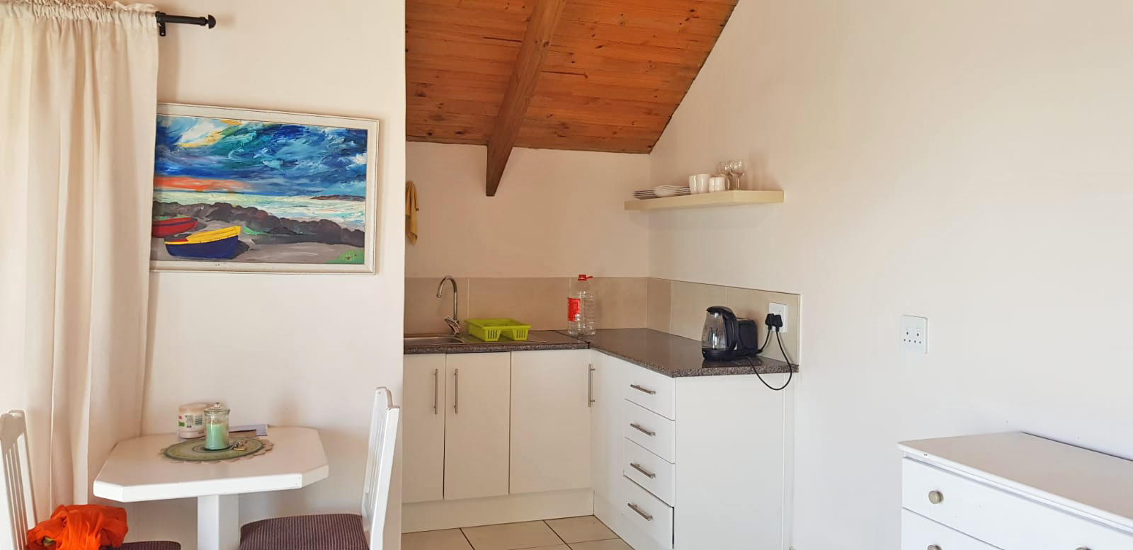 2)Upstairs with kitchenette, bathroom, and patio with a view
