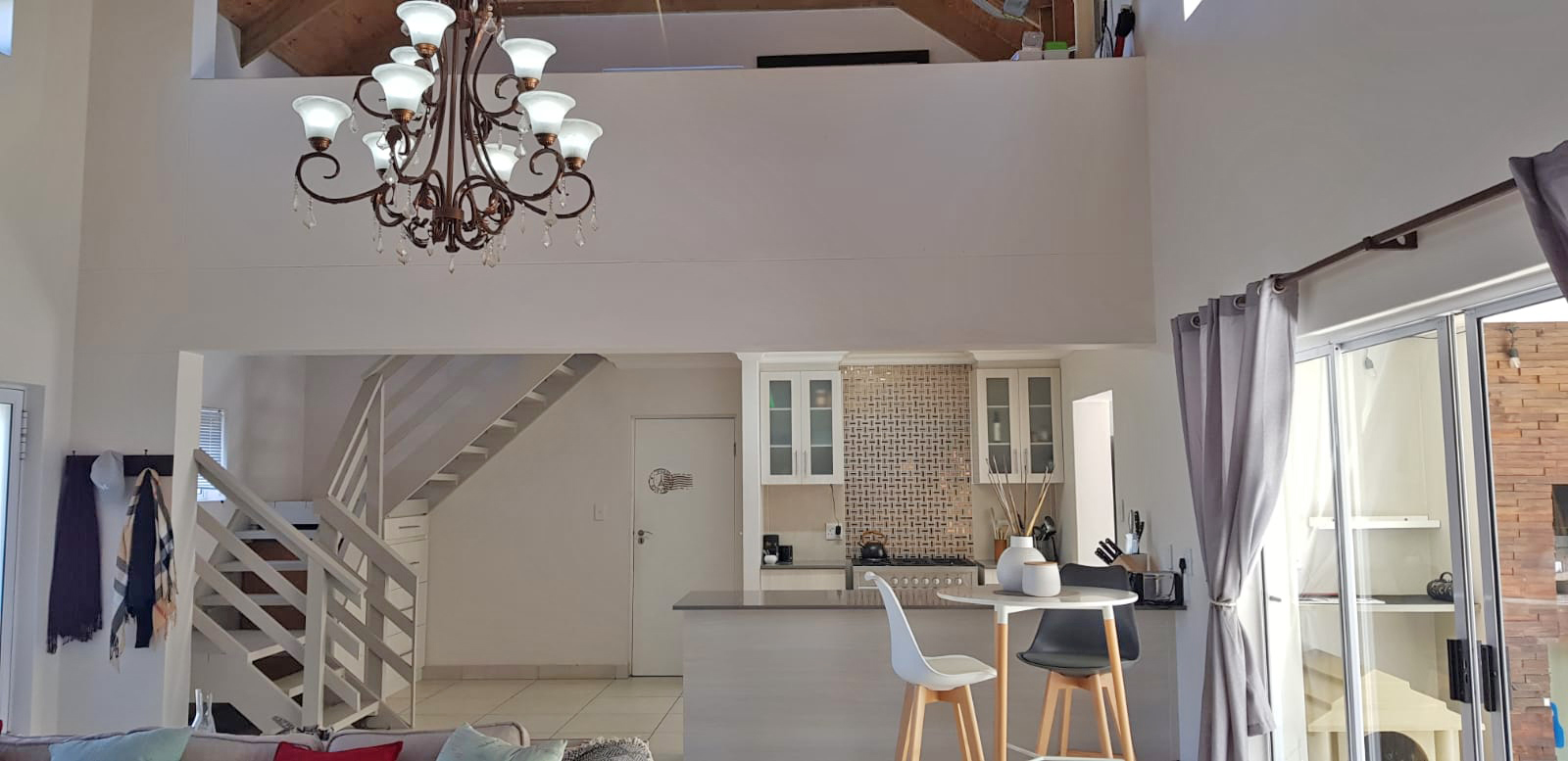 Living area has Double-volume ceilings with an open plan living area