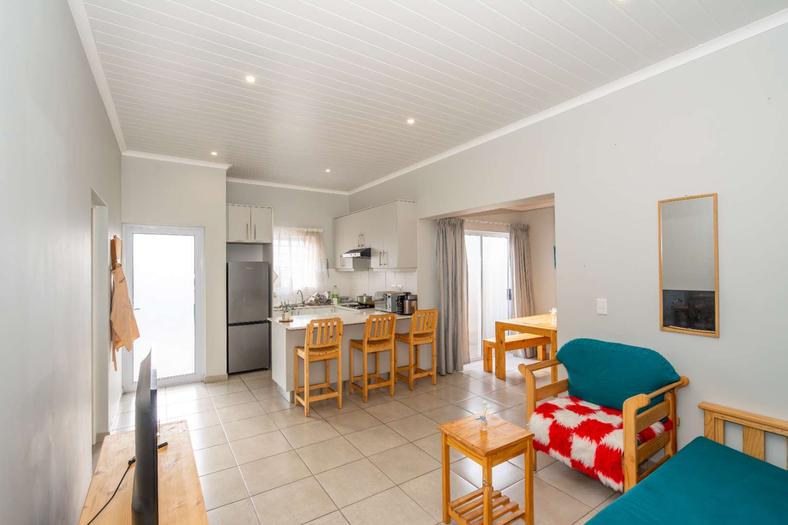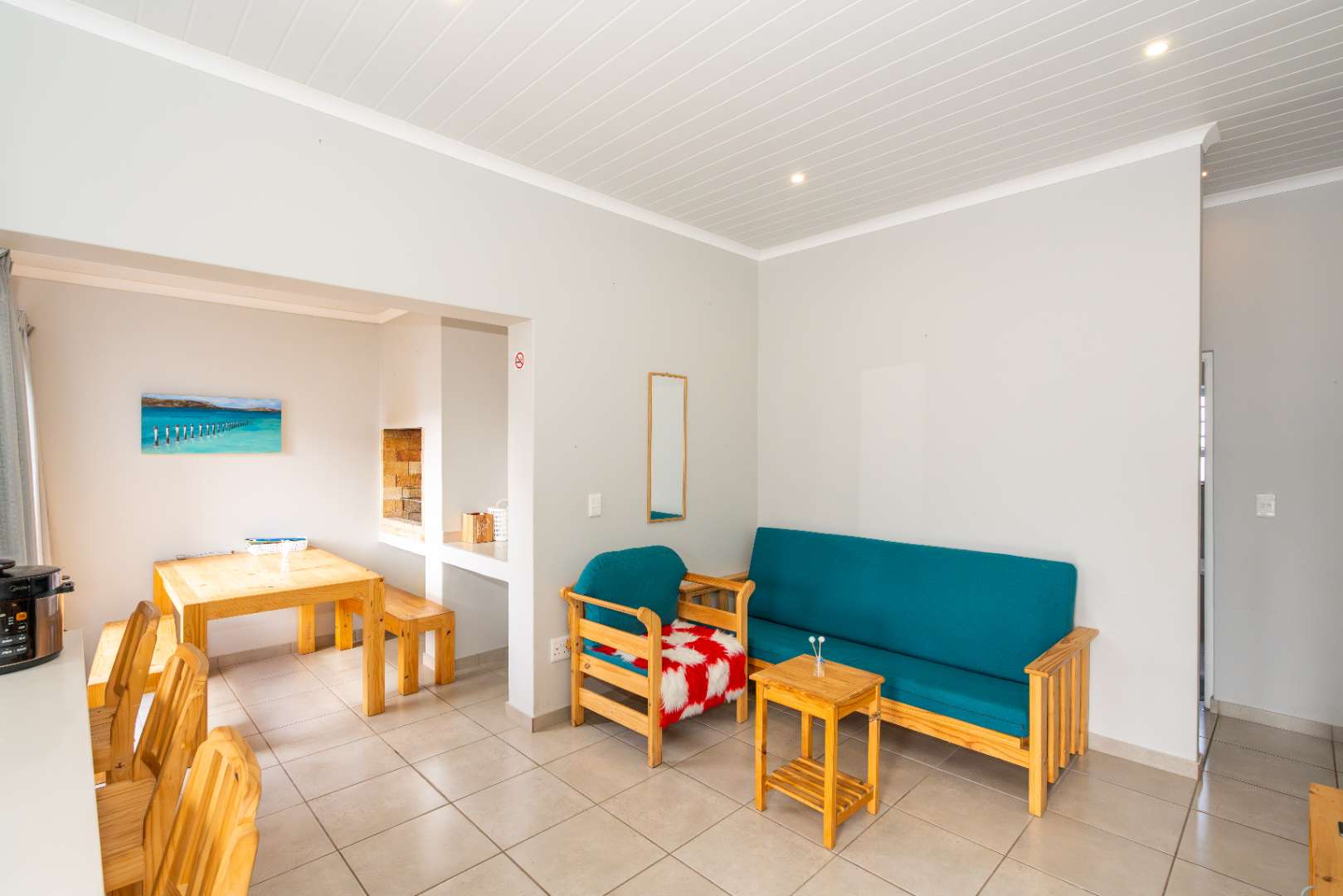 The property also comes with built-in braai perfectly flow from the kitchen and living area with a sliding door open out to a private courtyard.