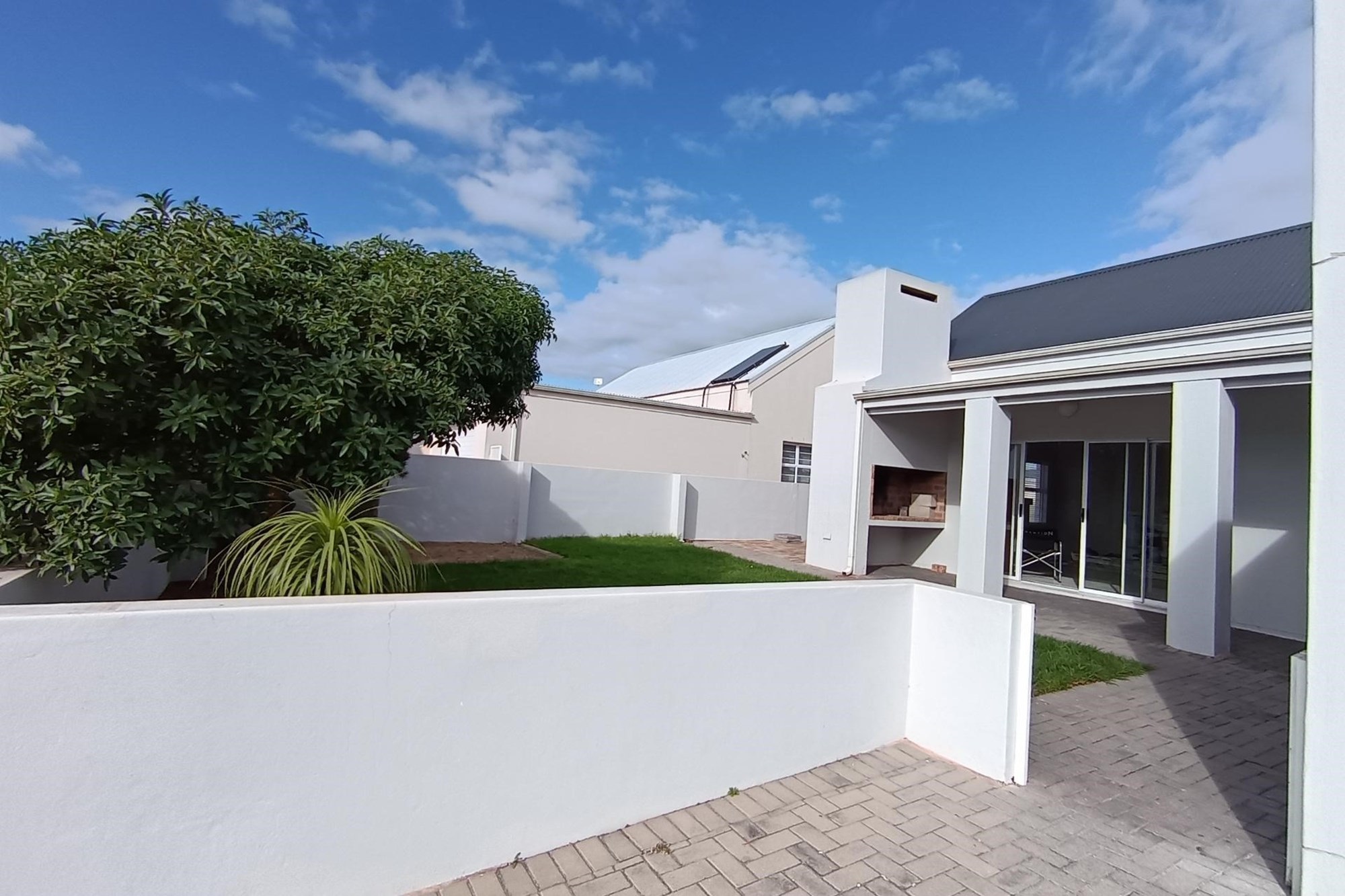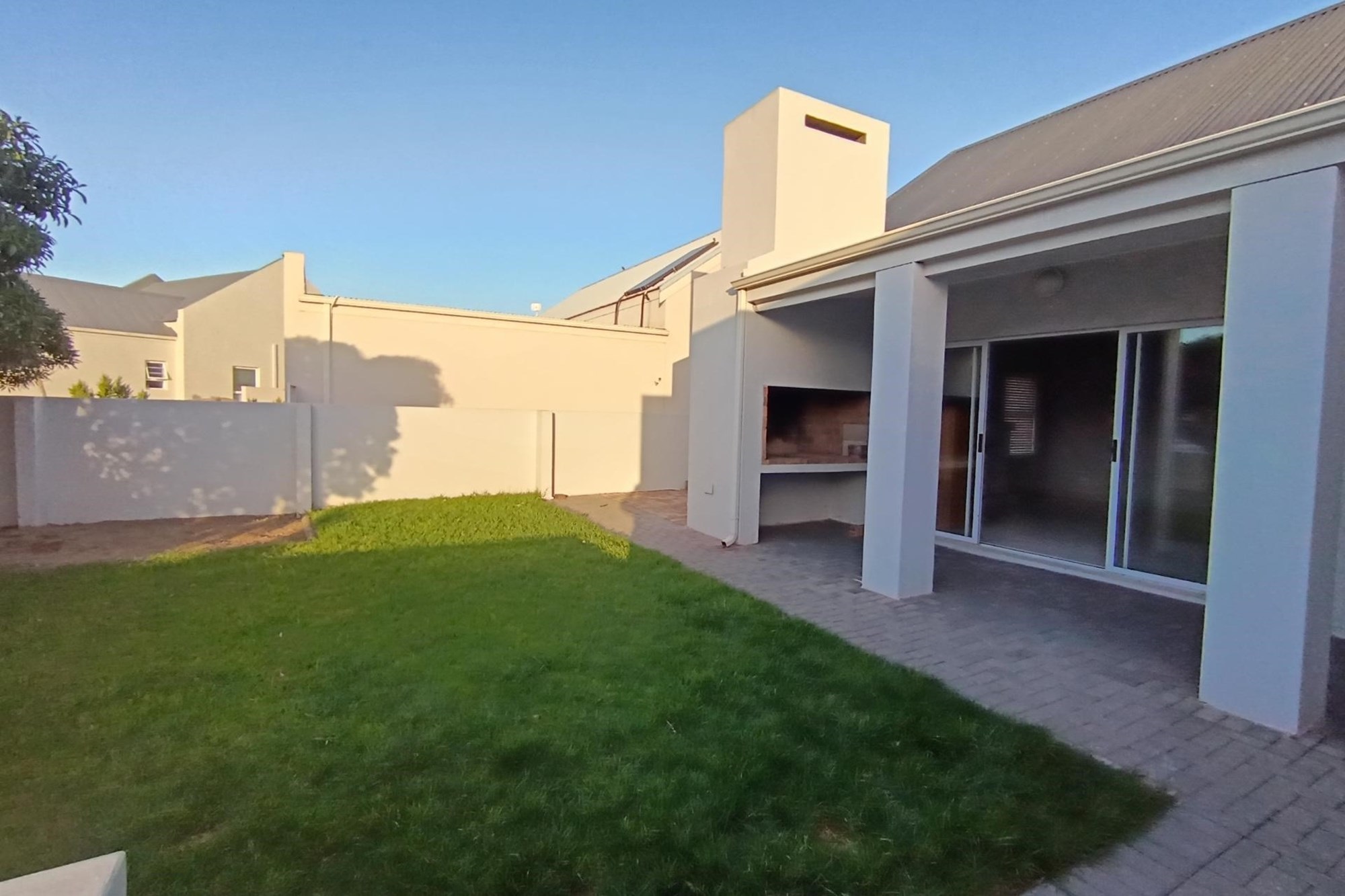 As you step inside, you'll be greeted by an abundance of natural light, pouring in from the carefully designed layout that maximizes sunlight throughout the day. The open-plan living area flows seamlessly from the kitchen to the lounge and dining space, leading out onto a paved patio perfect for outdoor entertaining. A covered roof space provides additional protection from the elements.