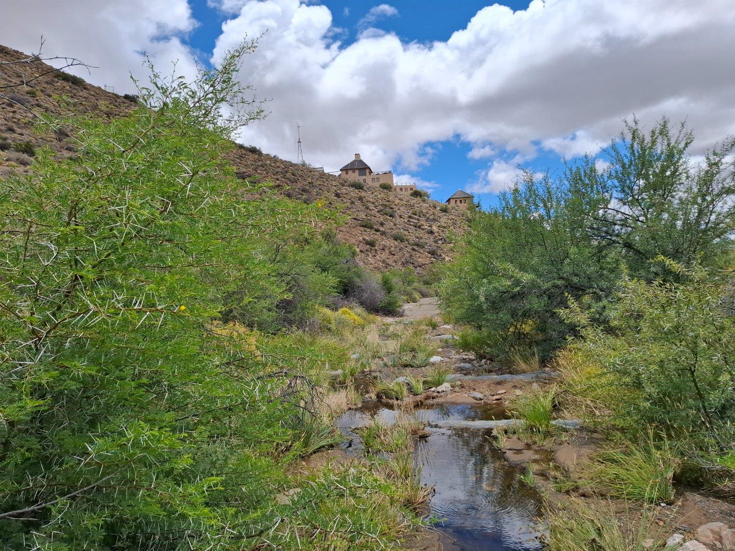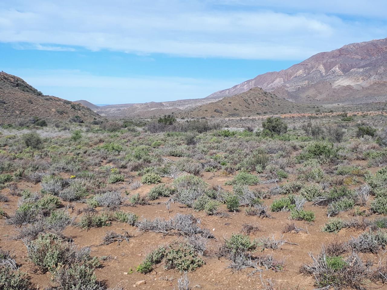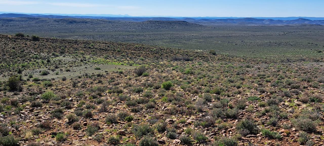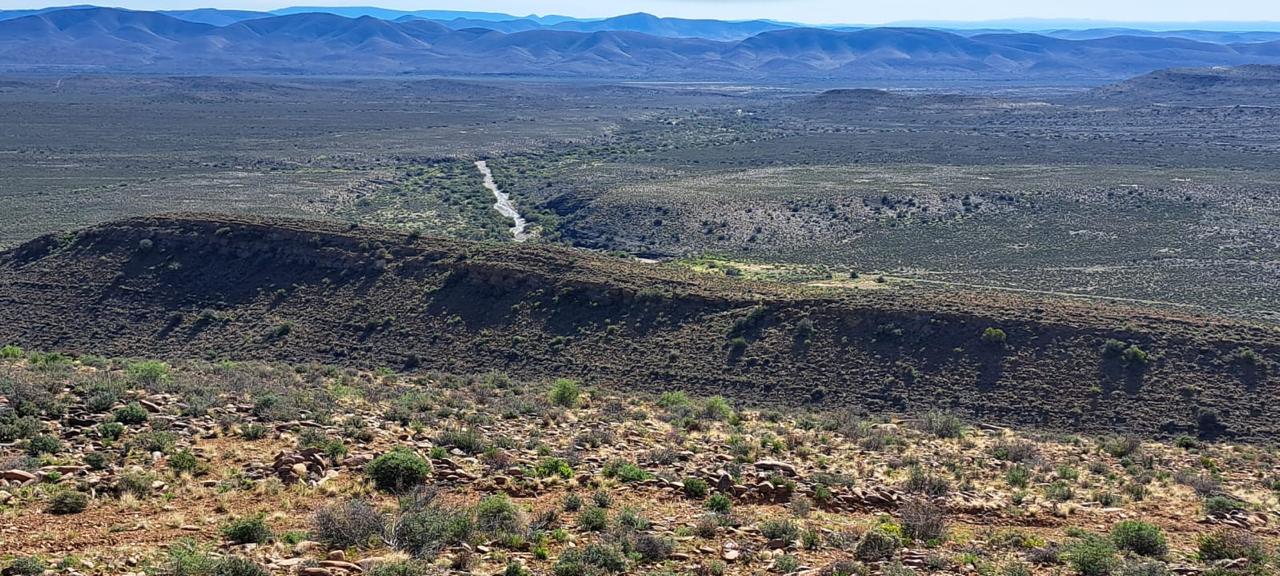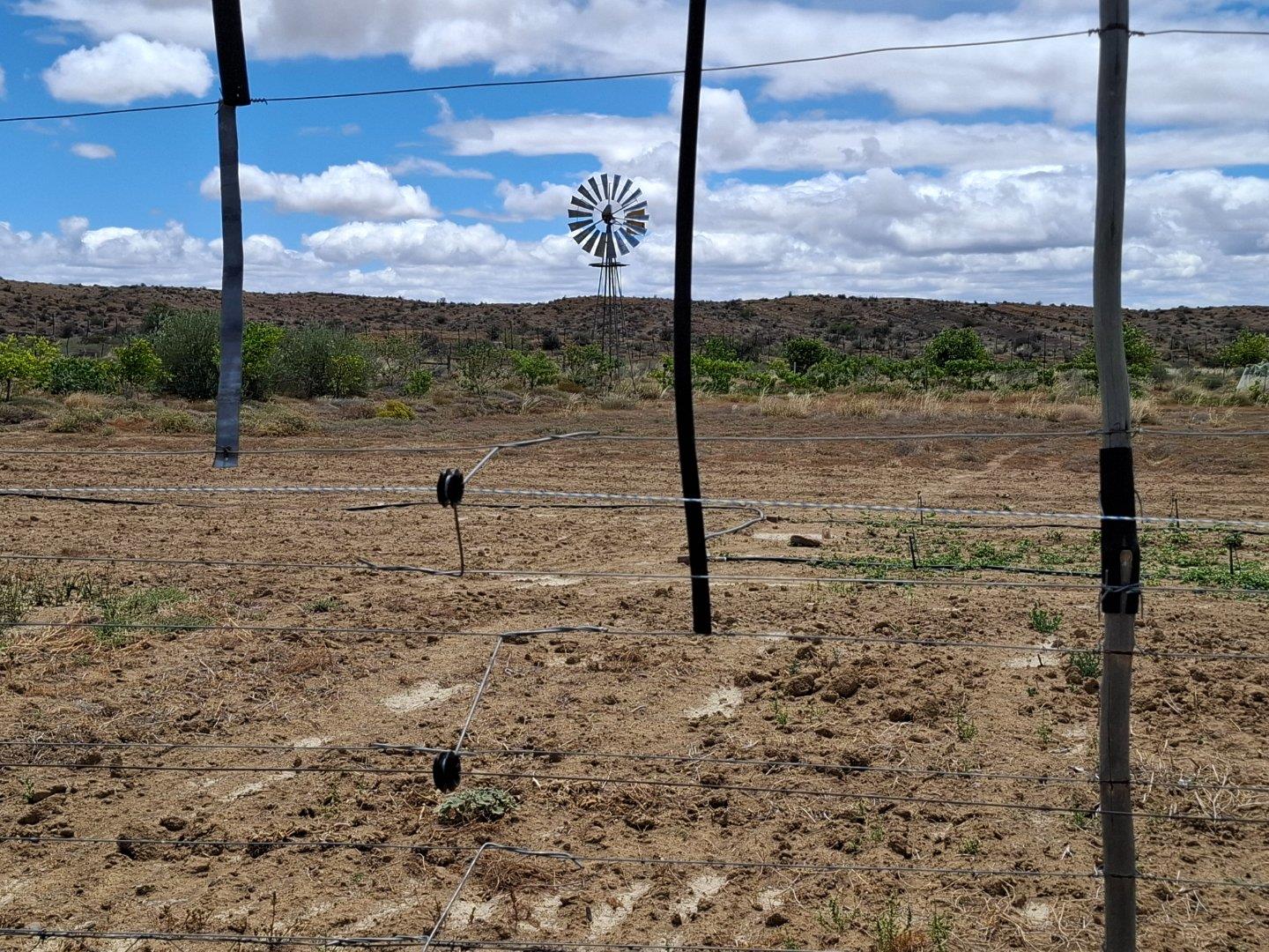 COMPOSITION -| 8 692 Ha of good grazing. 91 Types of grazing bushes and 17 types of grazing grass. 5 212 Ha comprises of natural pastures of ridges and plains in the dry river beds (non-perennial). The other 3 490 Ha of natural grazing is mountain land. Here is also 10 Ha of irrigation with permanent sprinklers from a borehole which delivers 27 000 l/hour. This 10 Ha is divided into 4 camps with water troughs for livestock.