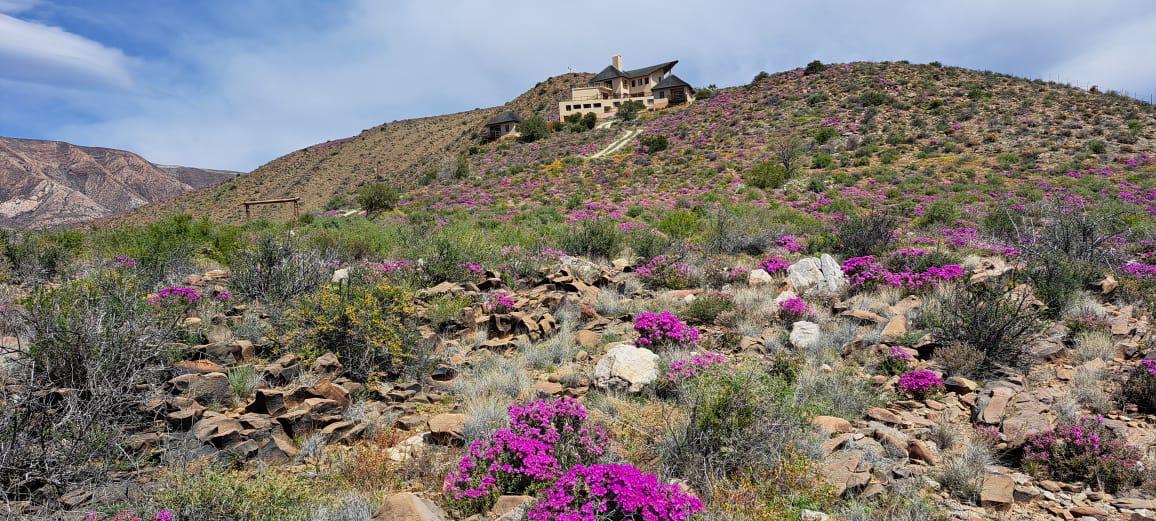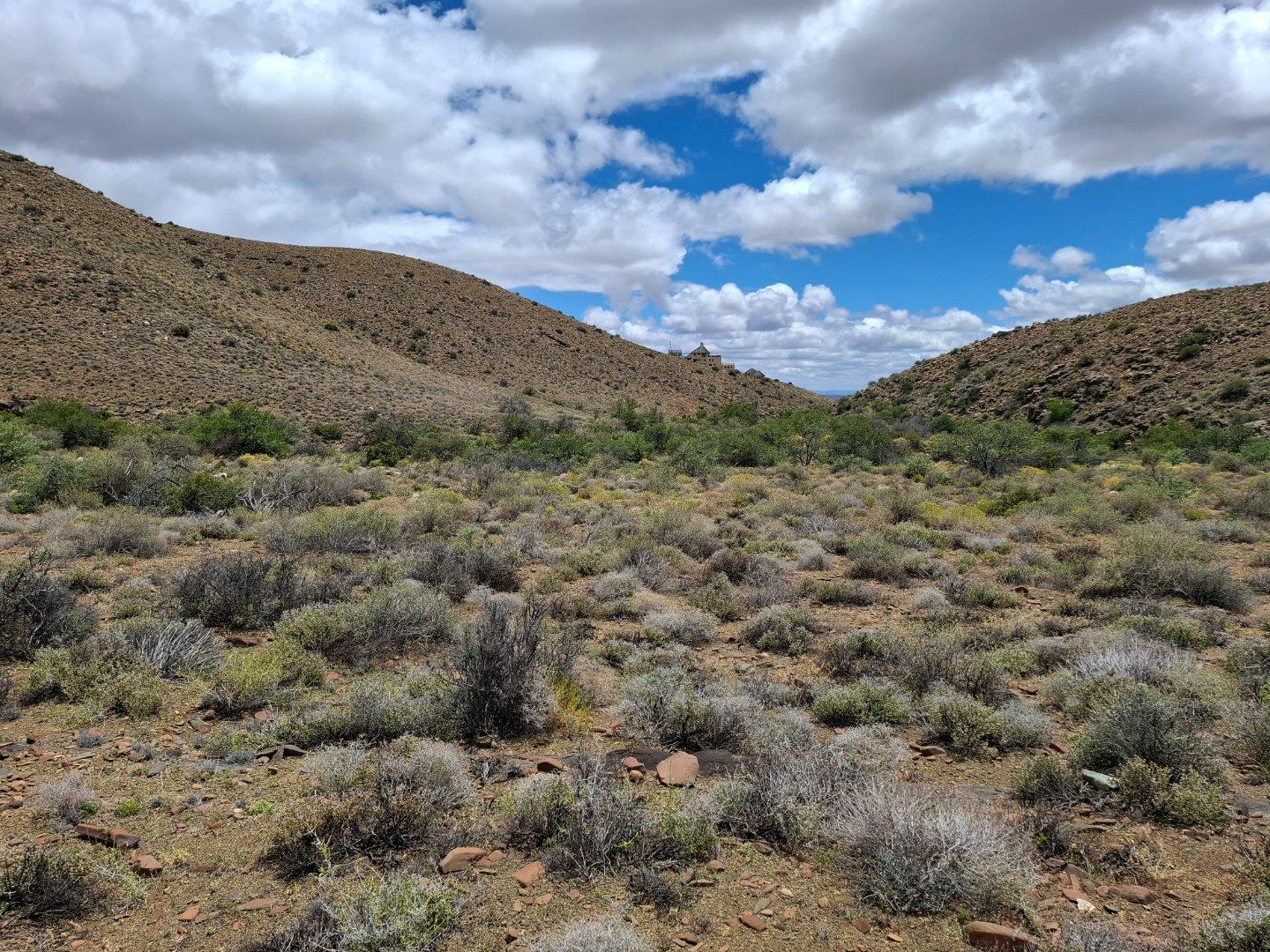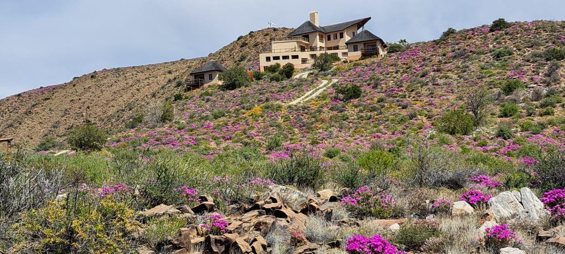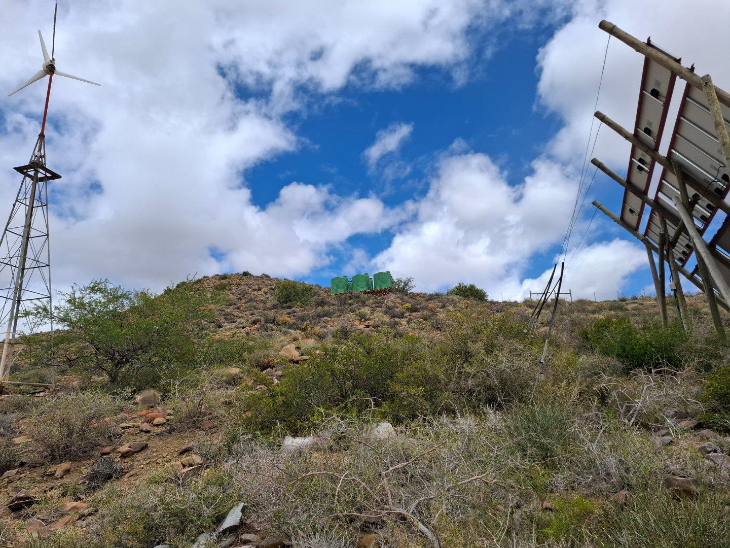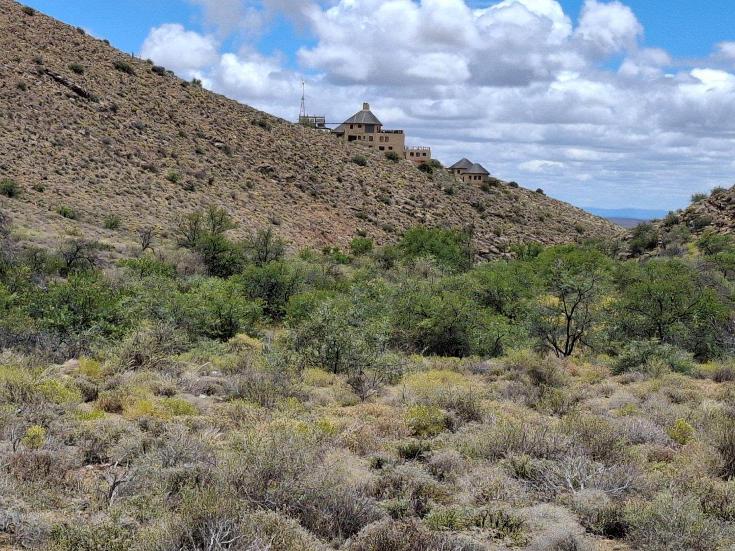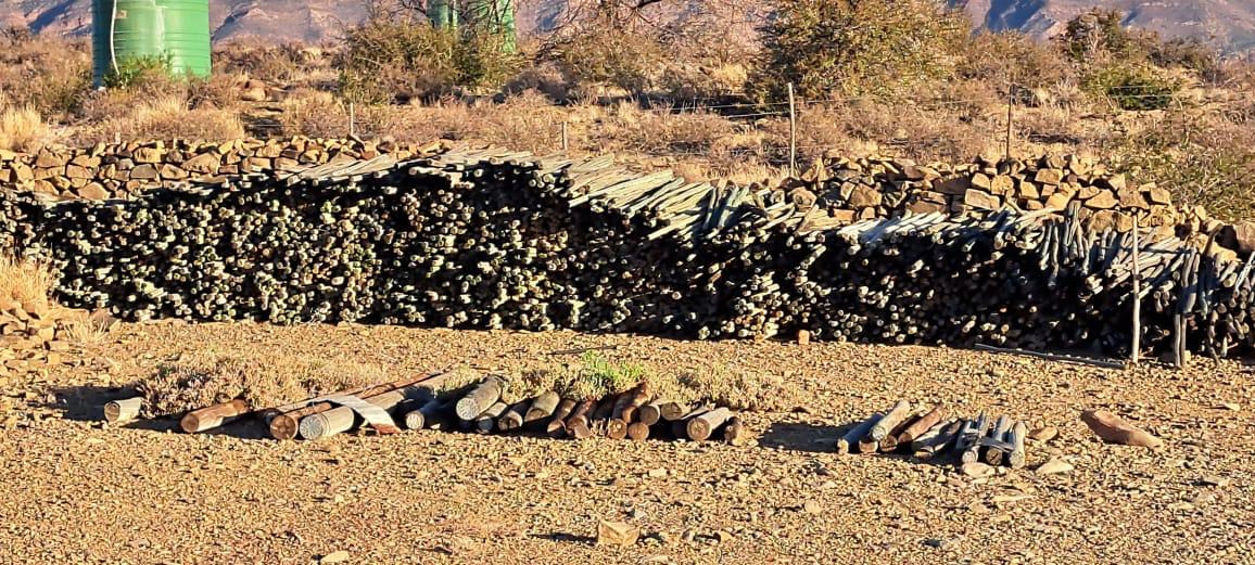 COMPOSITION -| 8 692 Ha of good grazing. 91 Types of grazing bushes and 17 types of grazing grass. 5 212 Ha comprises of natural pastures of ridges and plains in the dry river beds (non-perennial). The other 3 490 Ha of natural grazing is mountain land. Here is also 10 Ha of irrigation with permanent sprinklers from a borehole which delivers 27 000 l/hour. This 10 Ha is divided into 4 camps with water troughs for livestock.