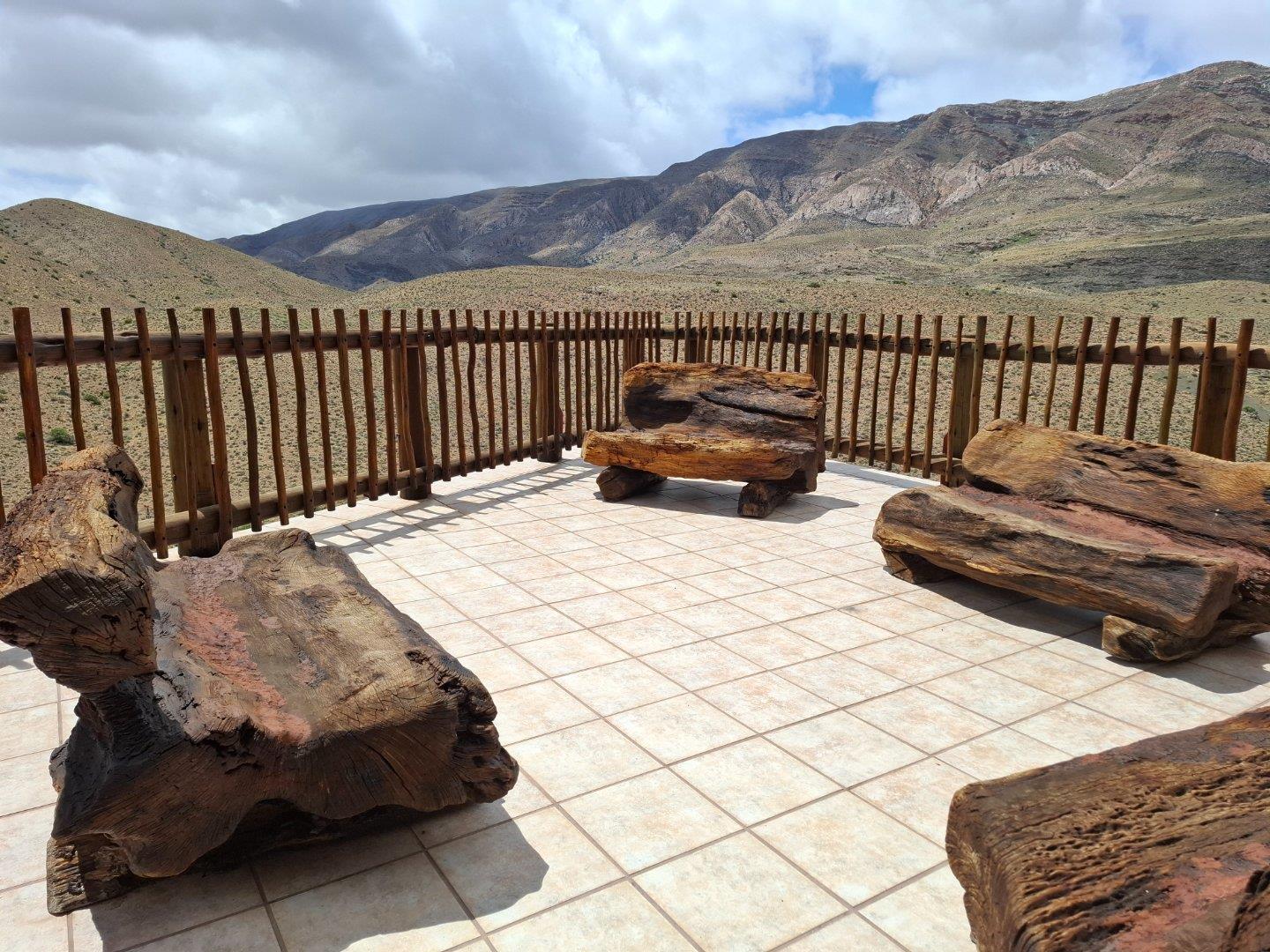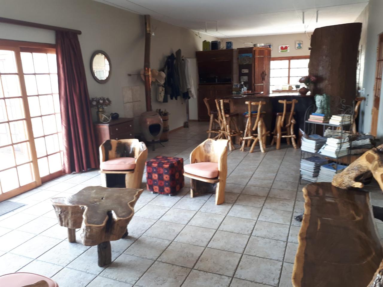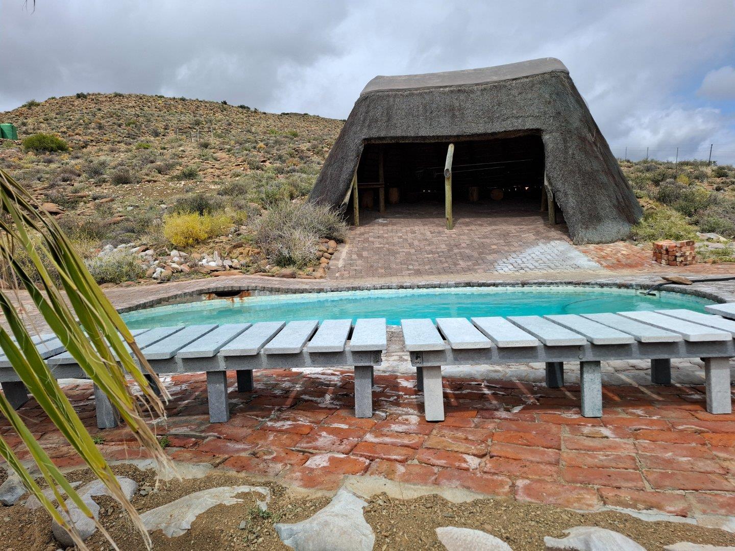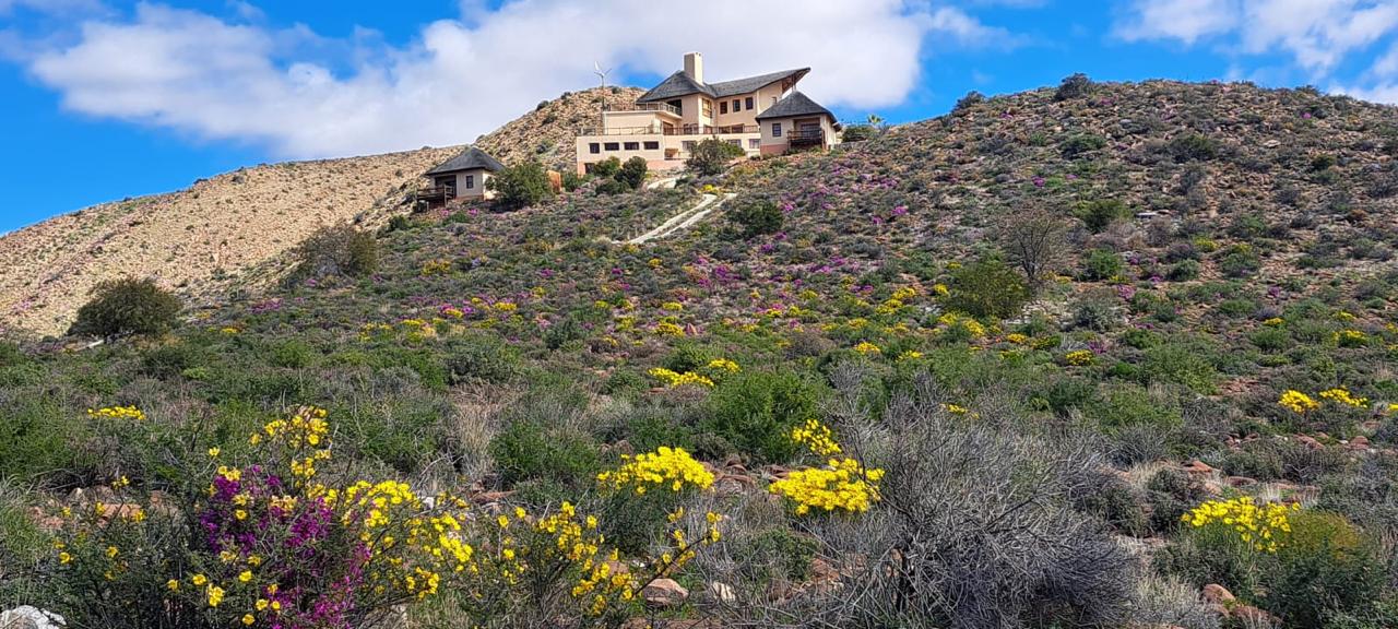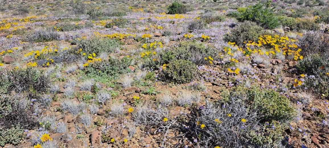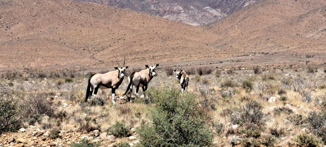 COMPOSITION -| 8 692 Ha of good grazing. 91 Types of grazing bushes and 17 types of grazing grass. 5 212 Ha comprises of natural pastures of ridges and plains in the dry river beds (non-perennial). The other 3 490 Ha of natural grazing is mountain land. Here is also 10 Ha of irrigation with permanent sprinklers from a borehole which delivers 27 000 l/hour. This 10 Ha is divided into 4 camps with water troughs for livestock.