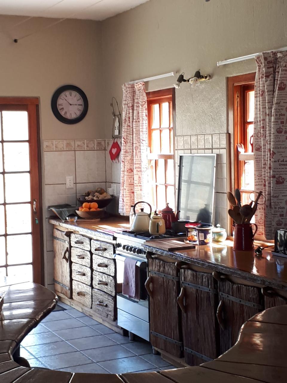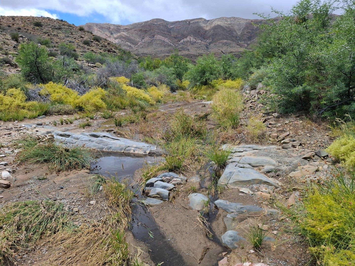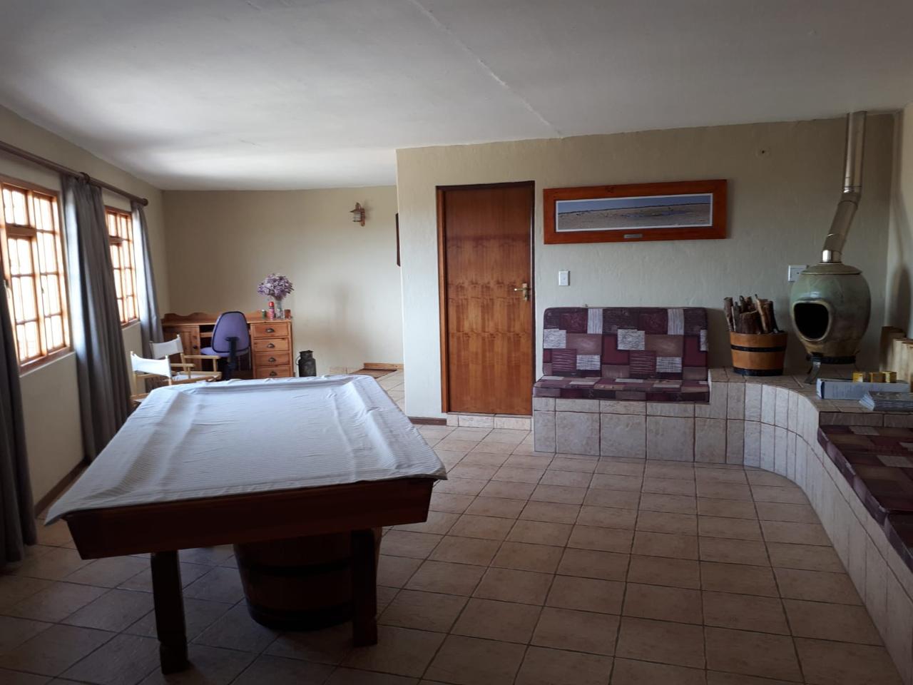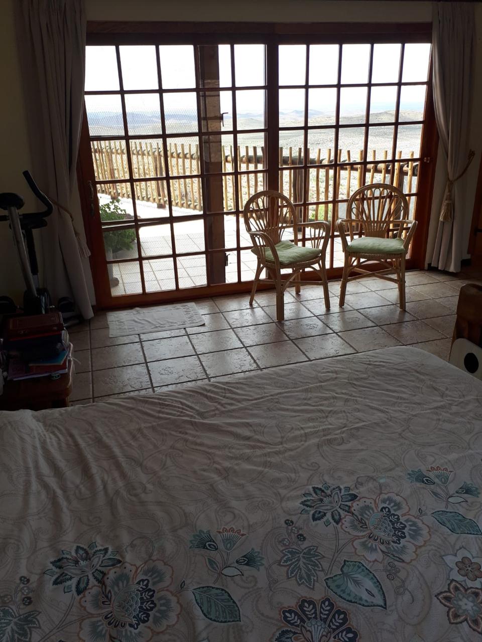 COMPOSITION -| 8 692 Ha of good grazing. 91 Types of grazing bushes and 17 types of grazing grass. 5 212 Ha comprises of natural pastures of ridges and plains in the dry river beds (non-perennial). The other 3 490 Ha of natural grazing is mountain land. Here is also 10 Ha of irrigation with permanent sprinklers from a borehole which delivers 27 000 l/hour. This 10 Ha is divided into 4 camps with water troughs for livestock.