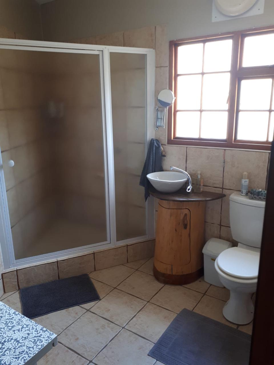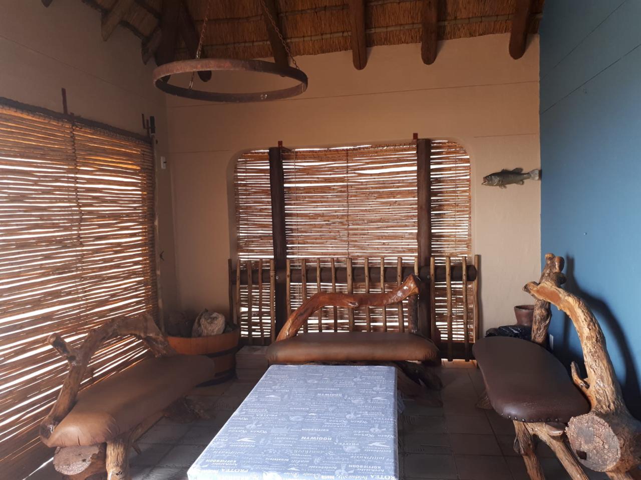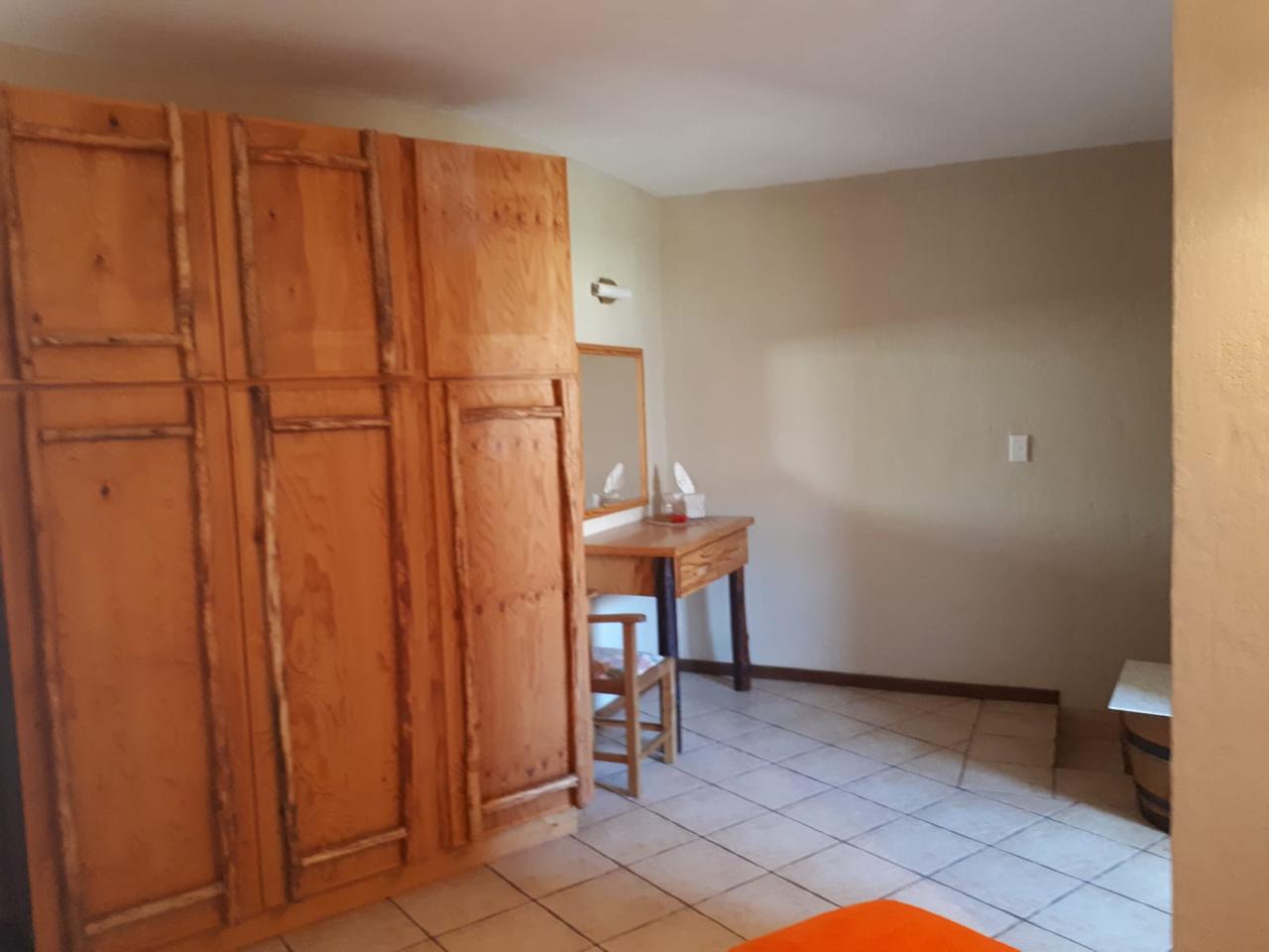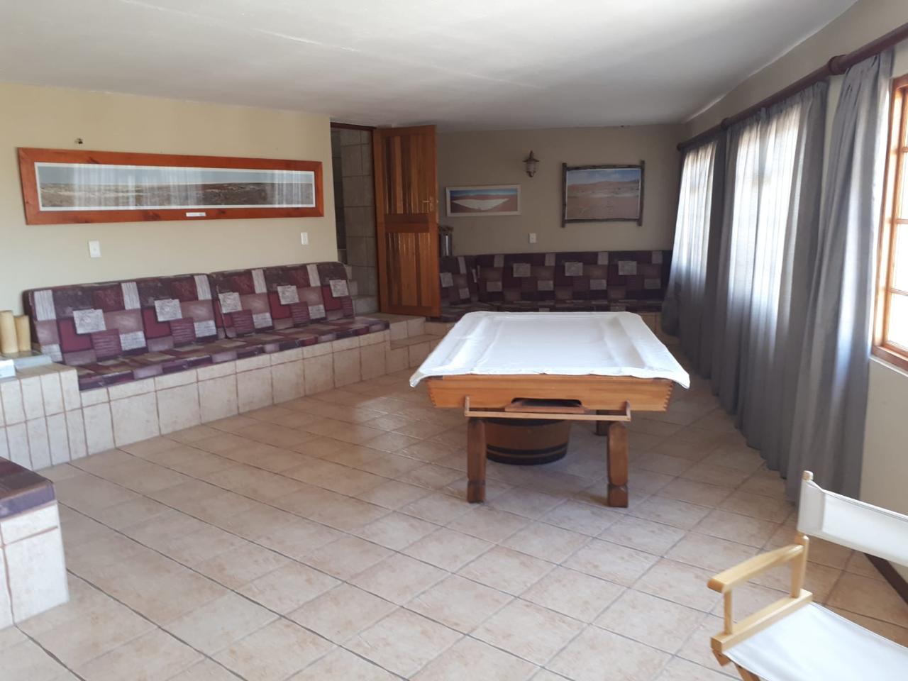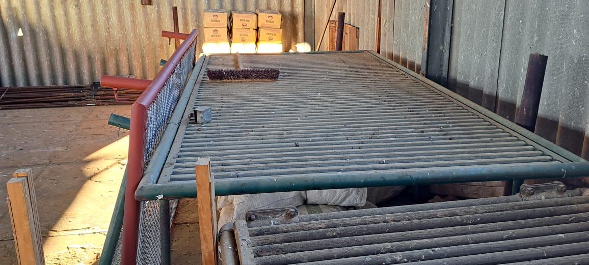 COMPOSITION -| 8 692 Ha of good grazing. 91 Types of grazing bushes and 17 types of grazing grass. 5 212 Ha comprises of natural pastures of ridges and plains in the dry river beds (non-perennial). The other 3 490 Ha of natural grazing is mountain land. Here is also 10 Ha of irrigation with permanent sprinklers from a borehole which delivers 27 000 l/hour. This 10 Ha is divided into 4 camps with water troughs for livestock.