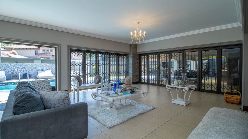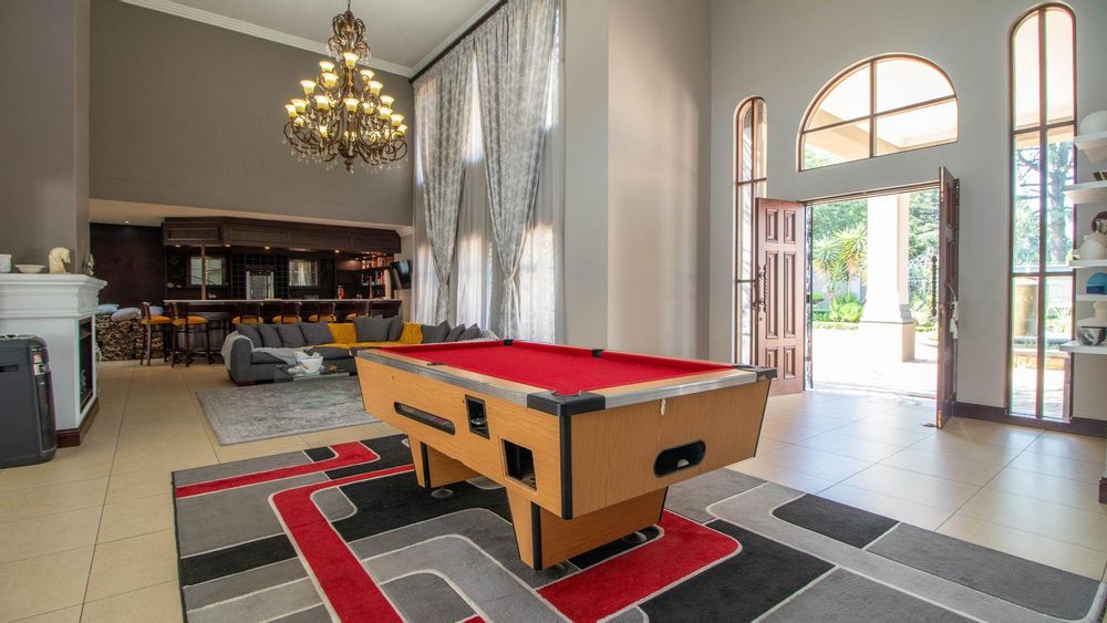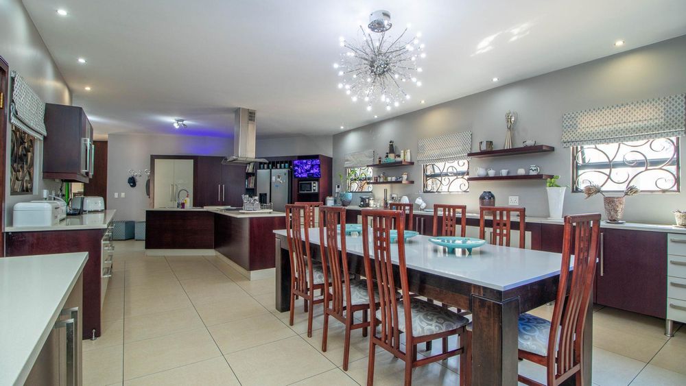 Welcome to this exquisite 5-bedroom, 5-bathroom luxury residence, perfectly crafted for discerning families seeking elegance and comfort. From the moment you step through the impressive double-volume entrance, you'll be captivated by the expansive open-plan living spaces, designed to accommodate both intimate gatherings and grand celebrations. The home features gas fireplaces that add warmth and ambiance, while the patio, complete with a built-in pizza oven, rotisserie, and braai, offers a breathtaking view of the sparkling pool.
