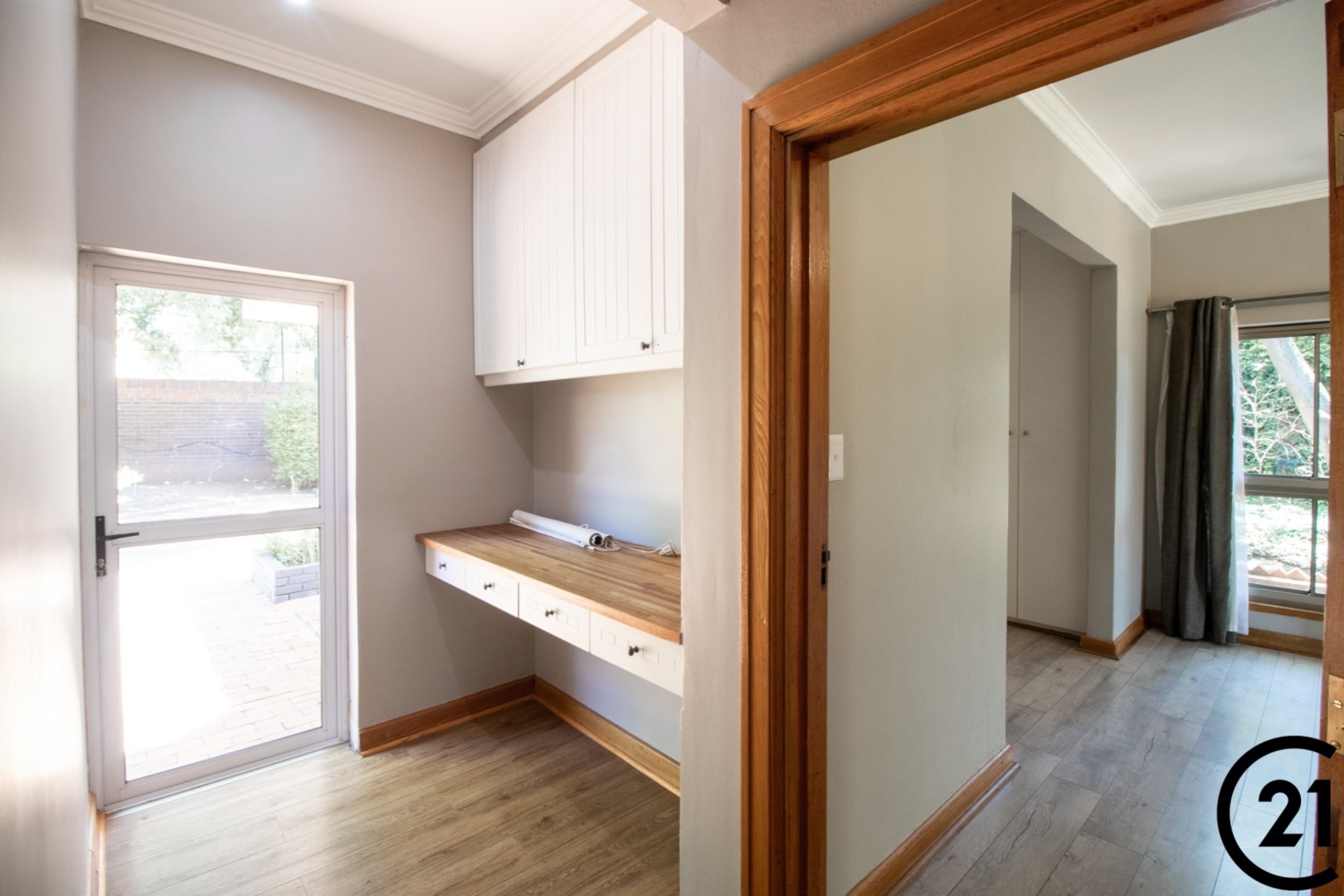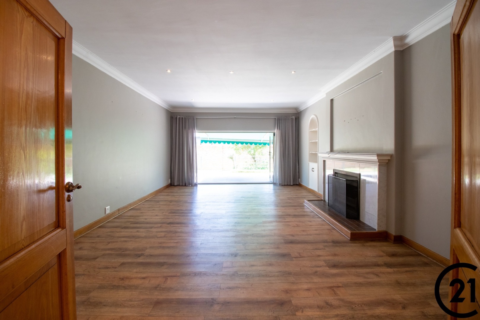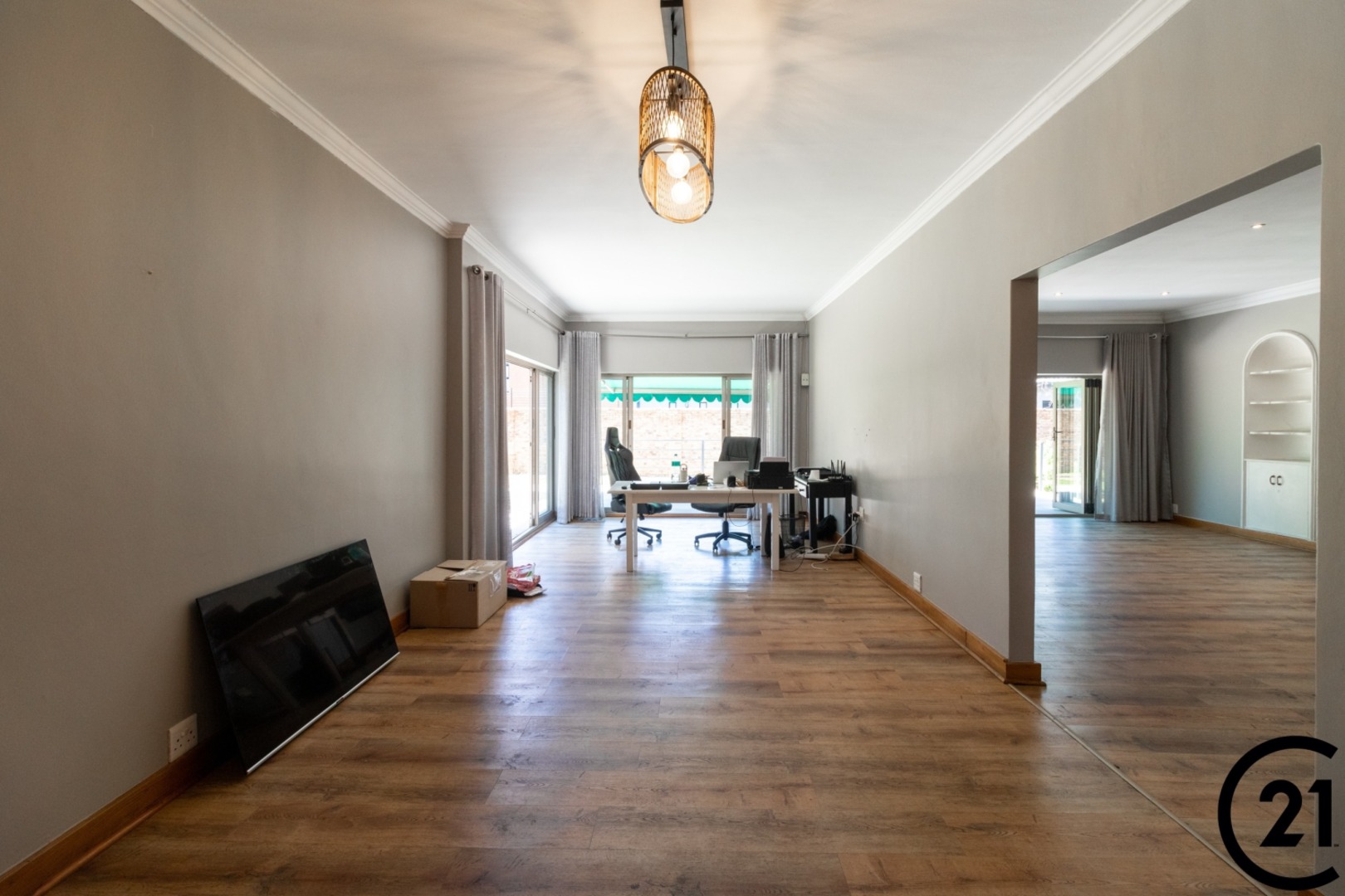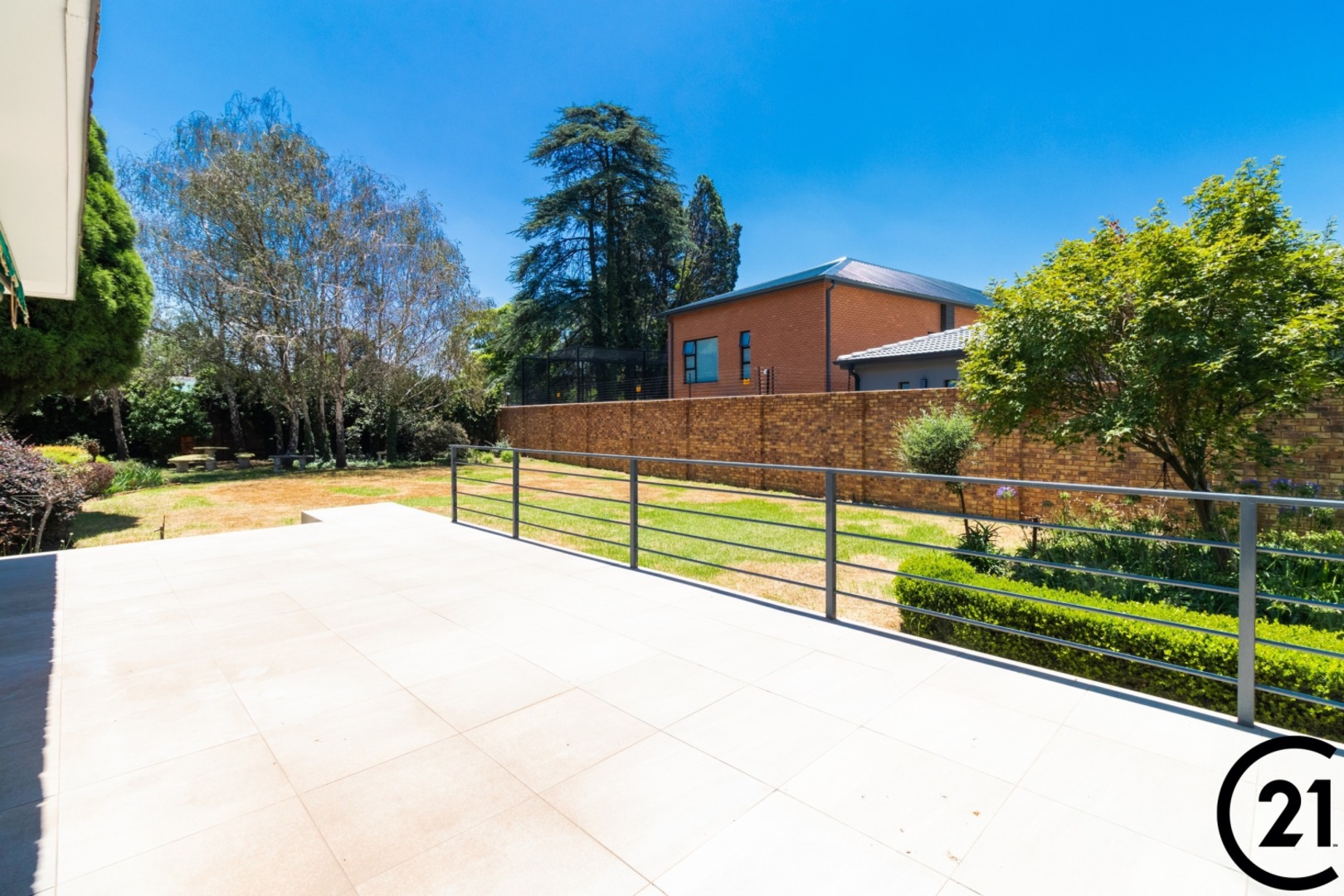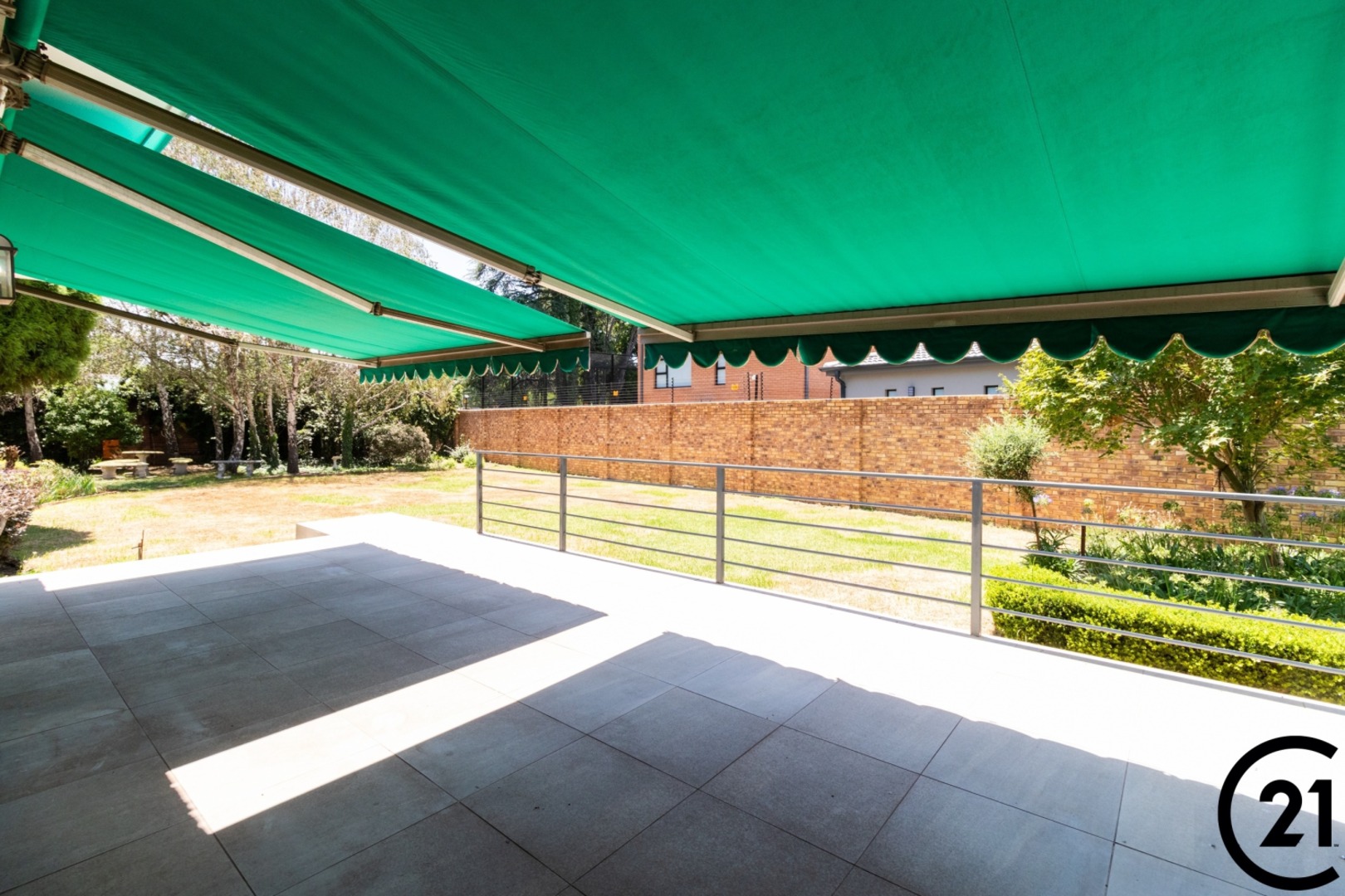 Step through the spacious entrance hall into a formal lounge and dining area, perfect for entertaining. The sleek kitchen, complete with a separate scullery, offers excellent storage and functionality. A cozy TV room flows out to a covered patio overlooking the beautifully landscaped garden, supported by a borehole for sustainable watering.