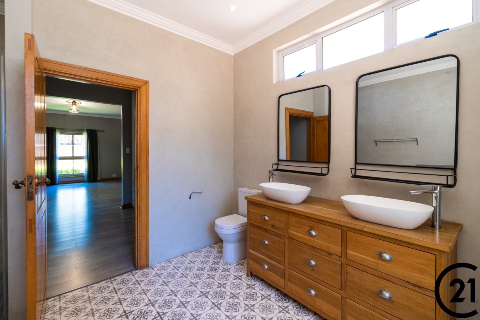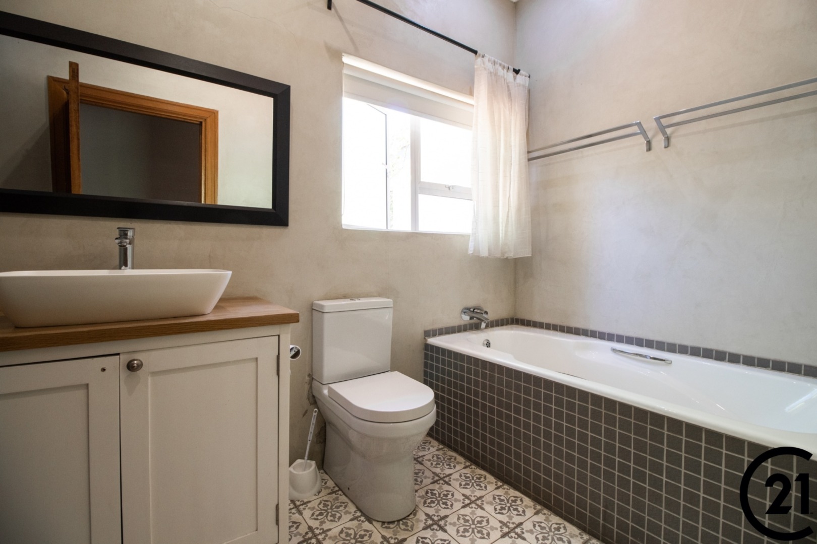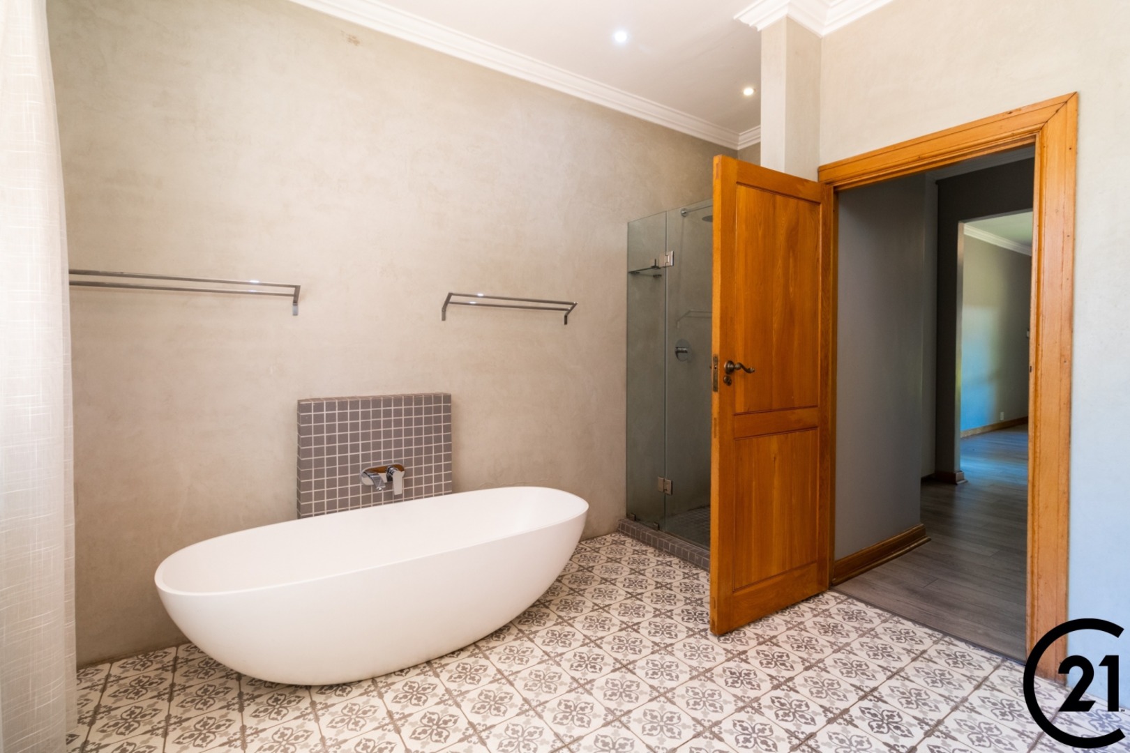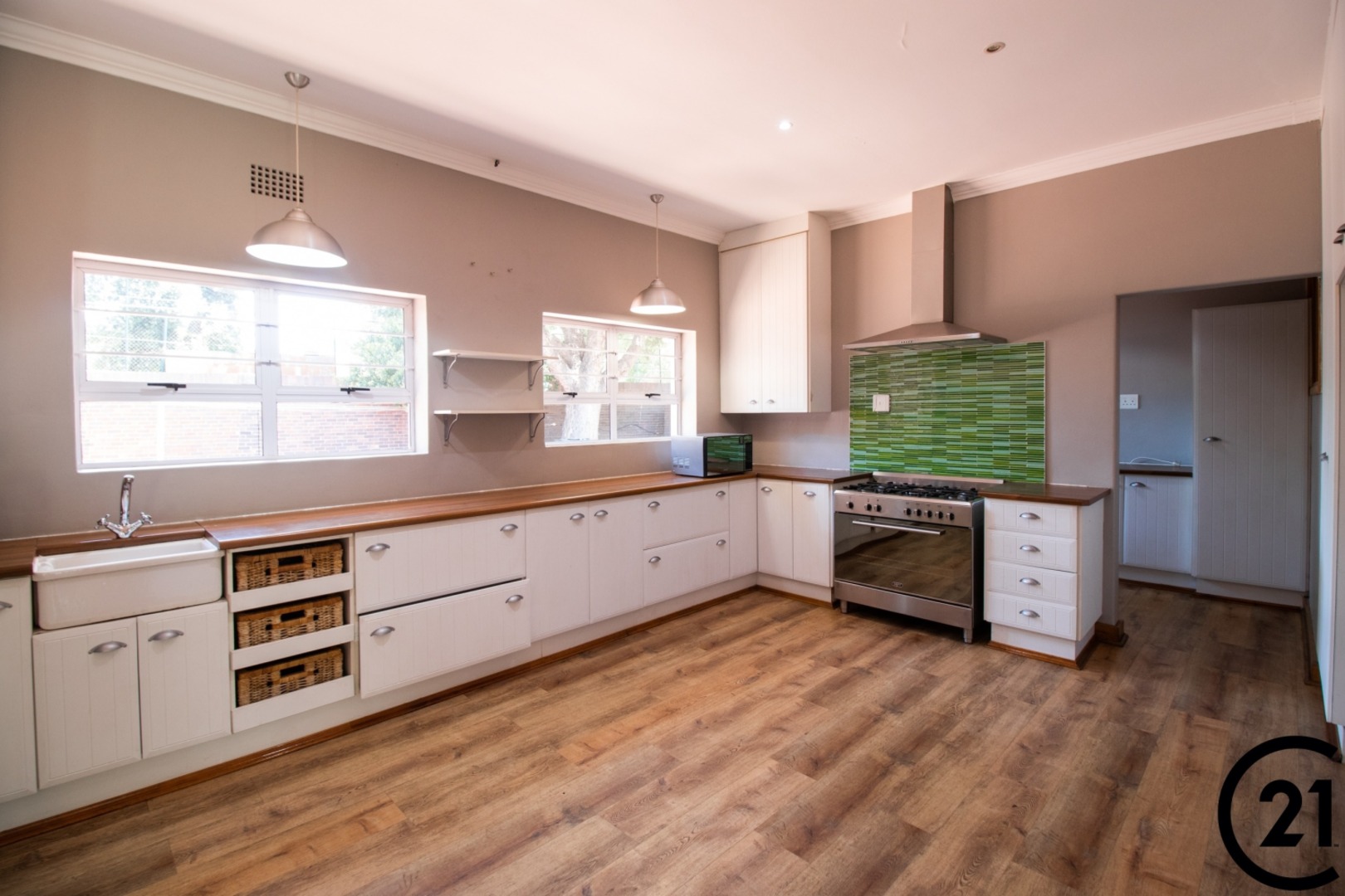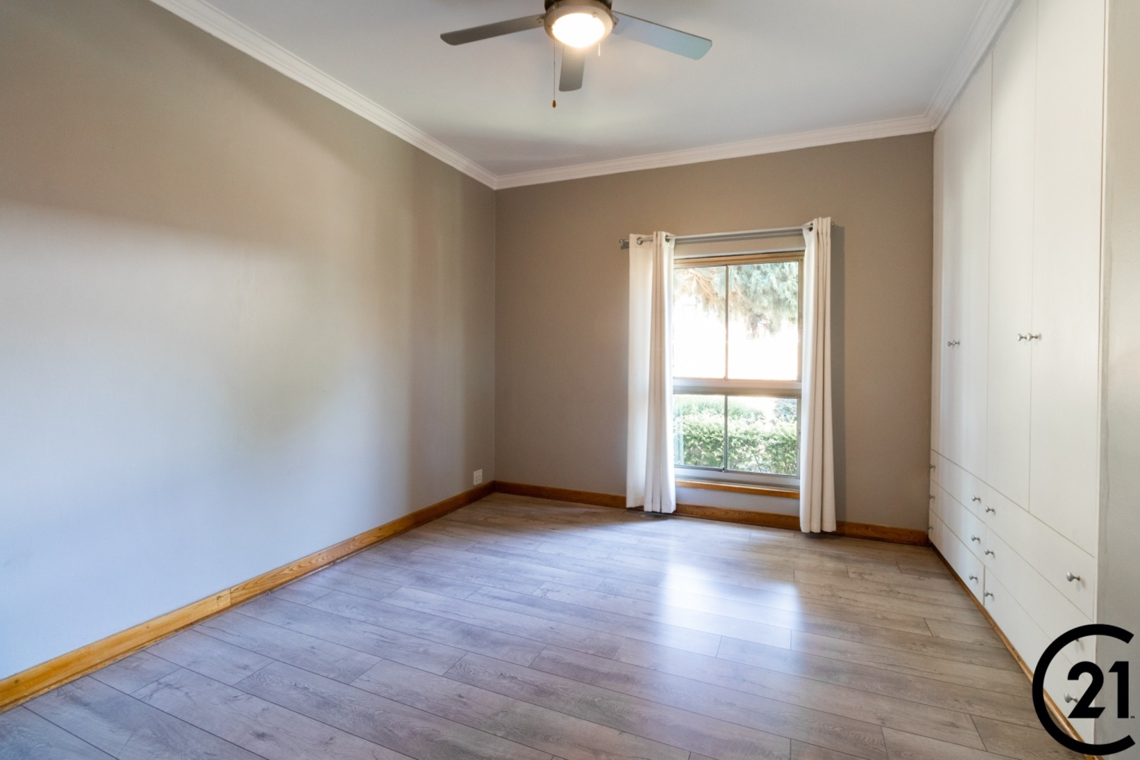 Step through the spacious entrance hall into a formal lounge and dining area, perfect for entertaining. The sleek kitchen, complete with a separate scullery, offers excellent storage and functionality. A cozy TV room flows out to a covered patio overlooking the beautifully landscaped garden, supported by a borehole for sustainable watering.