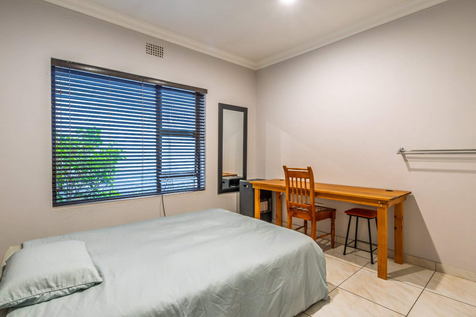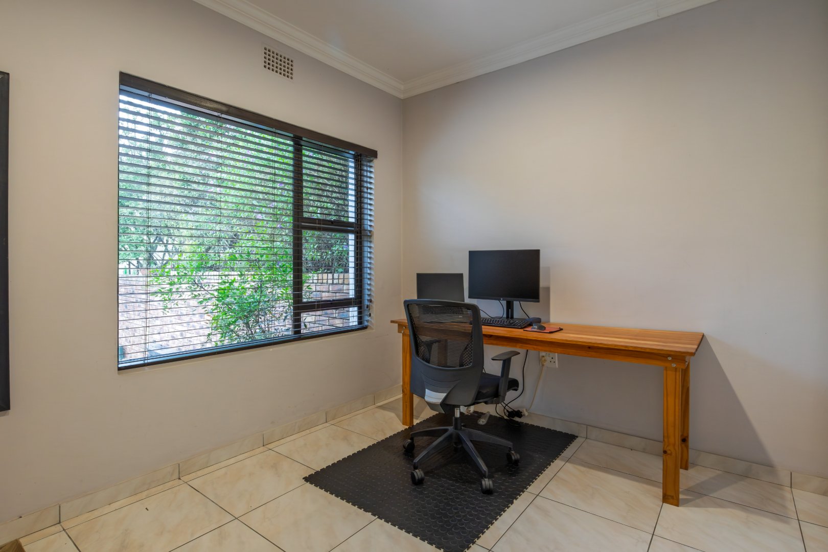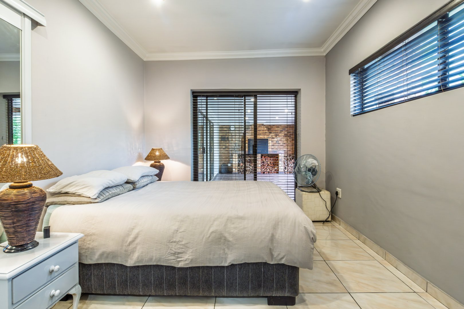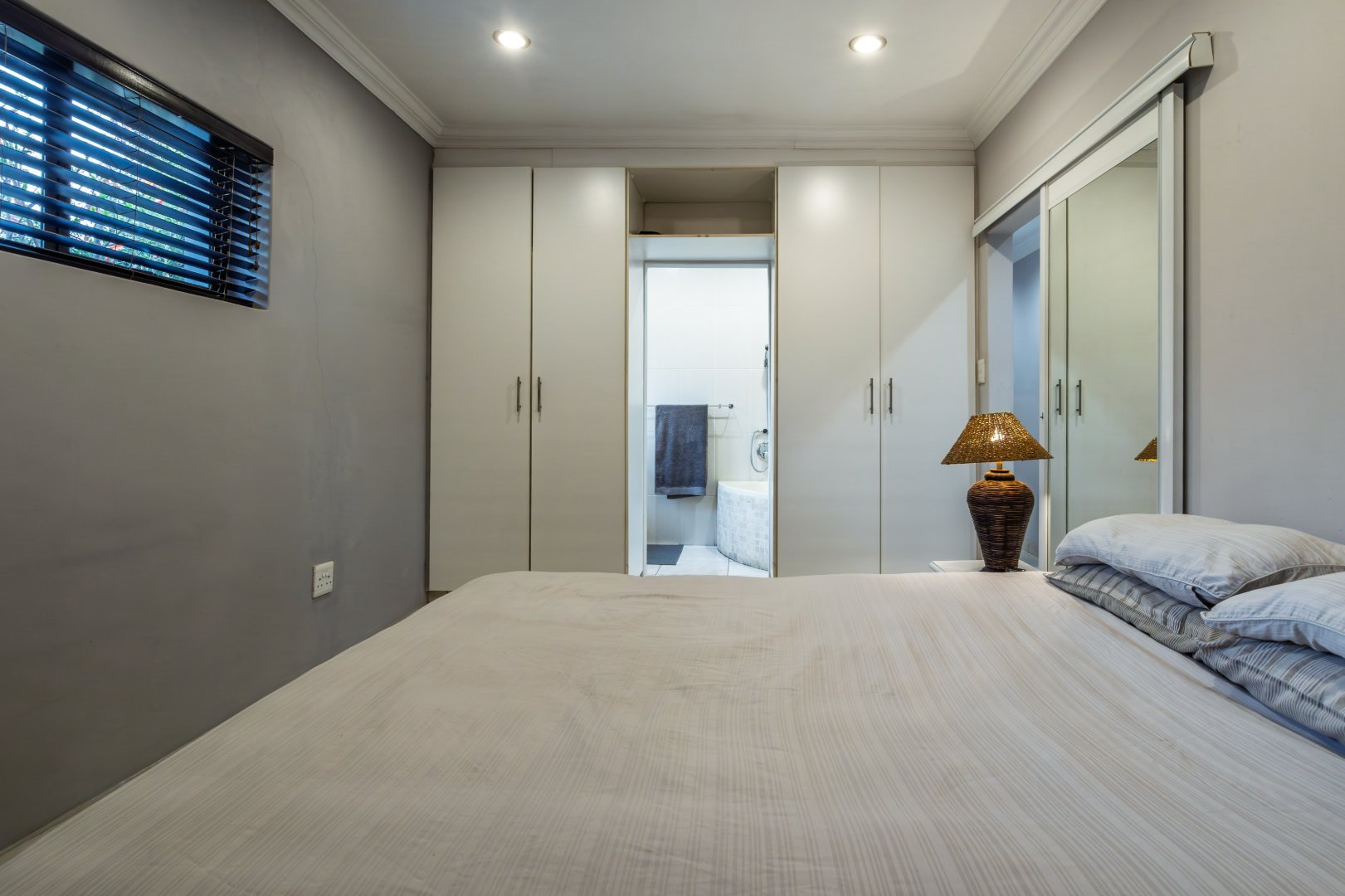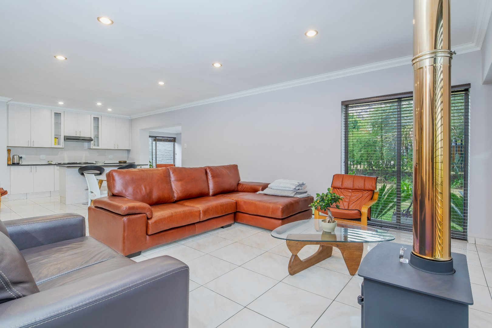 Aluminium window frames throughout, complete with fitted blinds.