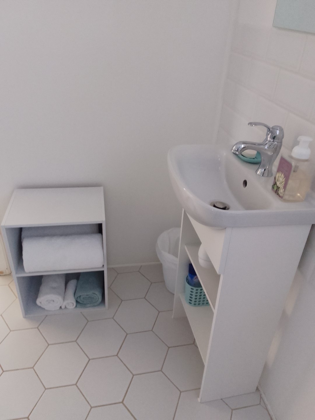 2 one-bedroom log homes, each with its own large bathroom (shower only) and open-plan kitchen-lounge.