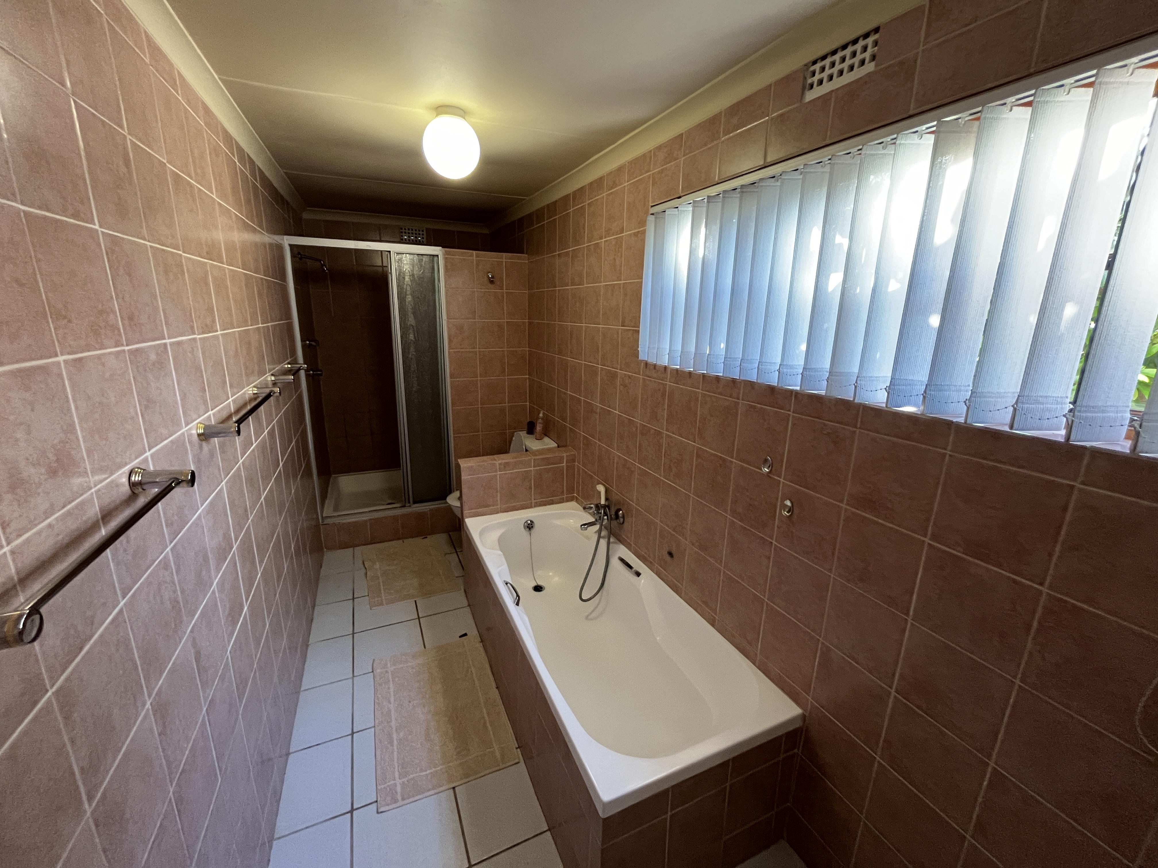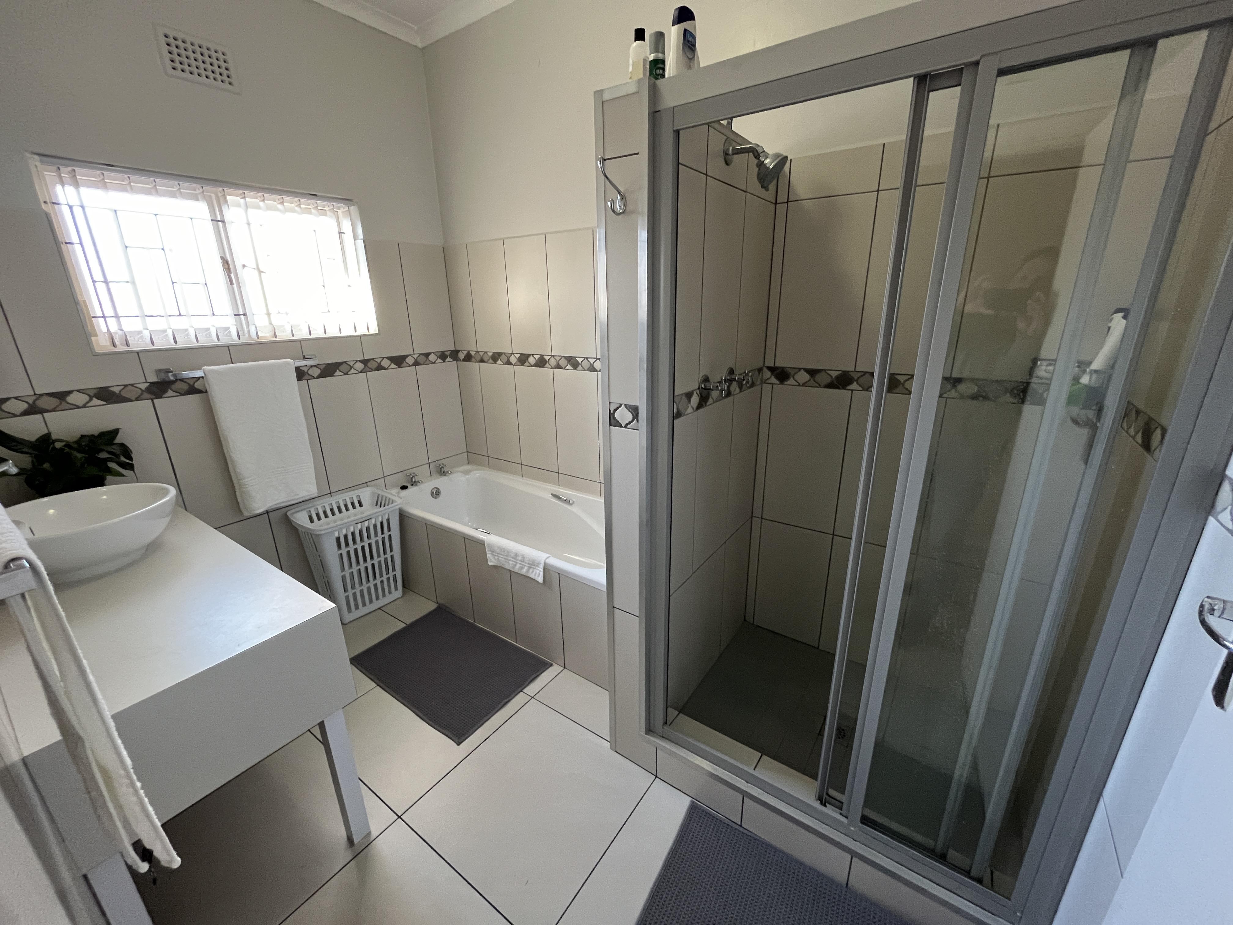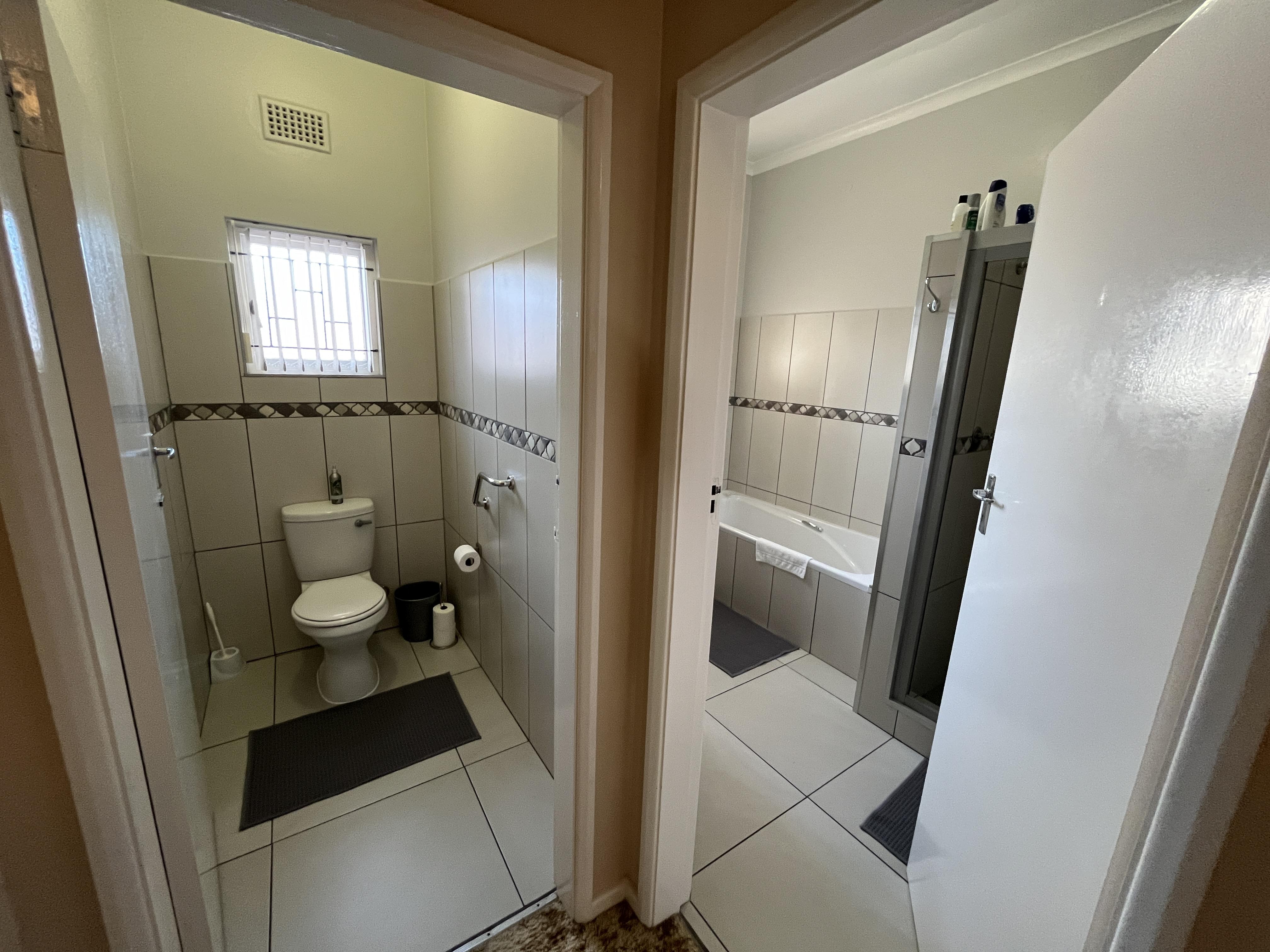 This property offers 4 bedrooms and two and a half bathrooms in the main house as well as two braai areas and a lovely , well established front garden as well as a big back garden with manicured lawns.