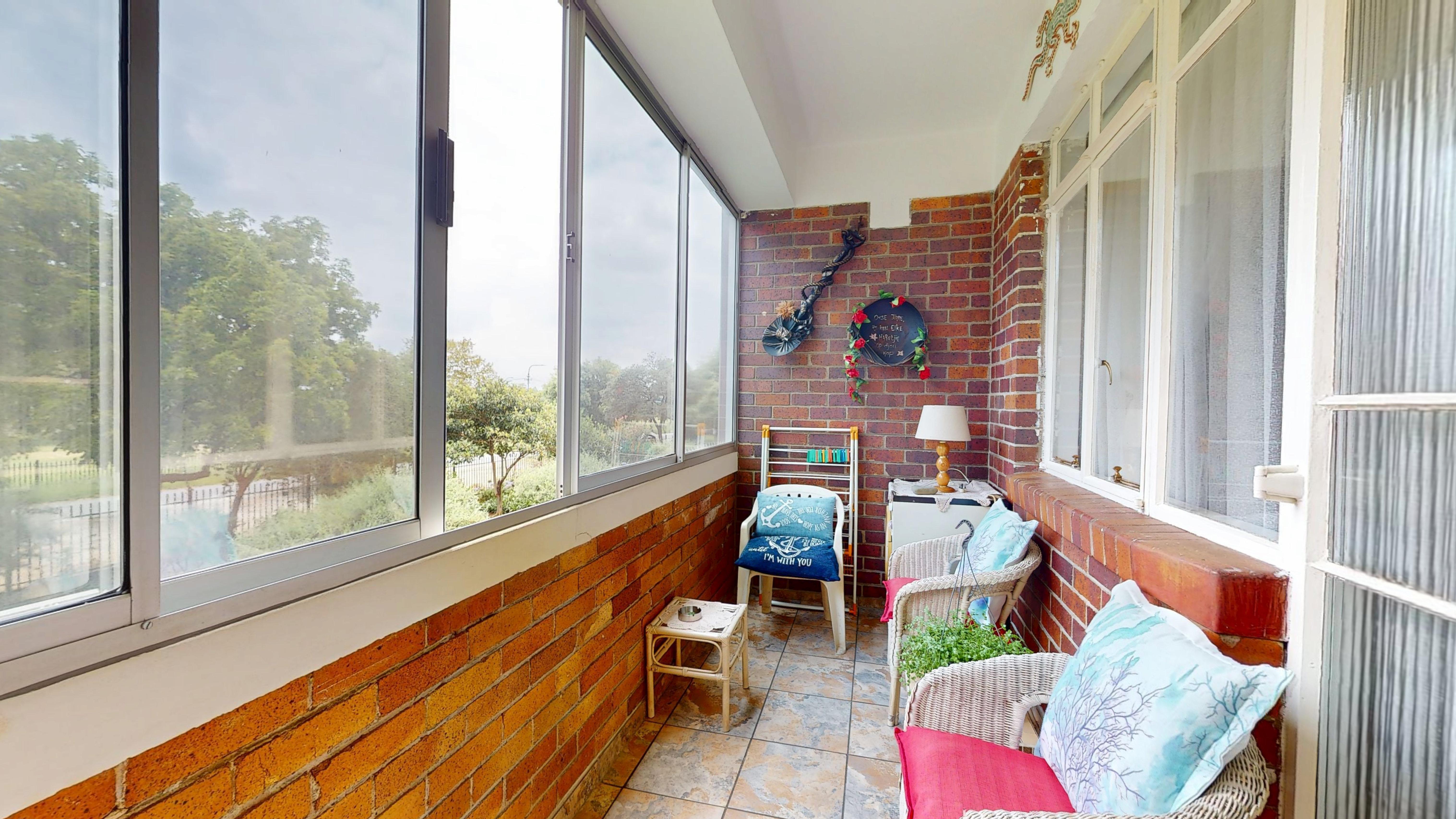 The generously sized, north-facing lounge is filled with natural light and opens onto an expansive enclosed balcony—perfect as a sunroom or office space.
