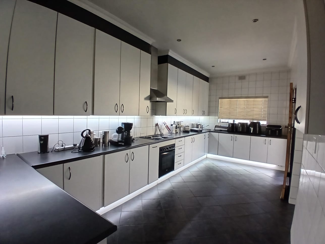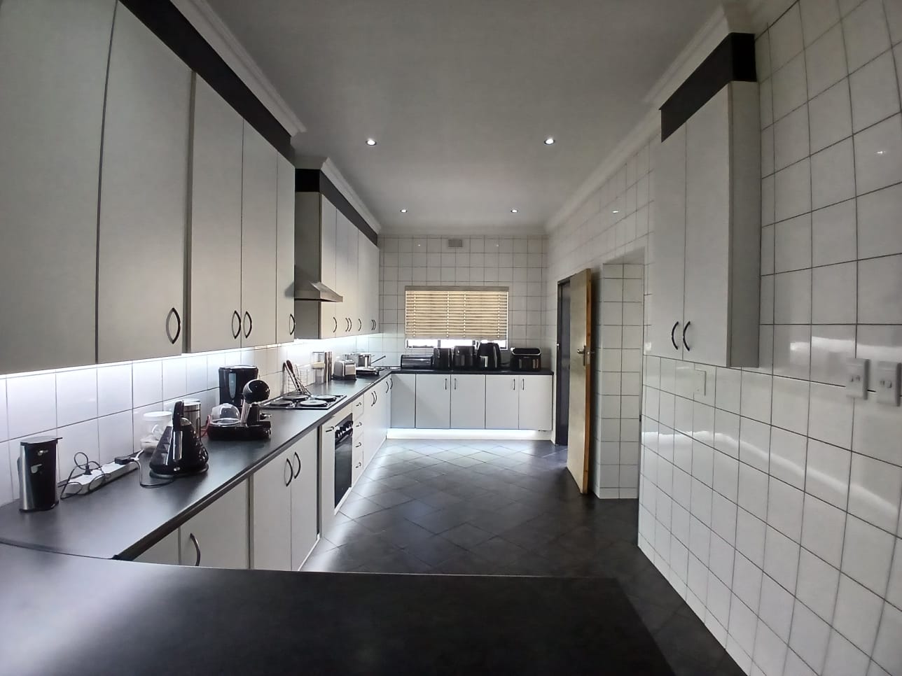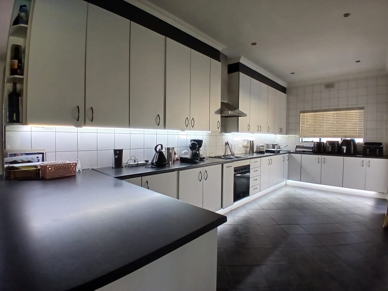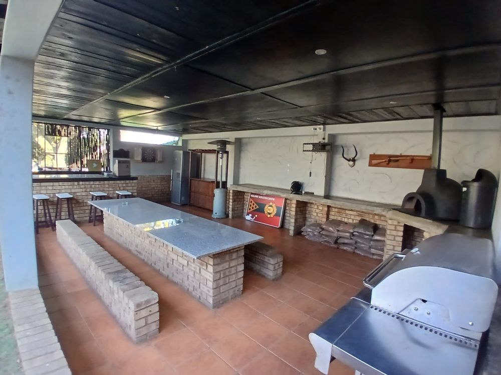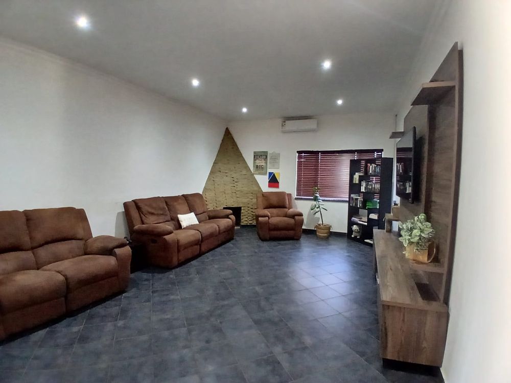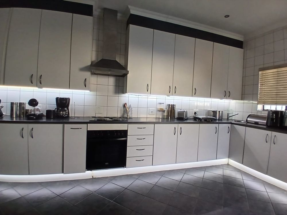 The lounge has a corner fireplace and offers massive space. The stunning kitchen is fitted with stylish white finishings under downlights. There is a separate scullery with pace for all other larger appliances. The kitchen offers ample storage, quality countertops, and modern finishes—ideal for family meals or hosting guests.