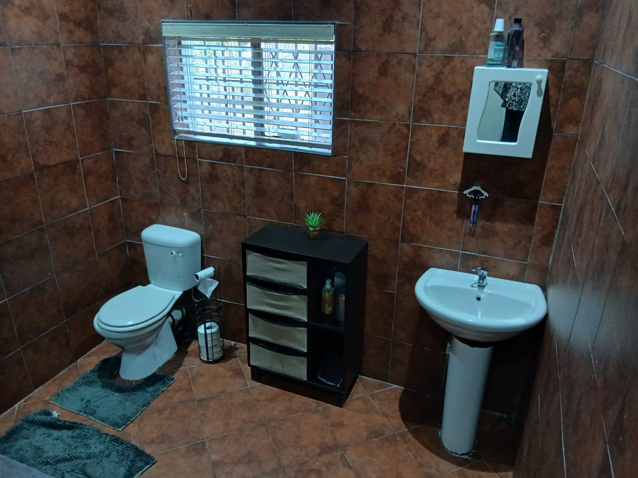 The cottage has a large lounge, a bedroom with ample space for a king size bed, dresser and desk. The step down bathroom offer a shower, toilet and basin. There is no kitchen, however there is a space for a kitchenette that you can put a fridge, and a microwave and other