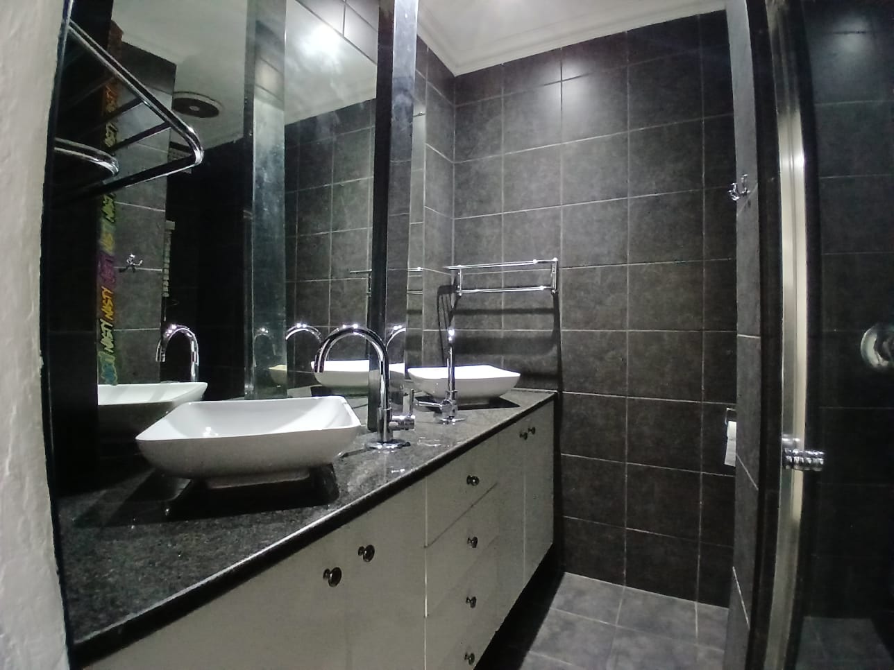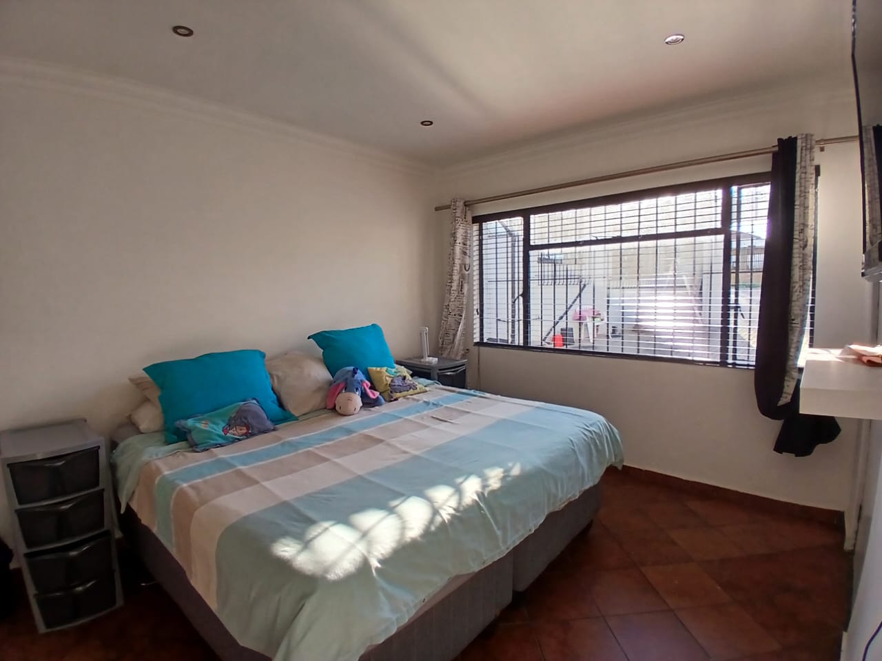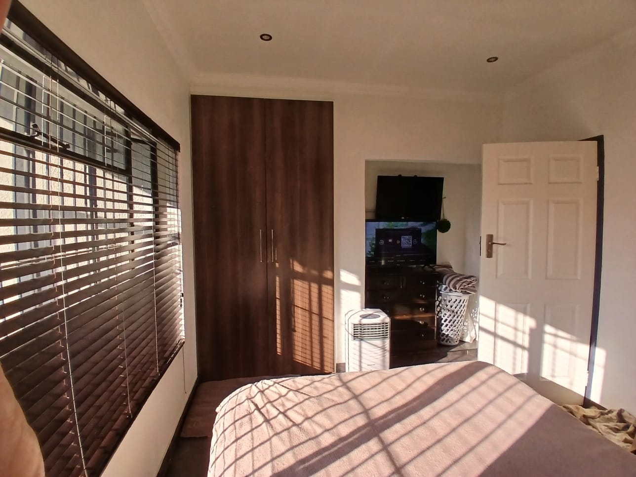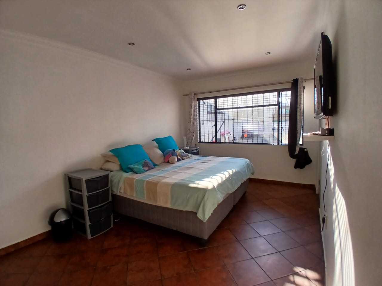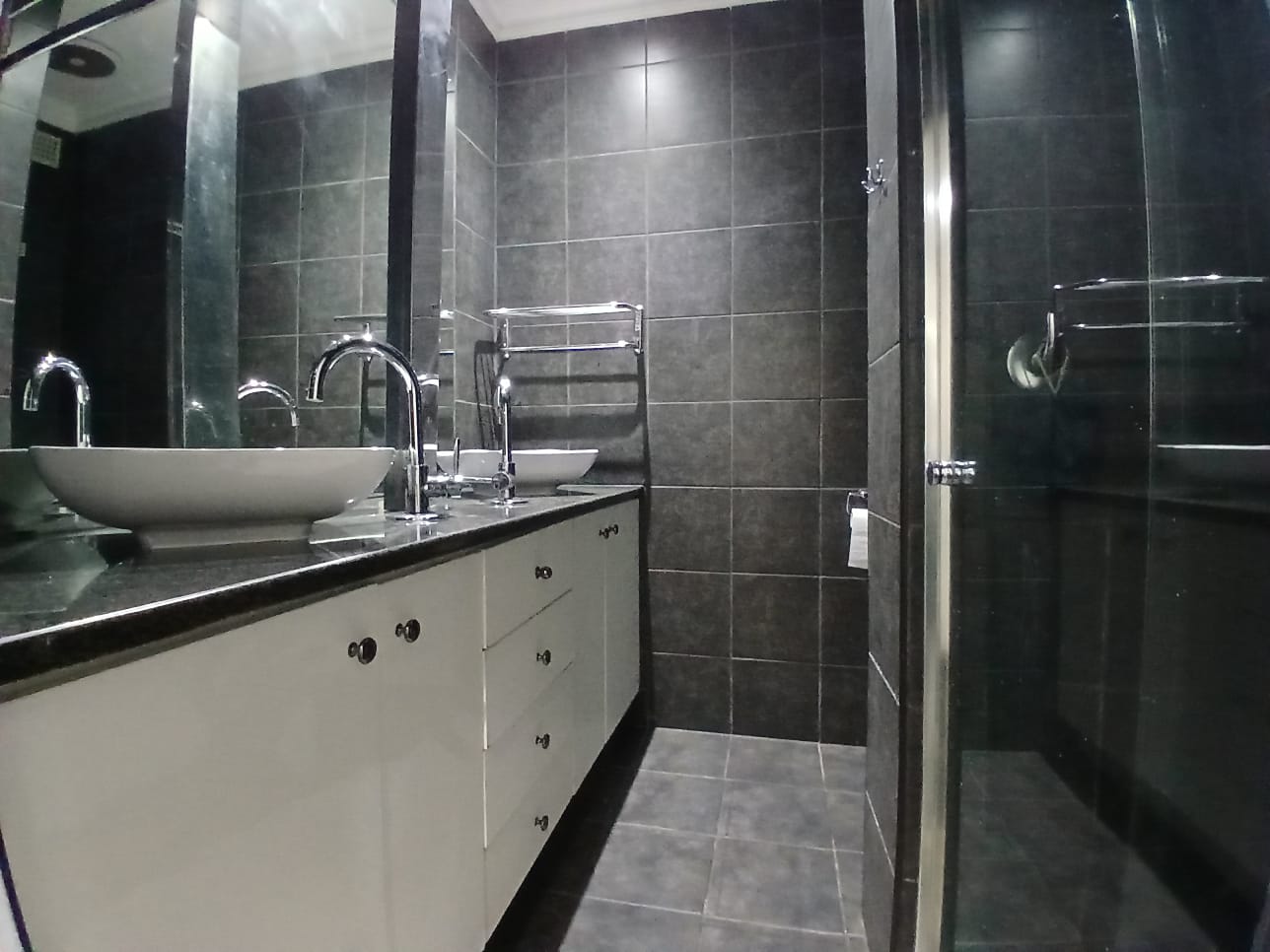 The main home features four generously sized bedrooms with built-in cupboards, natural light, and garden views. Two bedrooms include modern en-suite bathrooms for privacy. One has a bath and the other a shower. The third bathroom has a double shower. All are elegantly designed with quality finishes.