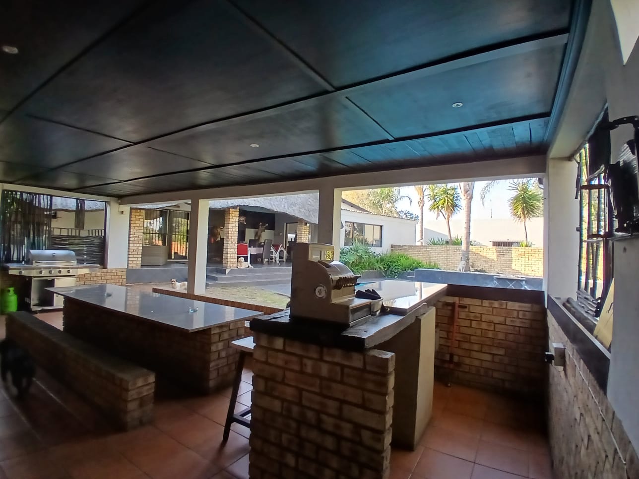 Covered entertainment area redefines out door living - with a view of the pool, granite tops, seating for 12 or more people and much much more - your party nights turn into mornings and you will witness spectacular sun rises.