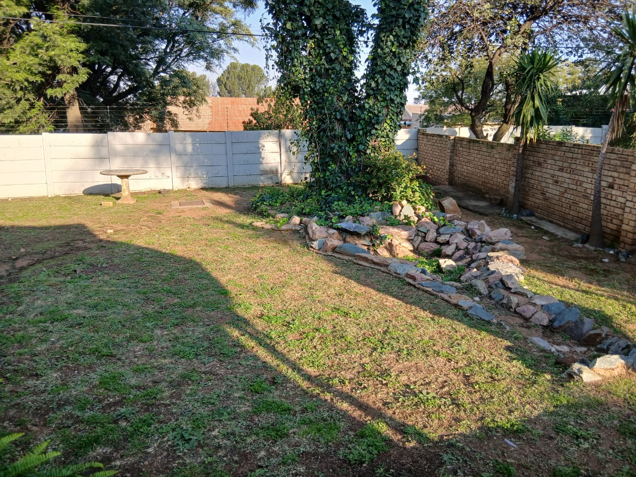 Expansive lawn and mature gardens
