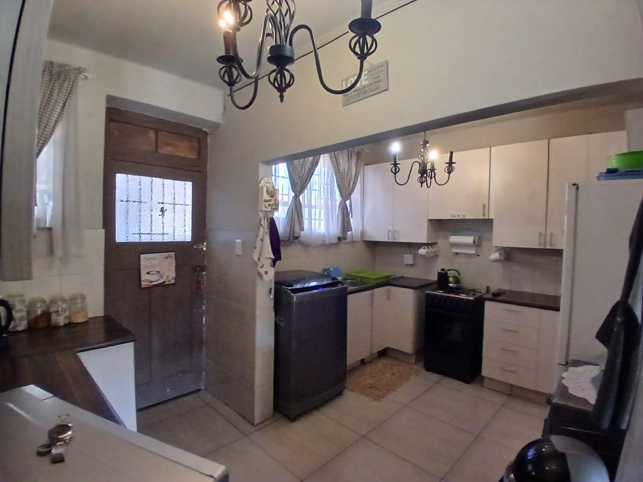 Stunning Kitchen: Modern fitted cupboards and dedicated space for large appliances.