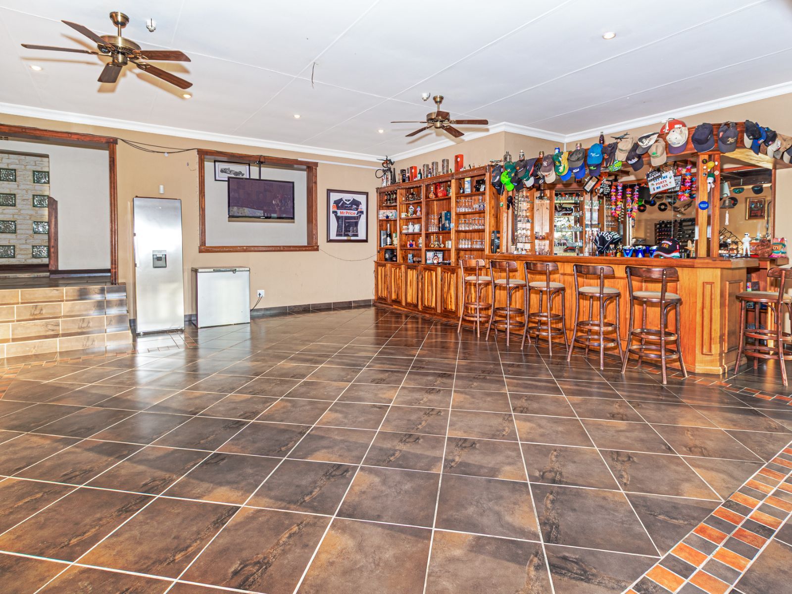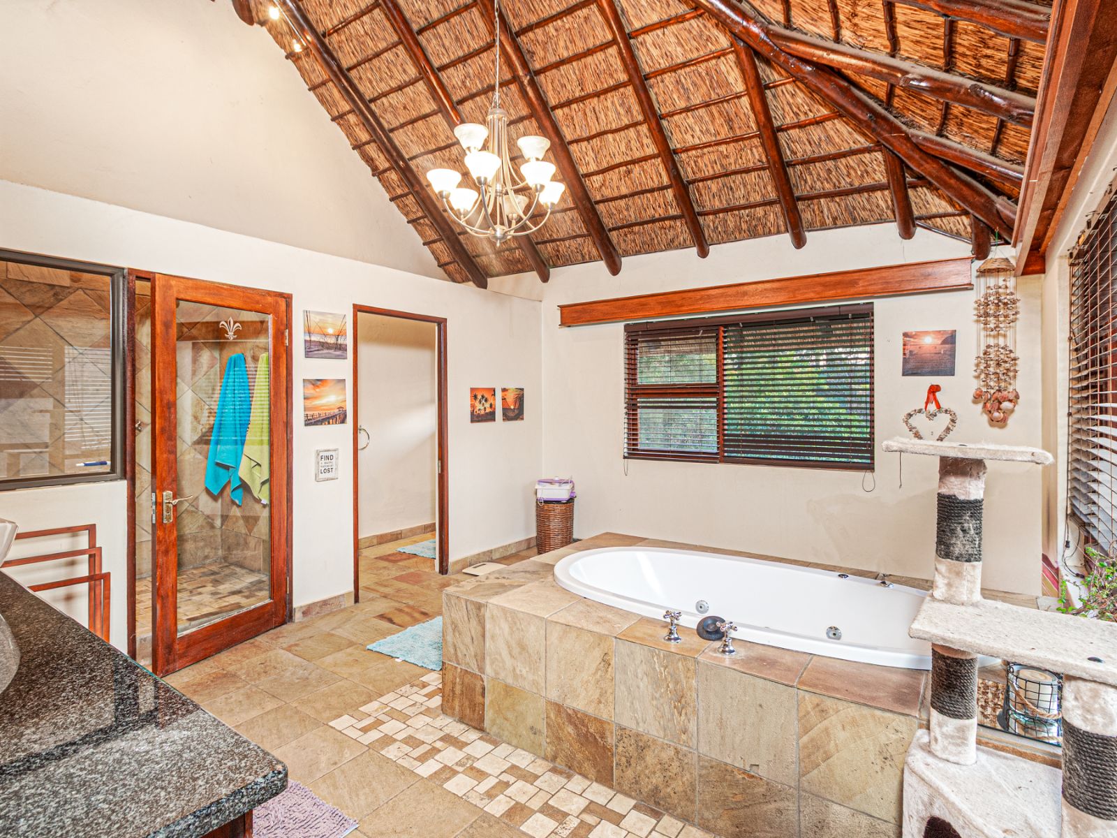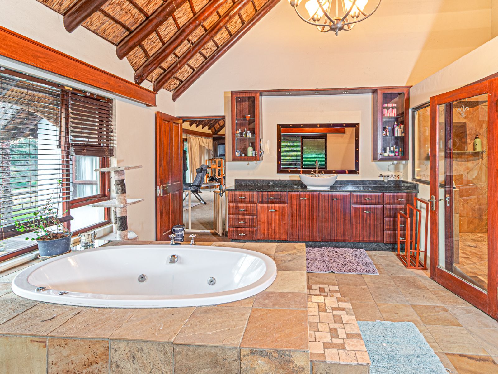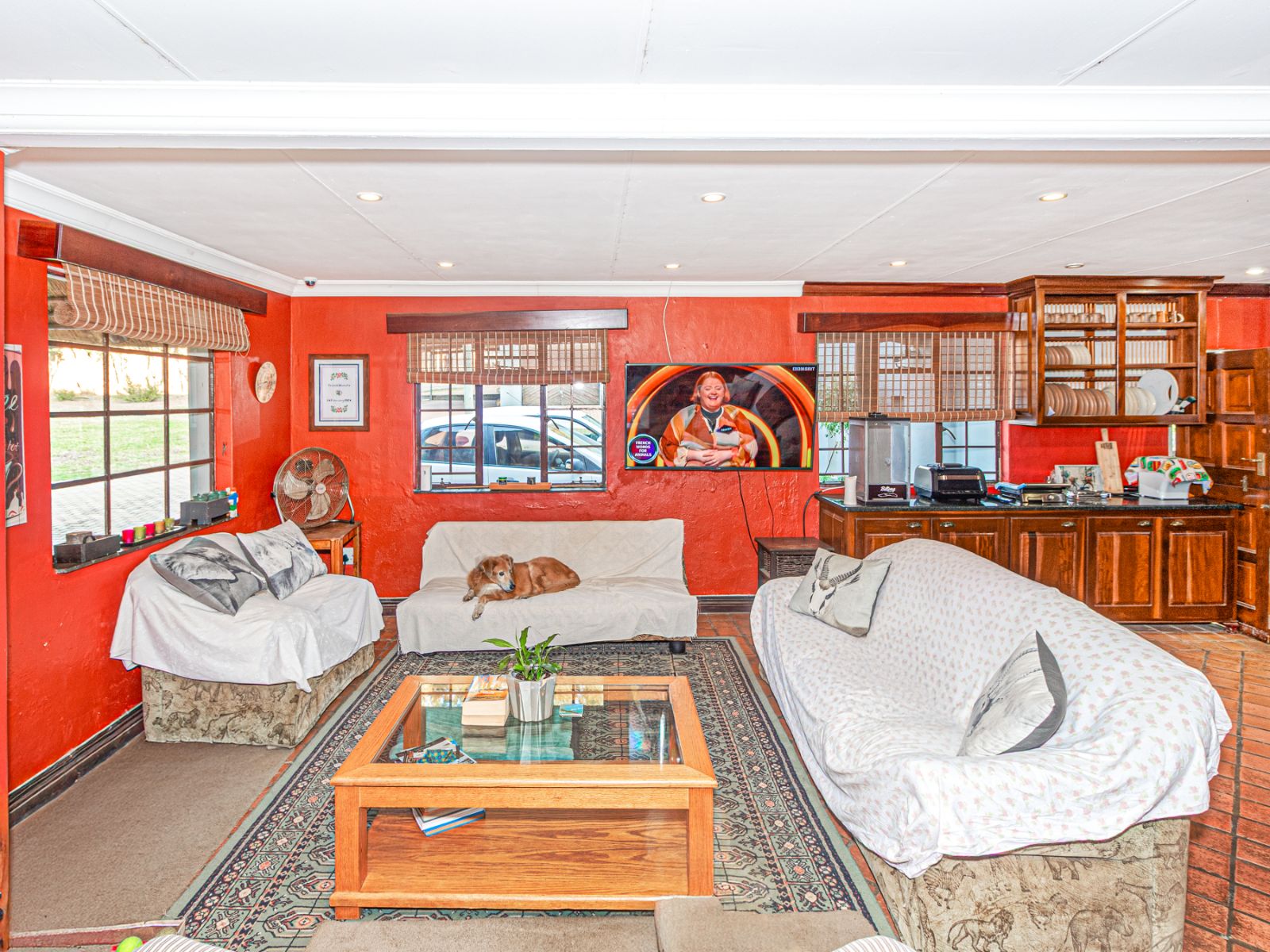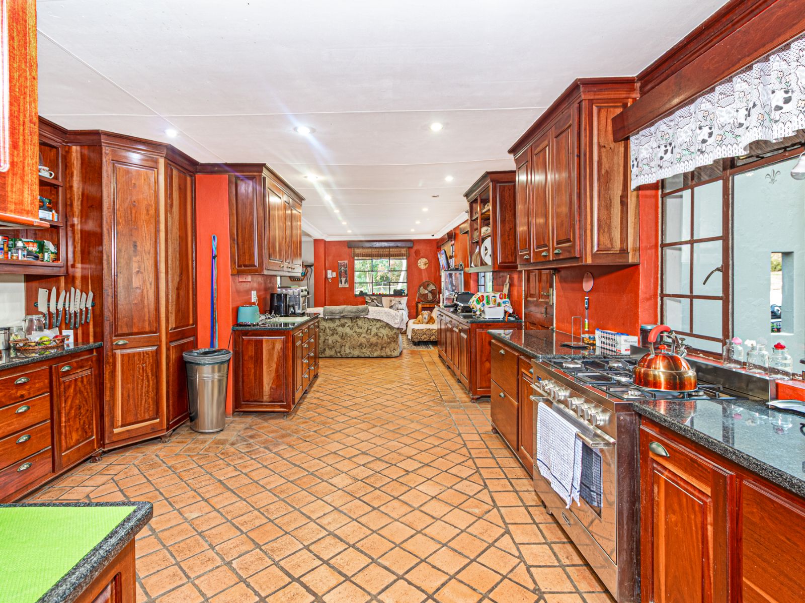Large open spaces, with your dining room, billiard pool table which remains, opens up with double glazed aluminum sliding doors onto the lush garden with pool and koi pond.
