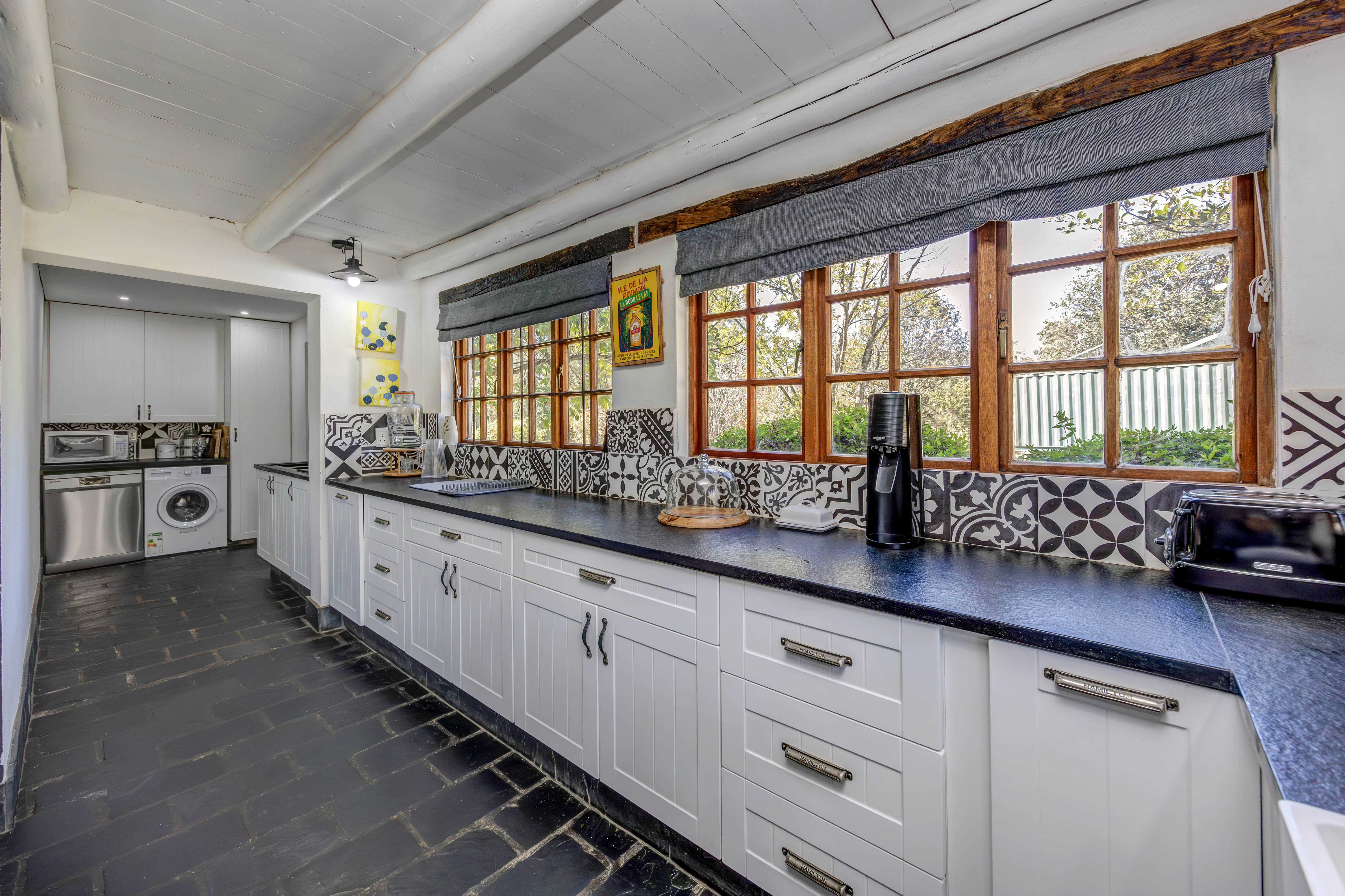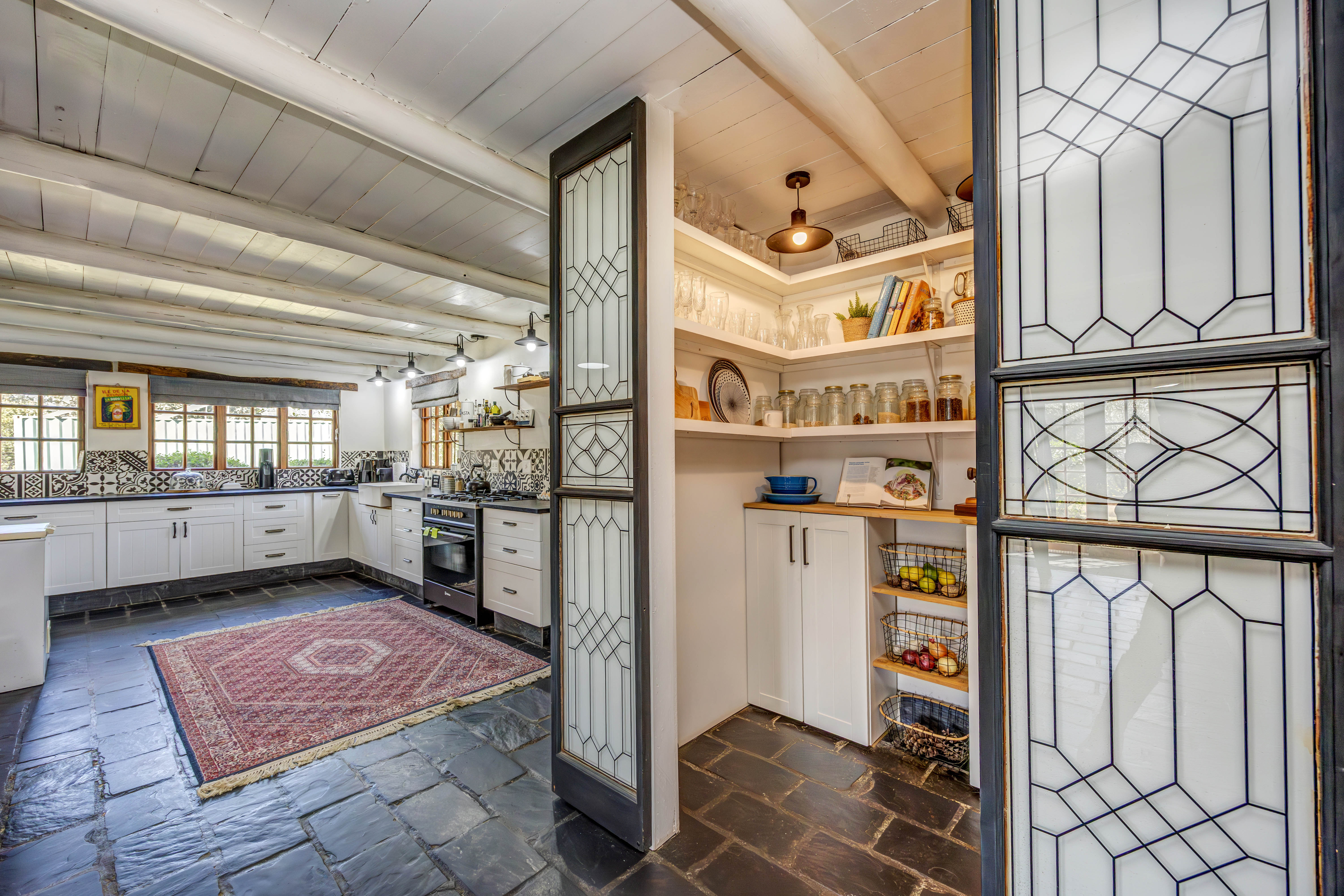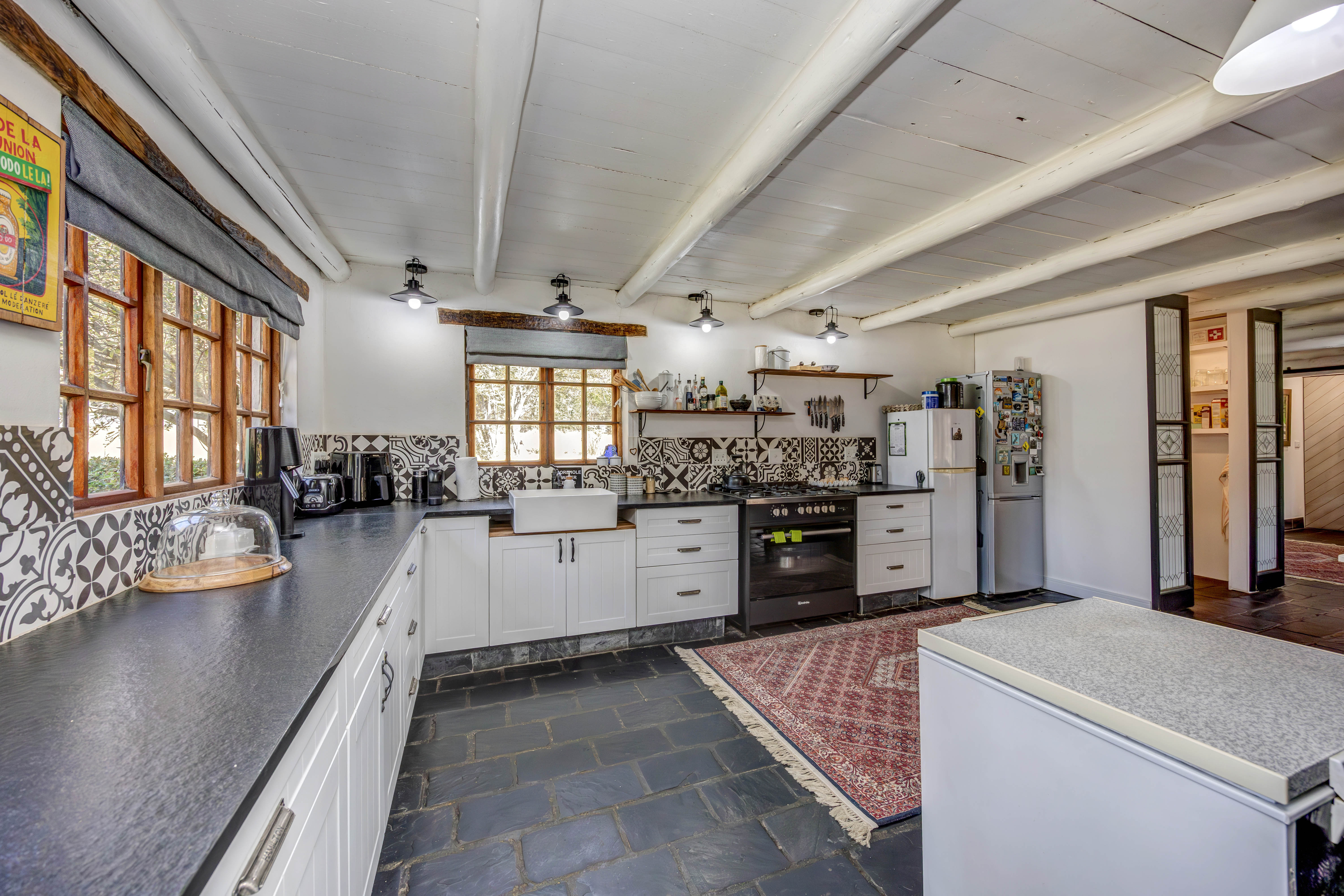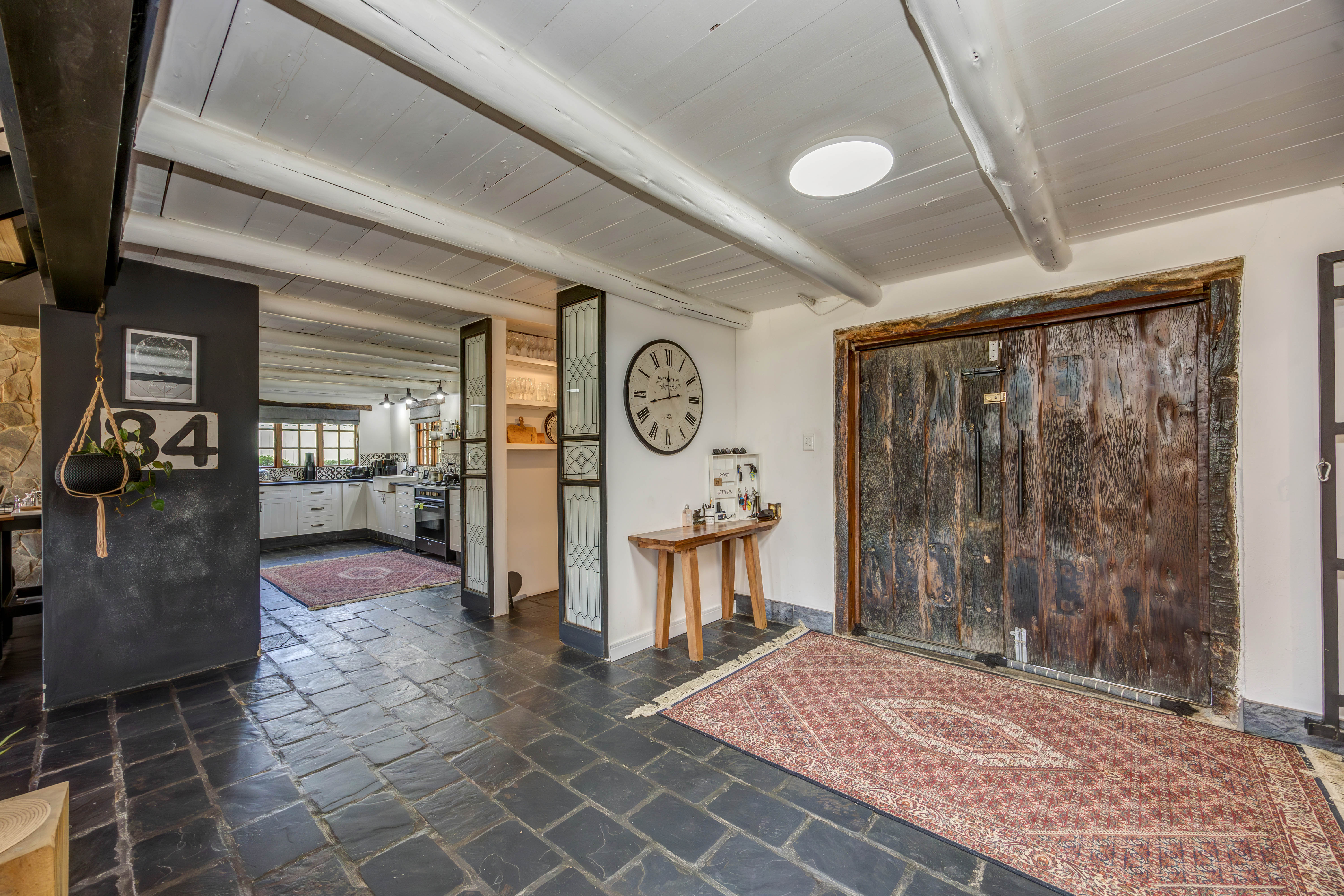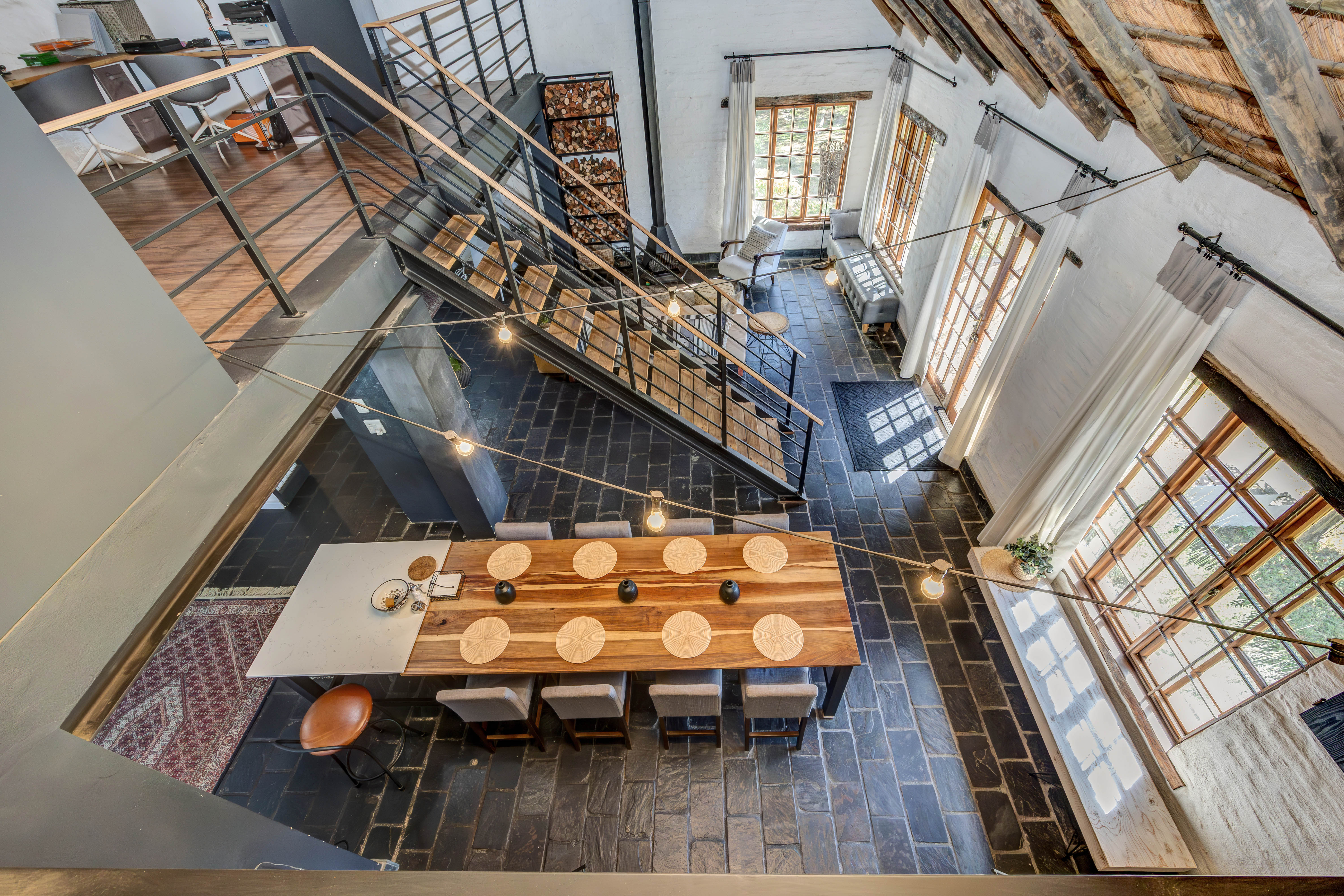 Nestled within the secure and tranquil gated community of Lammermoor, Muldersdrift, minutes away from Broadacres, this exceptional property offers a harmonious blend of rustic charm and modern convenience. This thatch dwelling exudes warmth and character, boasting four spacious bedrooms and two well-appointed bathrooms. Upstairs, two bedrooms are complemented by a cozy TV lounge and a charming reading nook, creating an inviting retreat. The ground floor showcases an open-plan lounge and dining area, complete with a custom-made dining table and a wood-burning Morso-type fireplace, ideal for intimate gatherings. The kitchen is a chef’s delight, featuring a scullery and a walk-in pantry for added functionality. Step outside to discover an entertainer’s paradise—an expansive covered entertainment area with a bar and guest loo, a sparkling pool, a captivating fire-pit, and a lush, sizeable garden. Practicality is ensured with three garages, staff accommodation, and a storeroom. The property is fortified with top-tier security, including electric fencing with angled brackets, a Paradox alarm system, Roboguard, and a main gate with a daytime guard and night-time patrols. Sustainability is seamlessly integrated with three-phase electricity, a 10KVA back-up inverter powered by solar panels, two boreholes, and a well-irrigated veggie garden. Fibre connectivity adds to the modern conveniences, making this property a rare gem in a serene setting, where luxury meets security and self-sufficiency. Close to Lanseria International Airport and minutes away from Broadacres and Fourways.