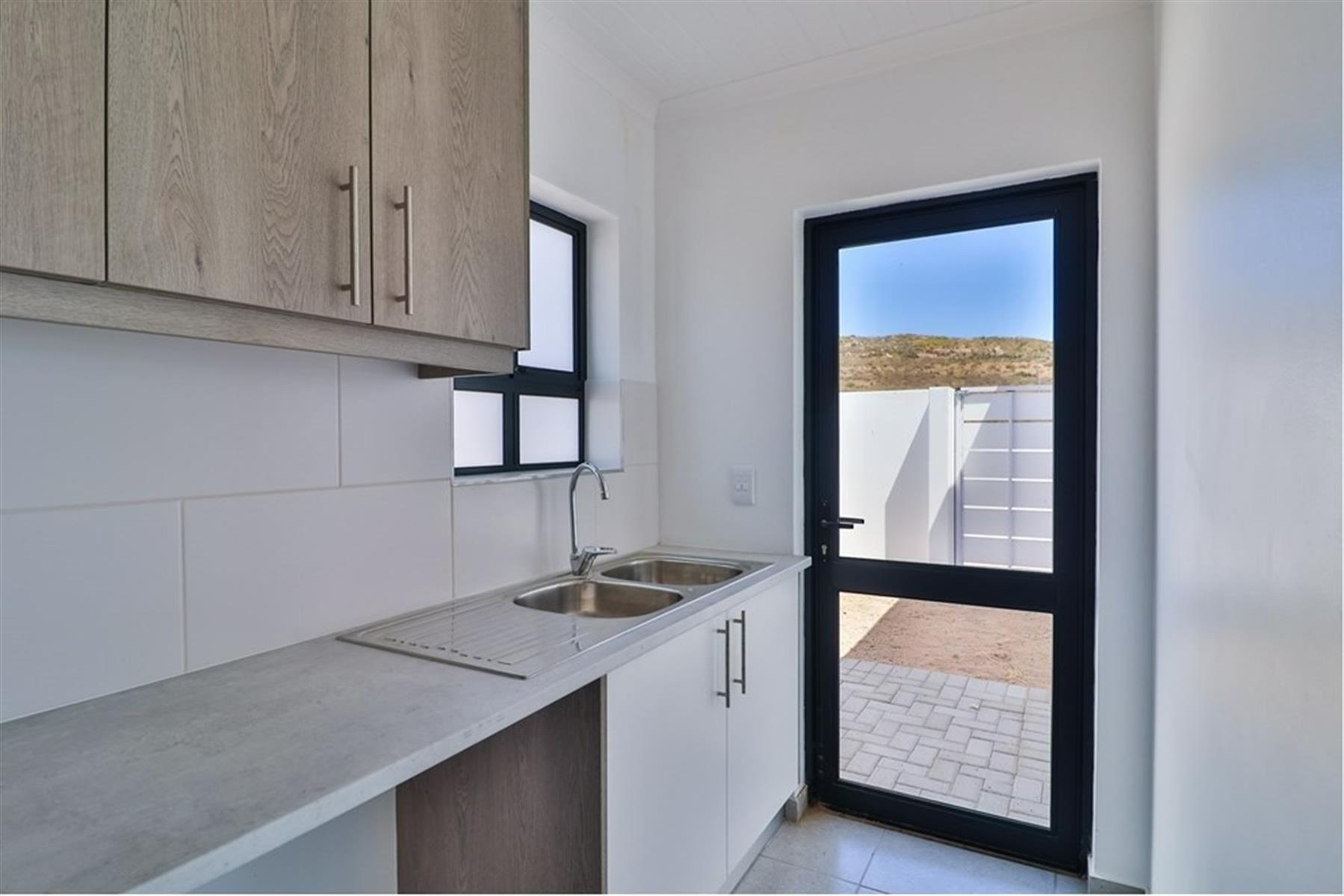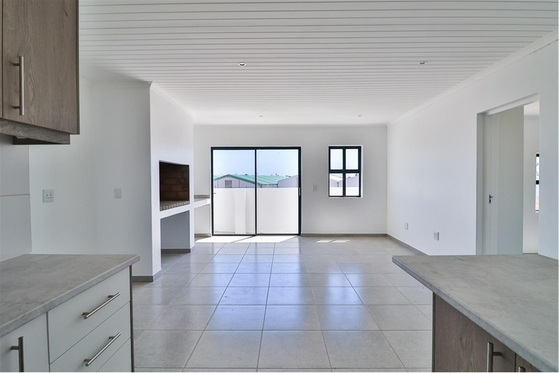 The open-plan kitchen, lounge, and braai area create a seamless flow, enhanced by sliding doors that lead out to a patio — perfect for sun-soaked mornings and unforgettable sunsets. The main bedroom boasts a stylish en-suite, while the second full bathroom is ideal for family or guests. A single garage adds convenience and security.