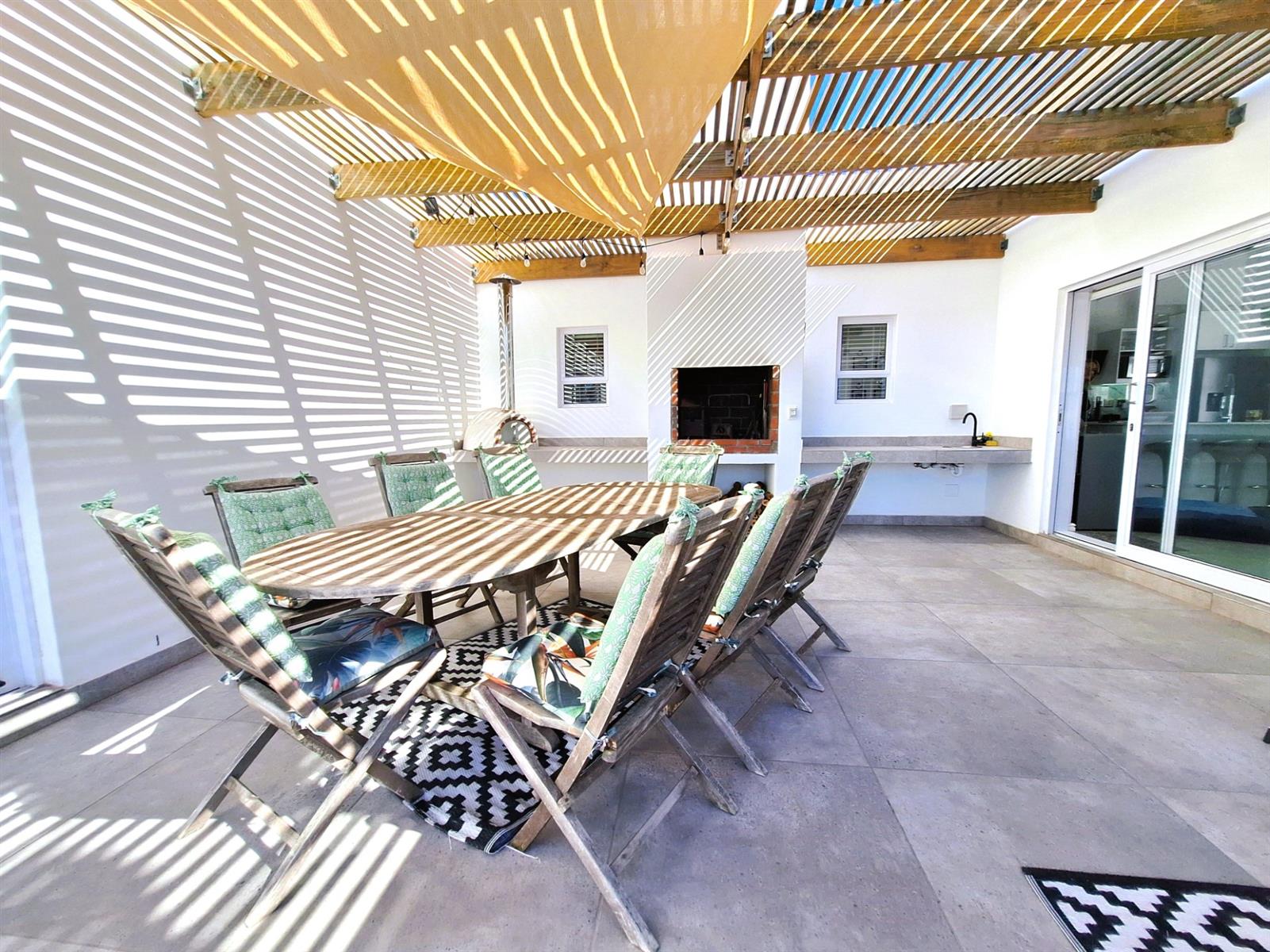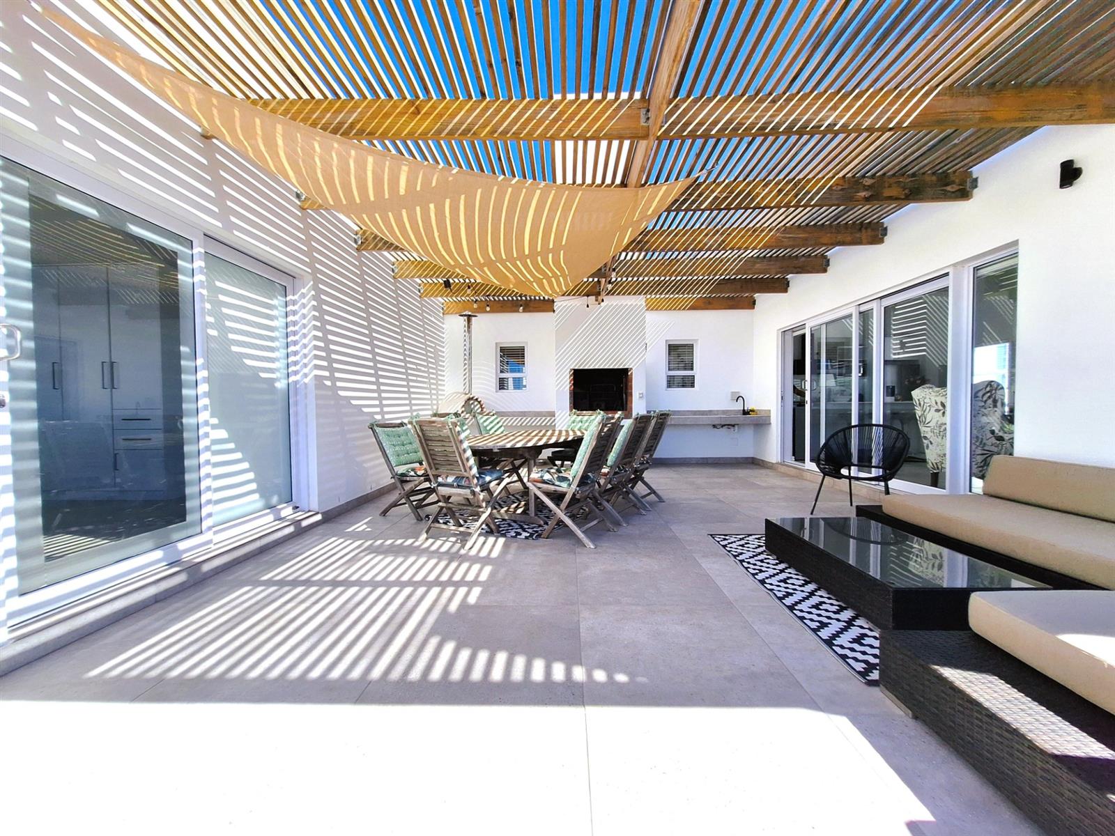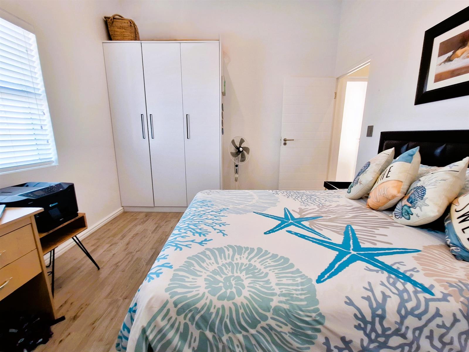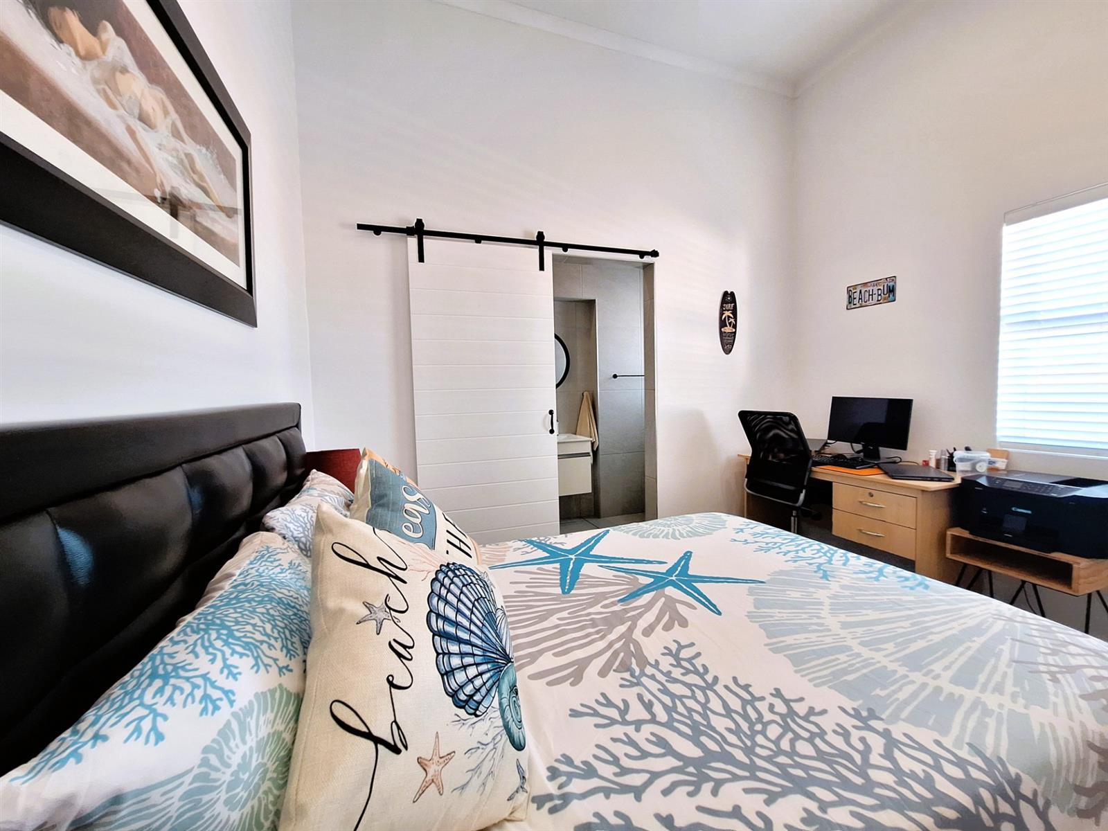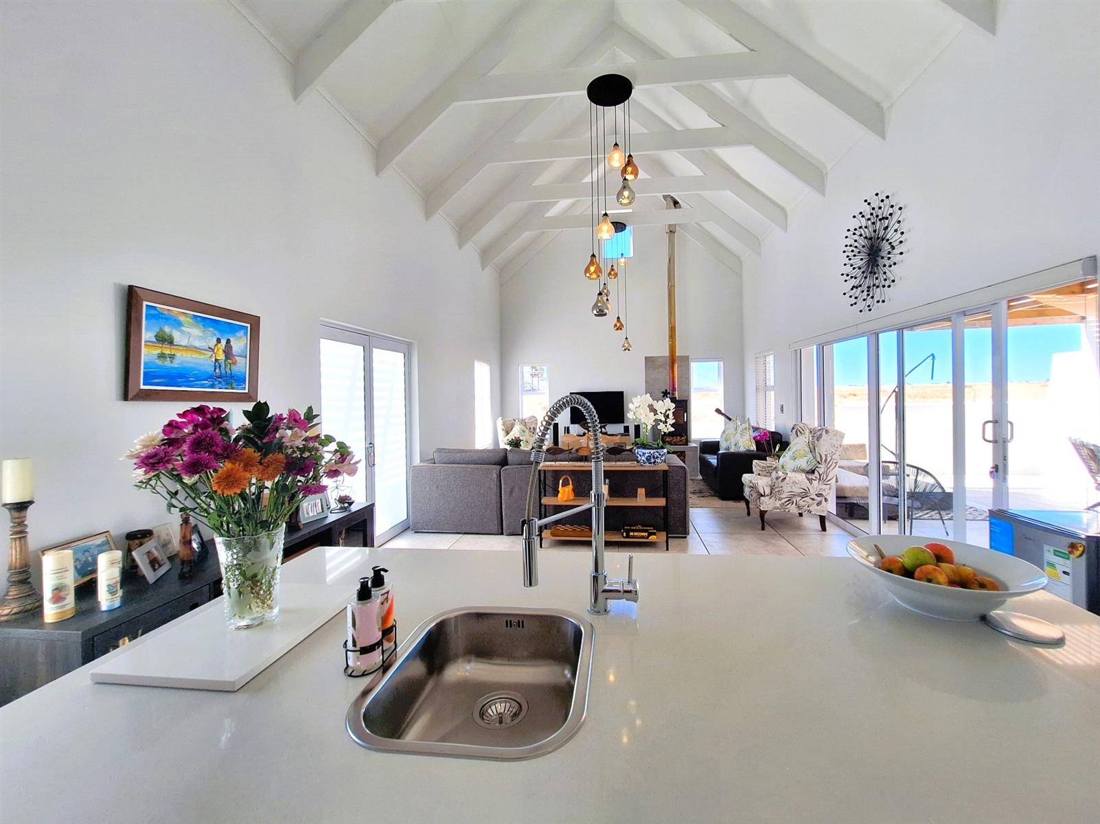 Aluminium sliding doors open from the living area to a generous outdoor braai and entertainment area, complete with a stylish wooden shade structure that allows you to bask in the sun while enjoying the fresh coastal air. This area is designed for relaxing evenings and lively gatherings. Shielded from the gusty Southeaster, this outside patio will greatly enhance your West Coast lifestyle.