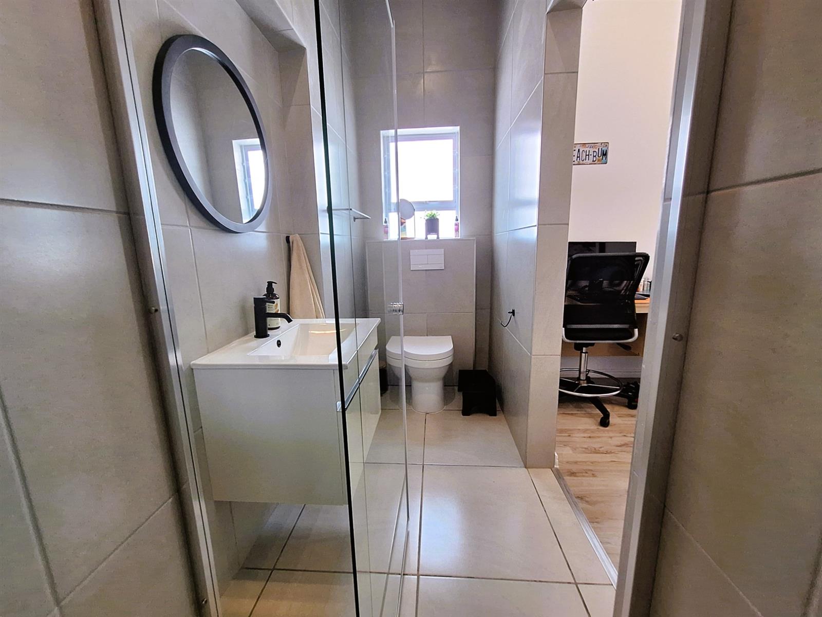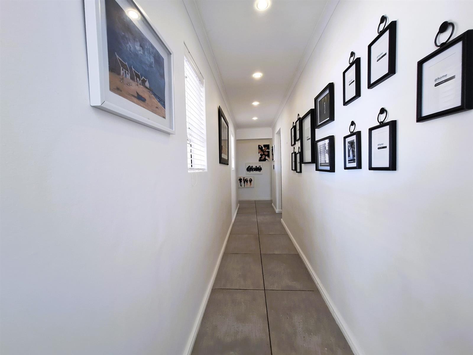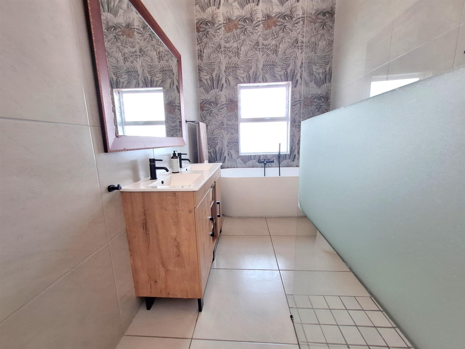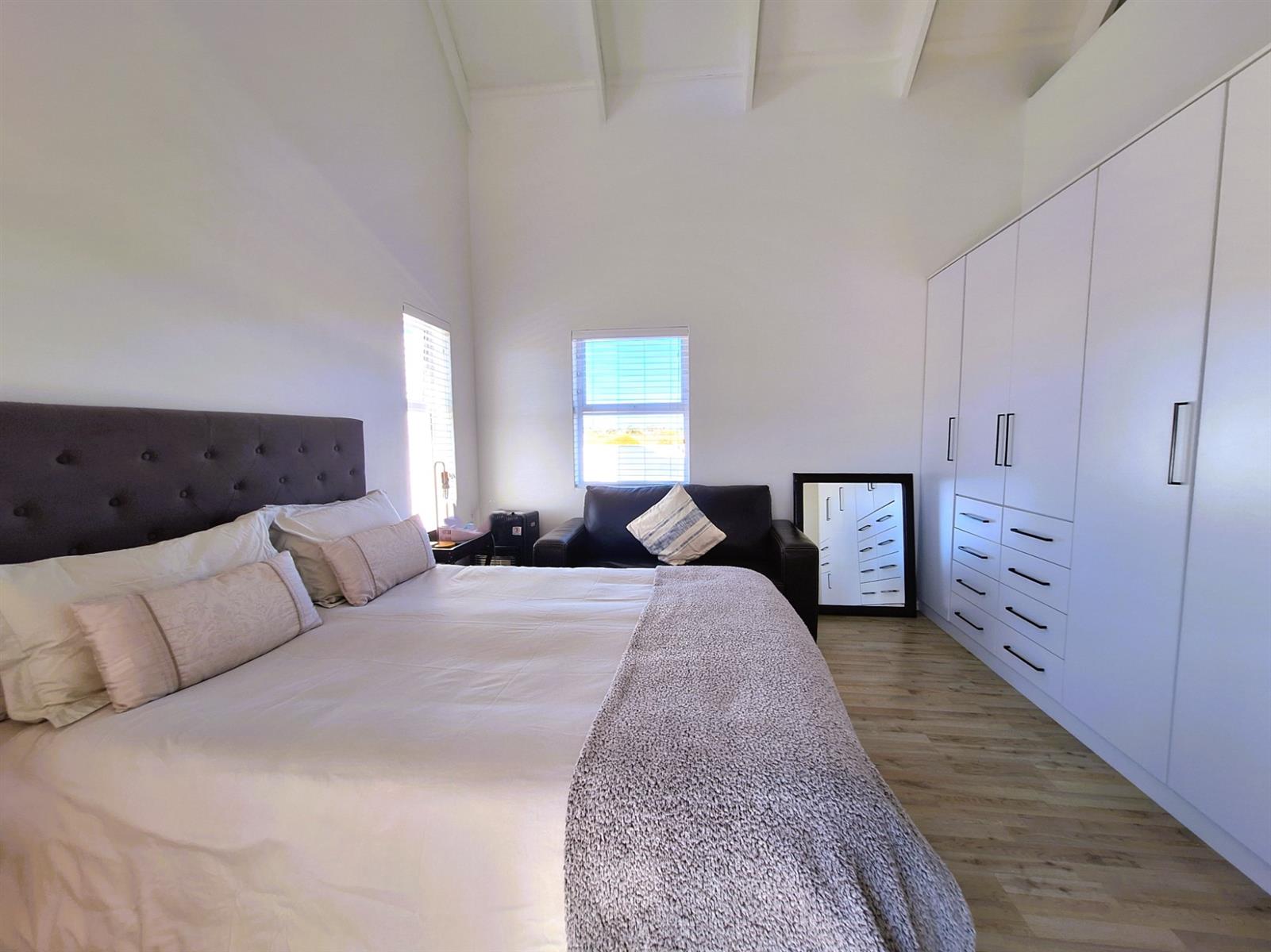 Aluminium sliding doors open from the living area to a generous outdoor braai and entertainment area, complete with a stylish wooden shade structure that allows you to bask in the sun while enjoying the fresh coastal air. This area is designed for relaxing evenings and lively gatherings. Shielded from the gusty Southeaster, this outside patio will greatly enhance your West Coast lifestyle.