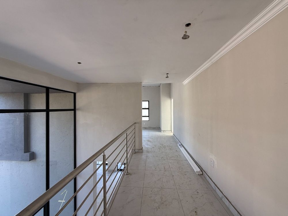 From the striking double-volume entrance to the seamless indoor-outdoor flow, every detail has been designed for refined living. The open-plan layout effortlessly connects the modern kitchen, dining area, and expansive lounge, leading out to a covered patio with a built-in braai — ideal for entertaining or relaxed evenings overlooking the garden and pool.