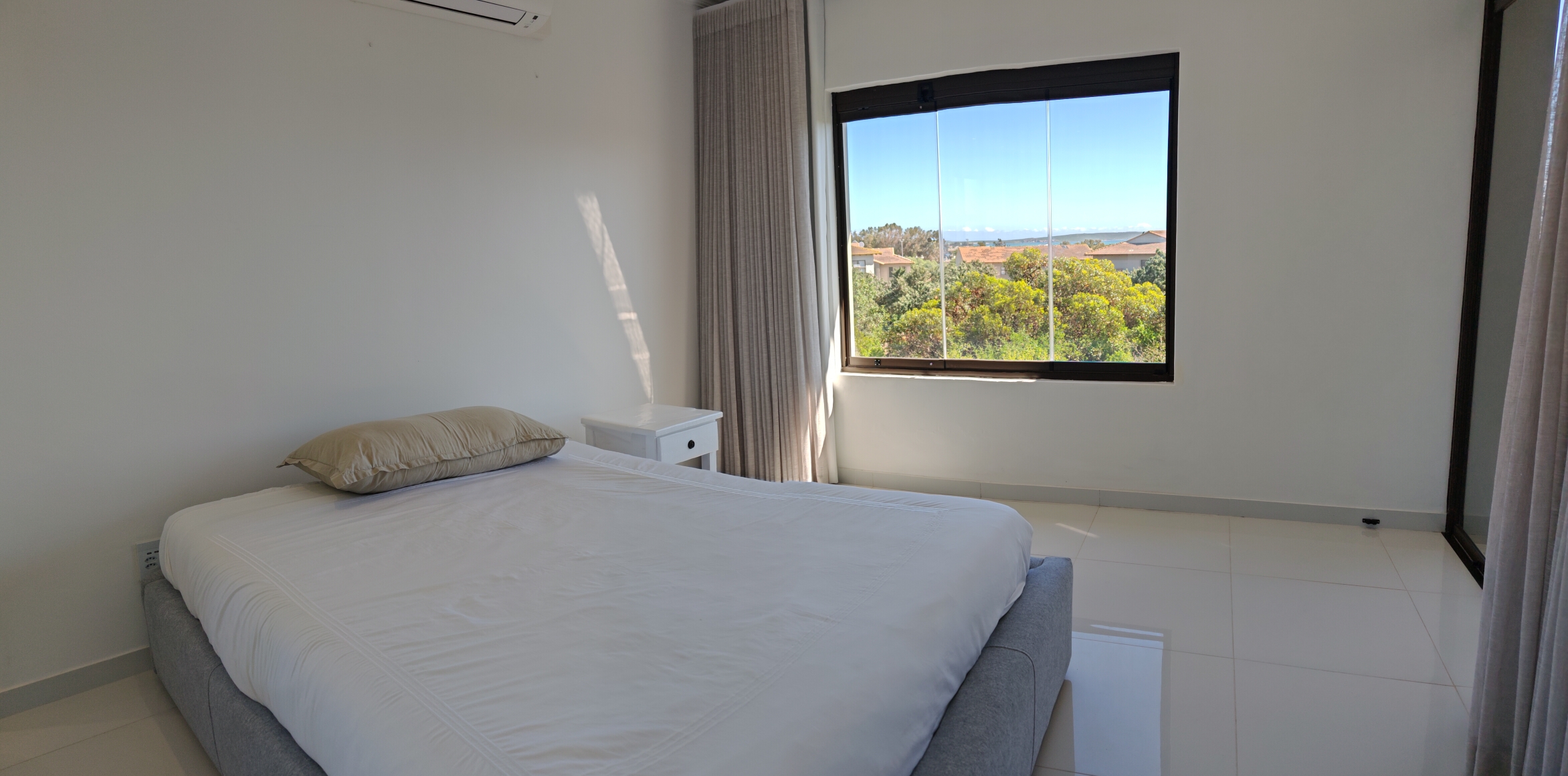 The spacious main bedroom boasts direct access to the under-roof balcony, where you can soak in the view of the lagoon and enjoy vibrant Langebaan sunsets around the built-in braai. The guest bedroom or study shares a family bathroom with a walk-in rain shower.