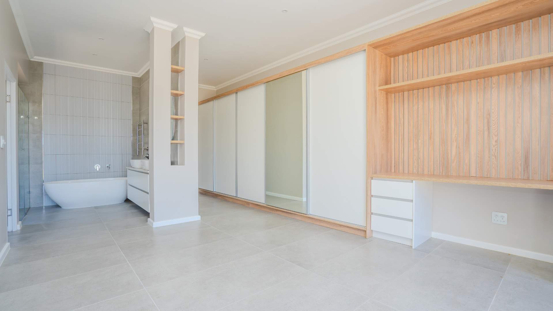 The master suite is generously sized and includes ample cupboard space. It also offers a well-appointed en-suite bathroom, designed with both style and functionality in mind. The second bedroom comes with its own en-suite bathroom, providing privacy and convenience for guests or family members.