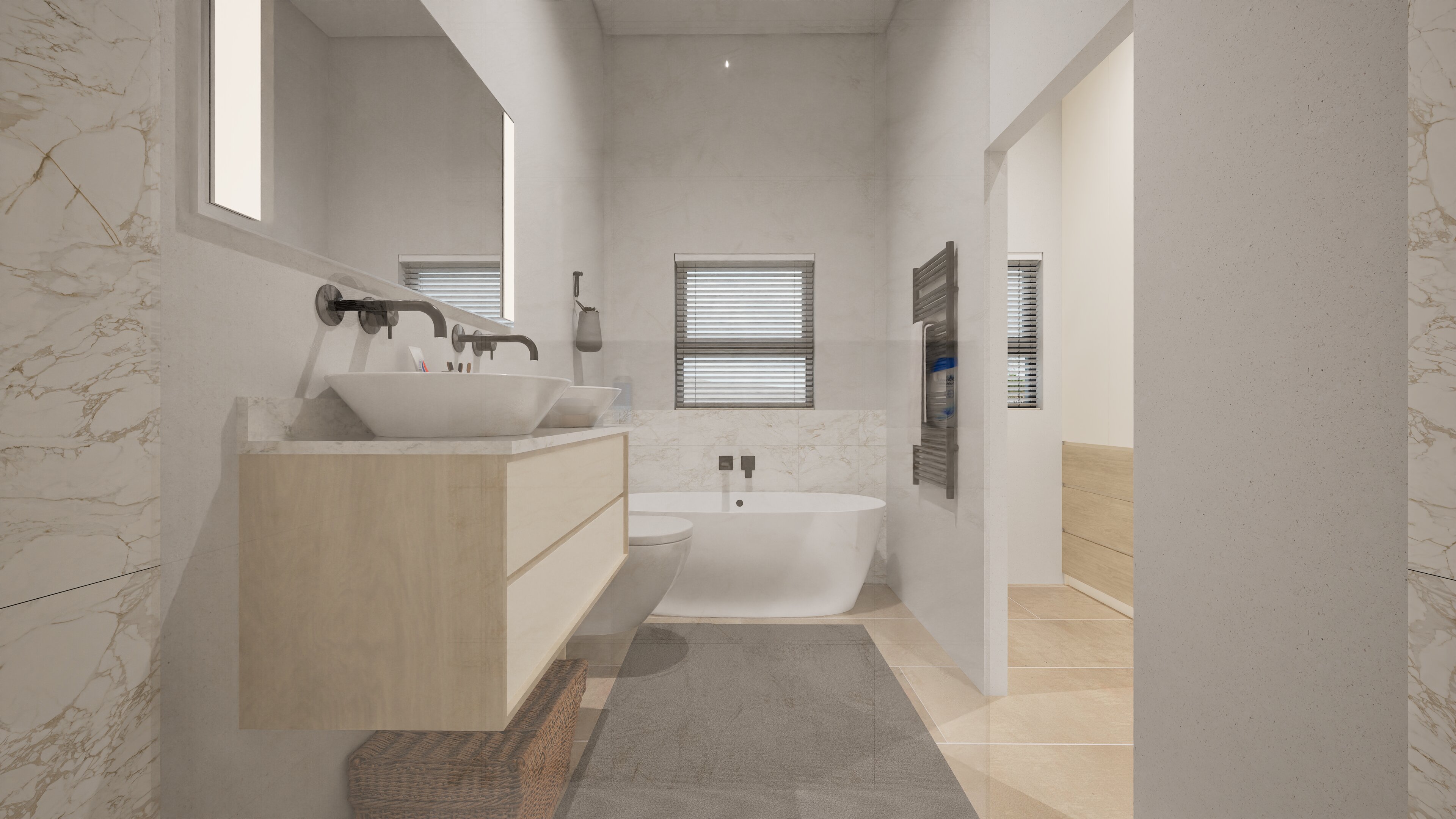 There are four bedrooms in total, and the main bedroom is a real treat. It’s spacious, has a luxurious en suite bathroom with heated towel rails, and plenty of walk-in closet space. The other three bedrooms are generously sized too, with a shared family bathroom and a guest loo for convenience.