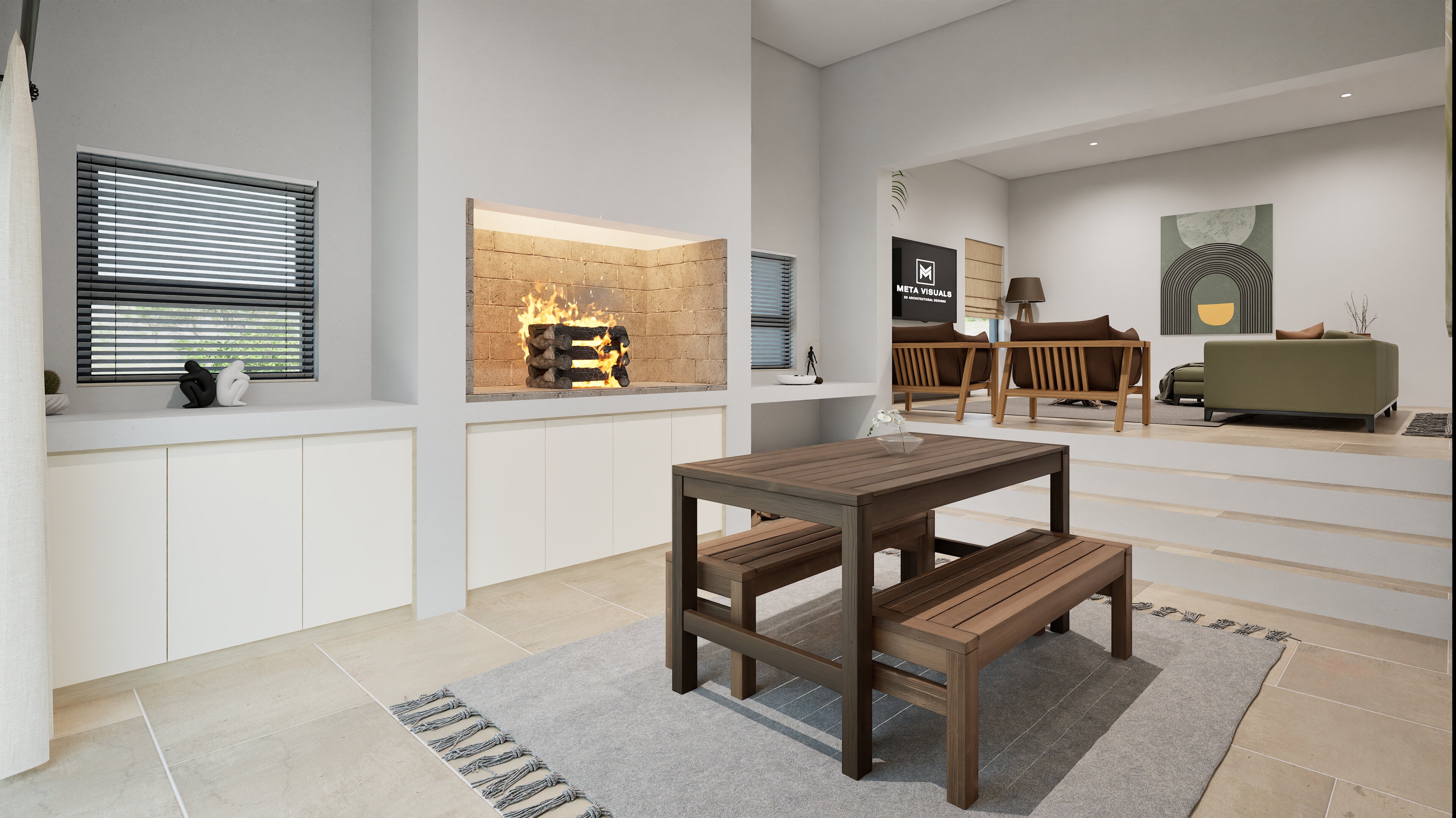 Now, let’s talk about the inside. The open-plan living areas are big, bright, and inviting. They flow straight into a modern kitchen (with a separate scullery, because who doesn’t need a little extra space?). There’s even an enclosed Braai room—it’s the perfect spot to entertain guests or enjoy a quiet evening with loved ones.