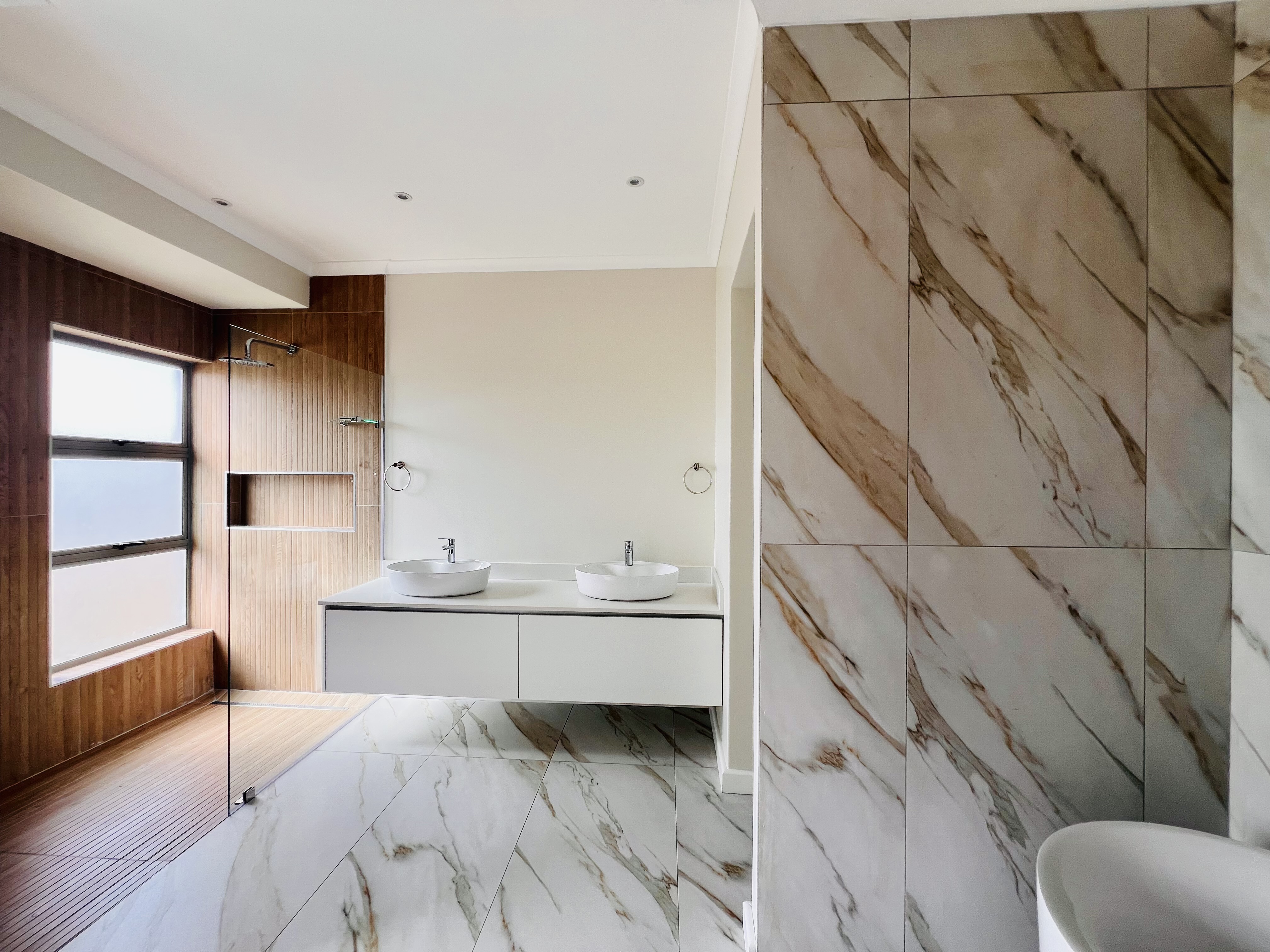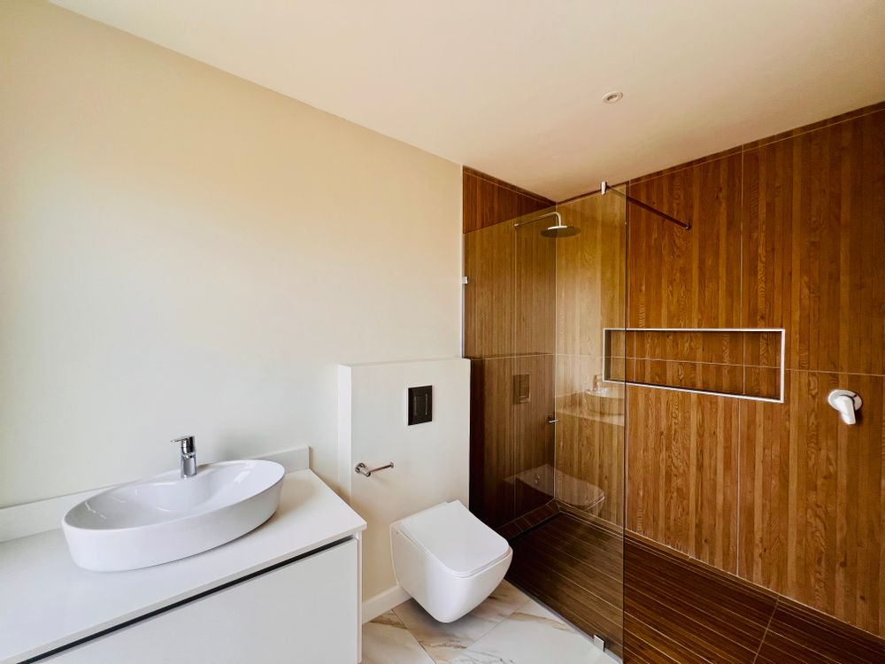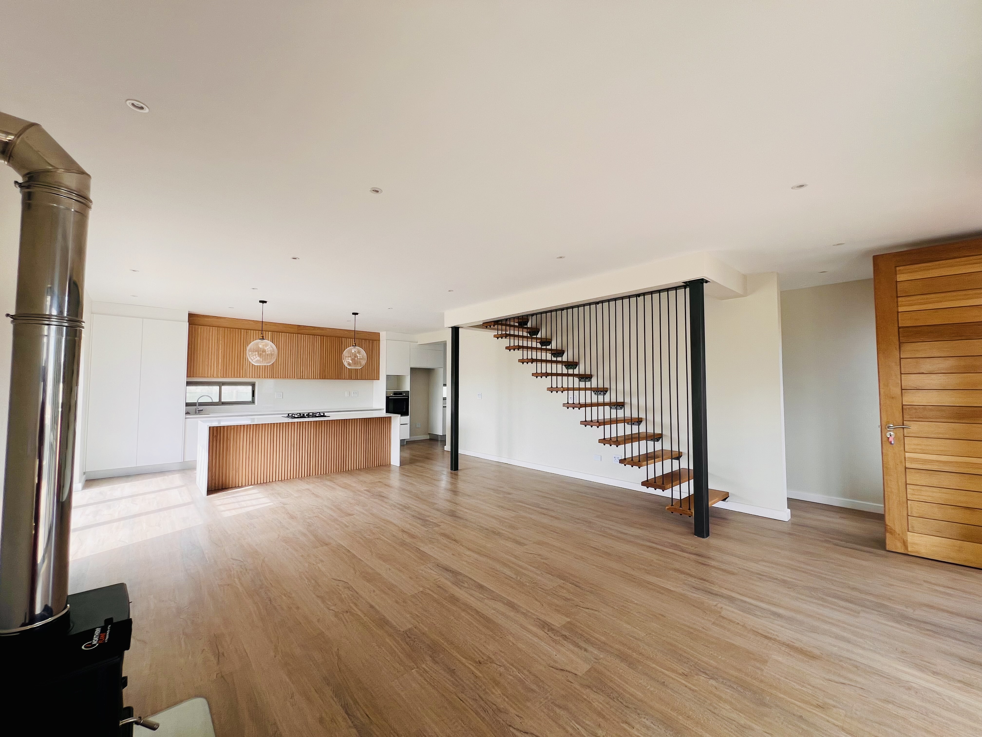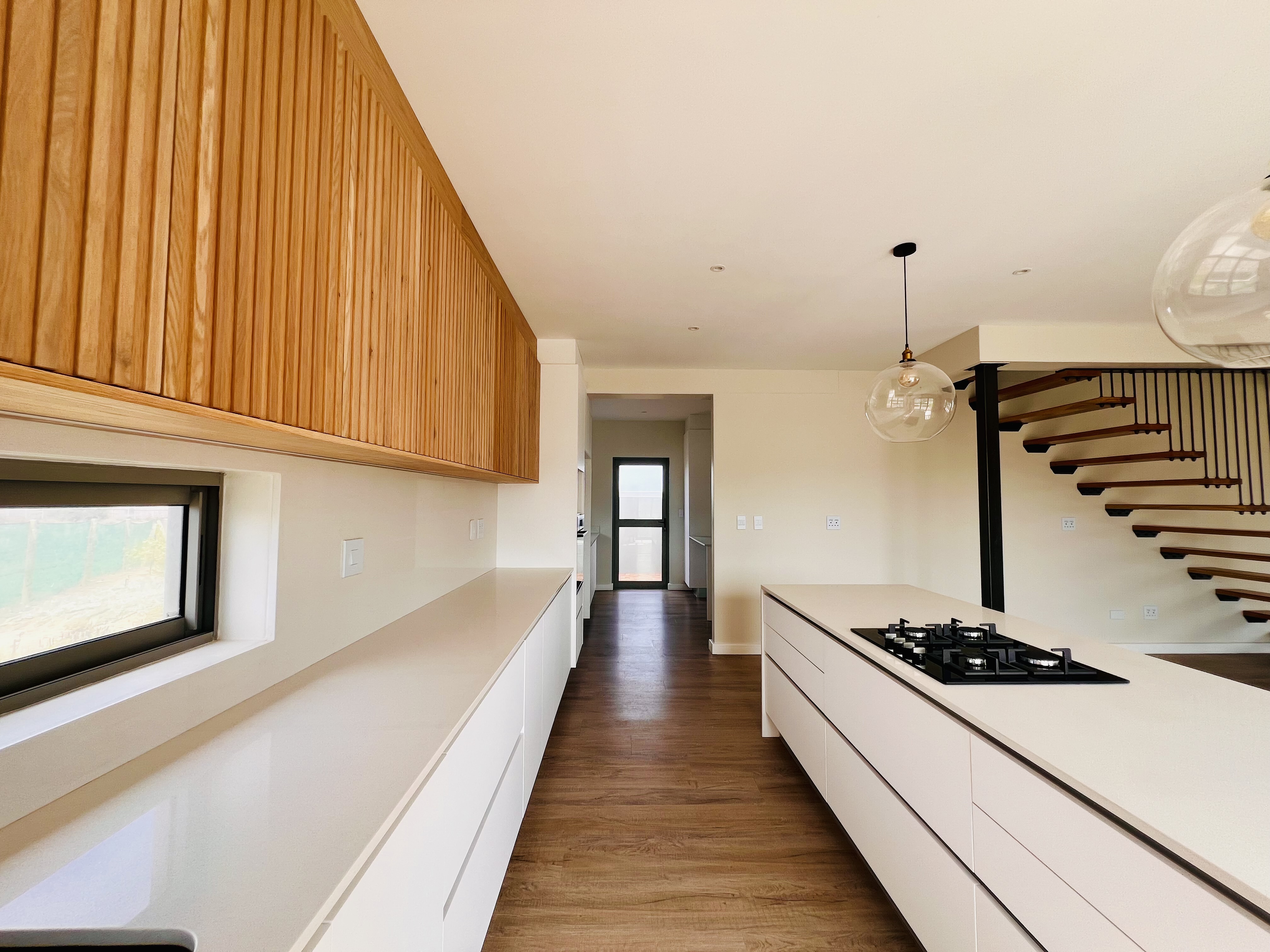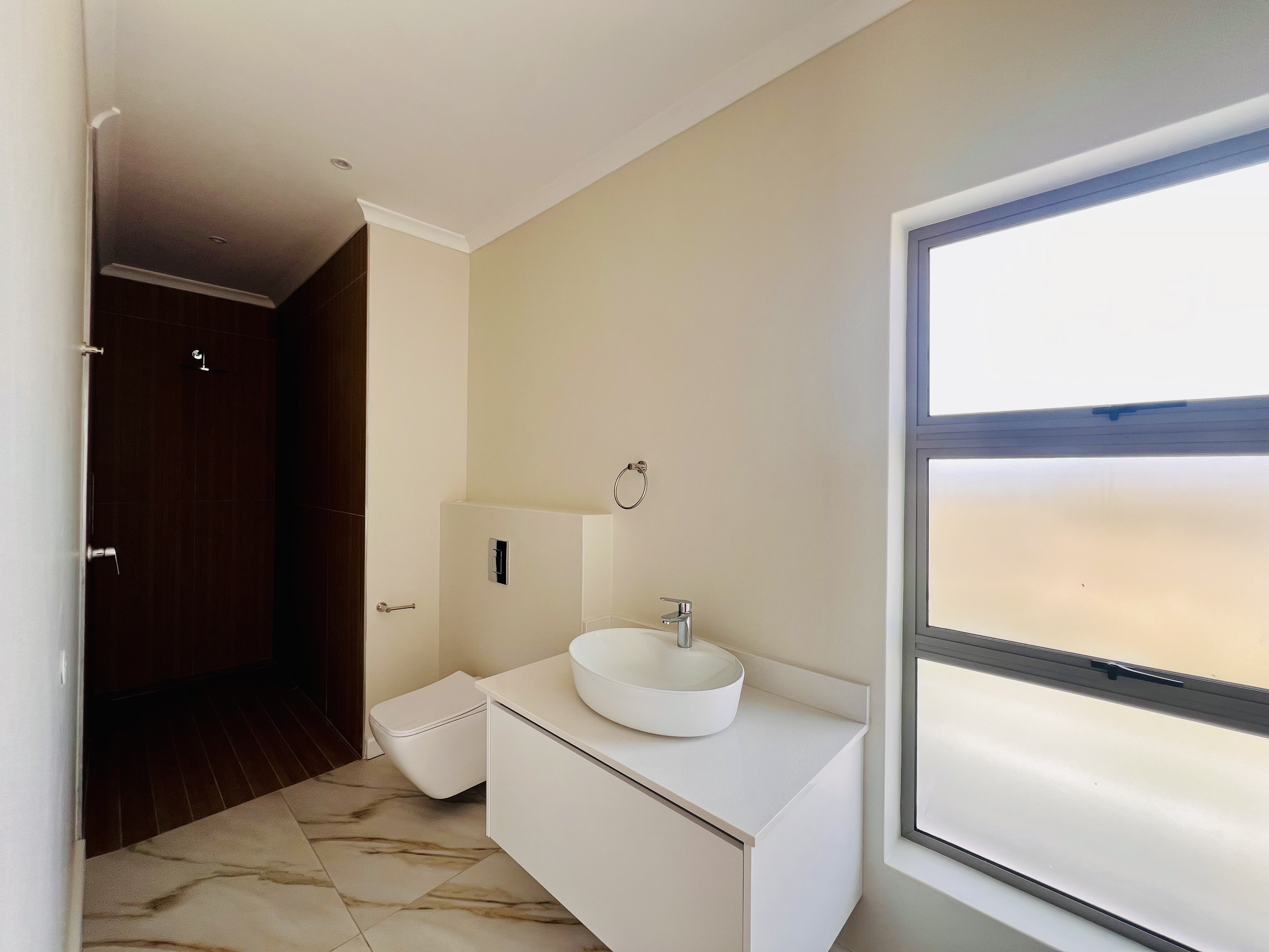 Designed for effortless modern living, this 3-bedroom home welcomes you with a spacious open-plan layout that flows seamlessly from the kitchen to the lounge and dining area. Whether you're hosting lively gatherings or enjoying a quiet evening, this space is made for connection and comfort. The kitchen is both stylish and functional, featuring a sleek Caesarstone center island, a gas hob, an eye-level oven, and custom-built soft-close cupboards and drawers. A separate scullery and laundry room keep things neat, with direct access to a private drying courtyard.